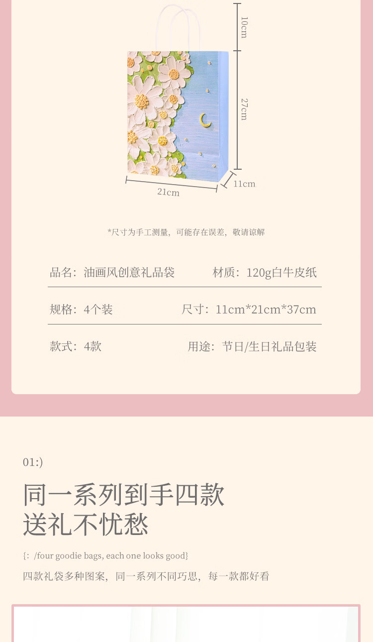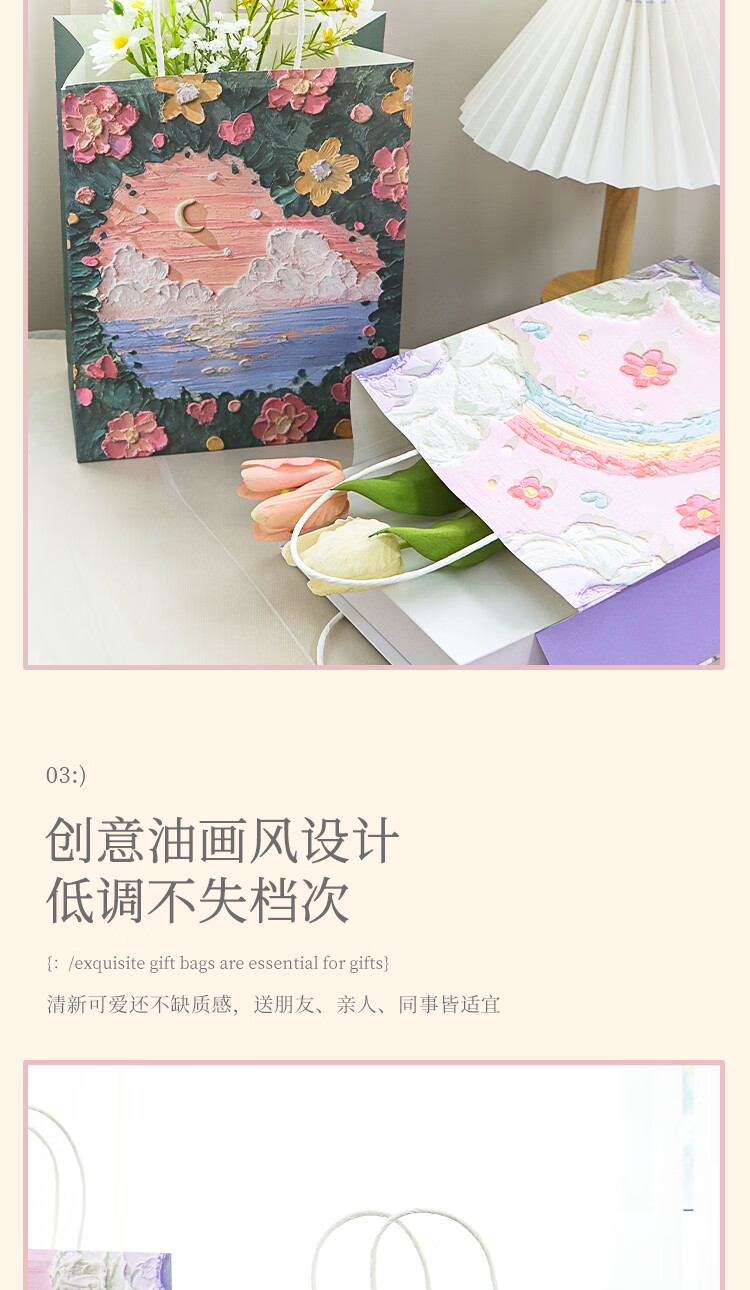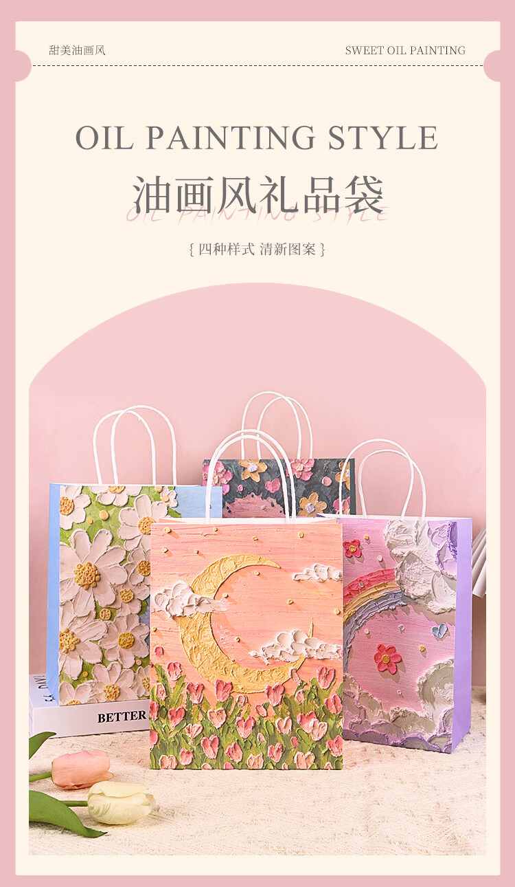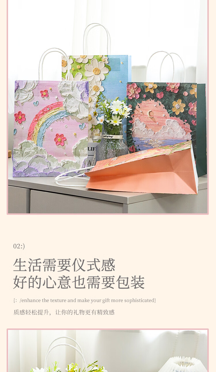 TaTanice礼品袋 生日礼物手提袋春节新年节日礼品收纳袋高级感购物包装袋可爱纸袋油画风景