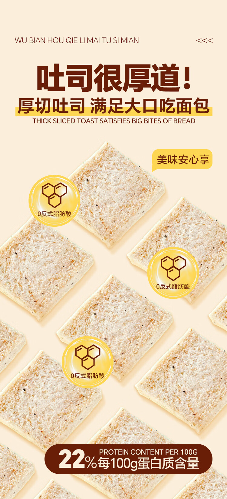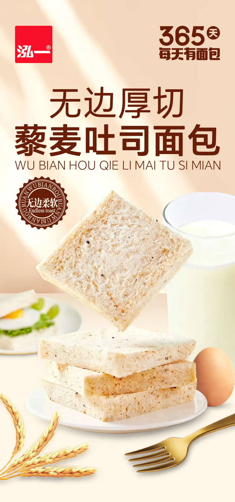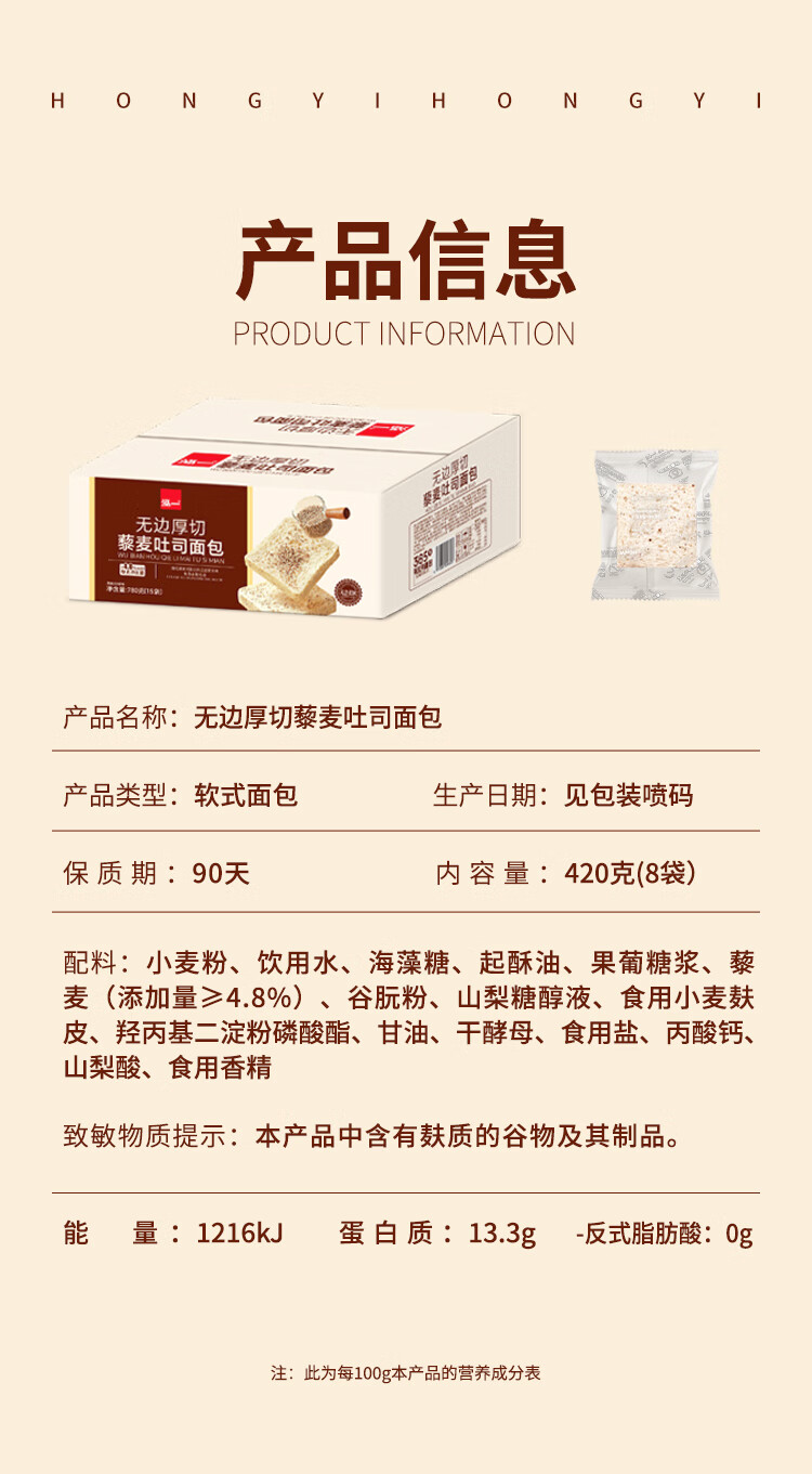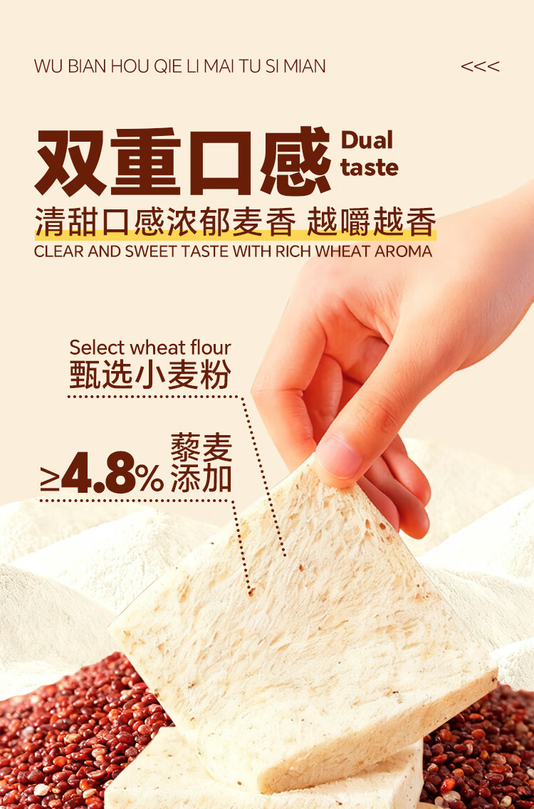 泓一无边厚切藜麦吐司420g 早餐休闲零食0蔗糖减肥减脂零食办公室糕点 无边厚切藜麦吐司420g丨厚实有嚼劲