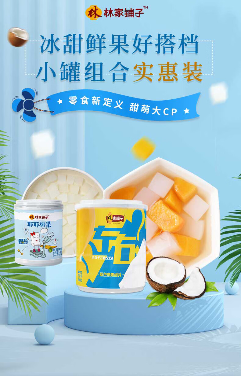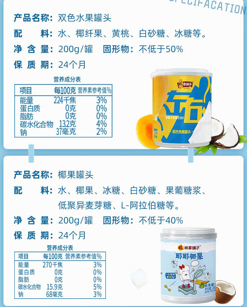 林家铺子左右双色耶耶椰果黄桃椰果组合水果罐头200g零食罐头 【到手8罐】双色4罐+椰果4罐