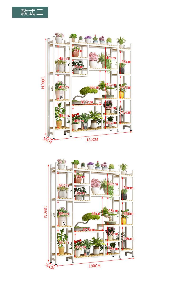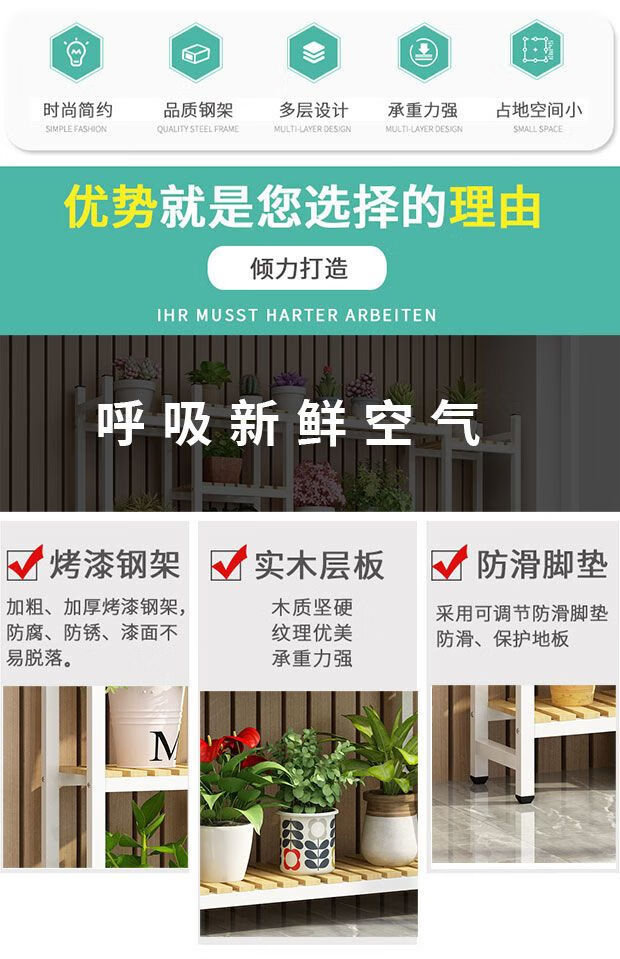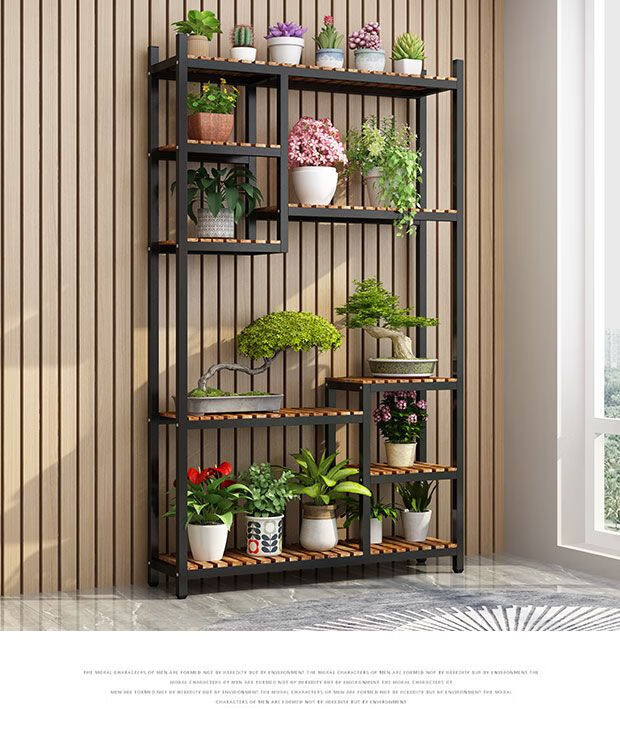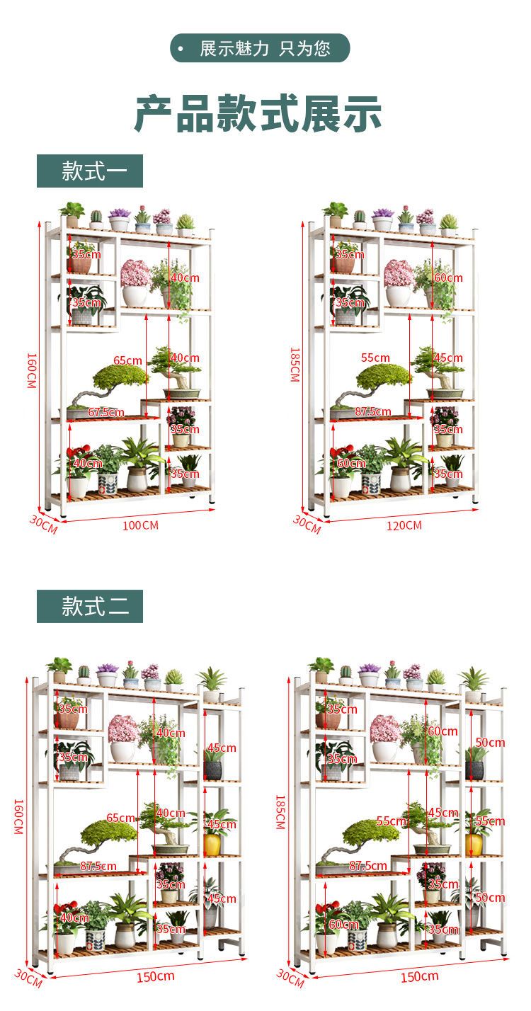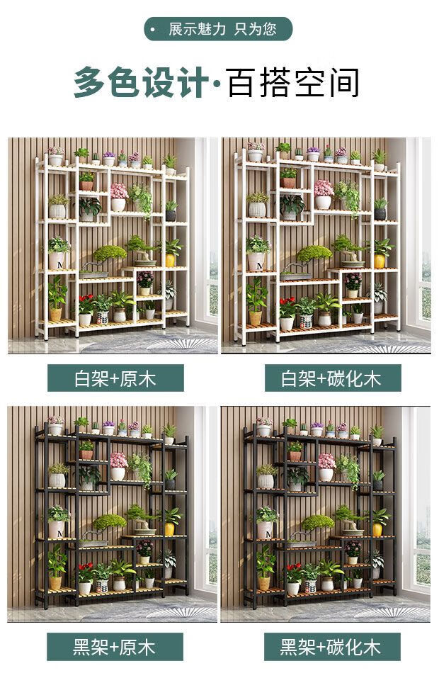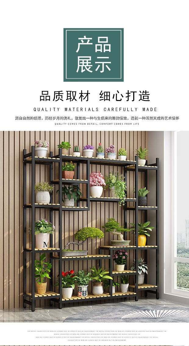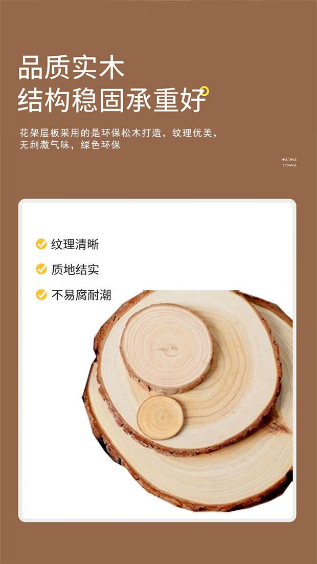 弘星隆花架实木铁艺室外阳台架多层花店展示架落地式多肉室内家用置物架 黑架+原木 长100高160