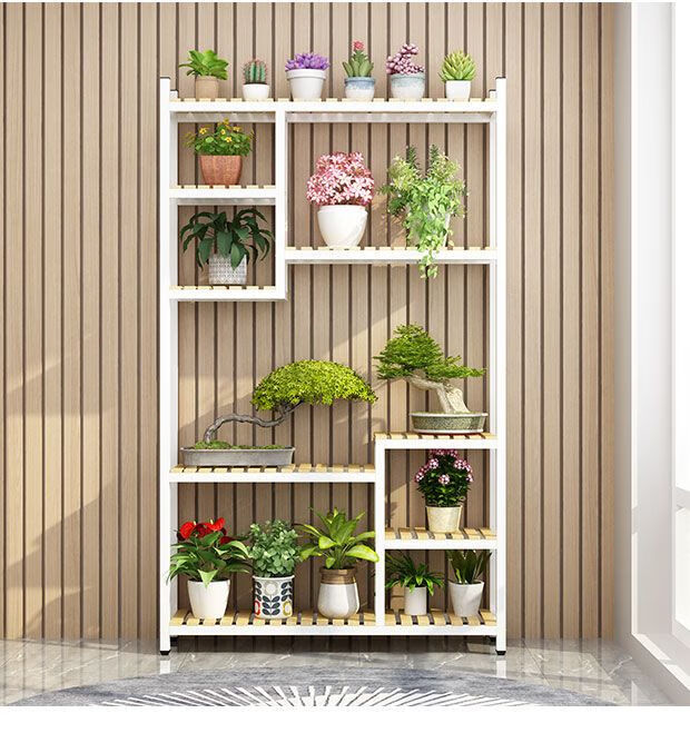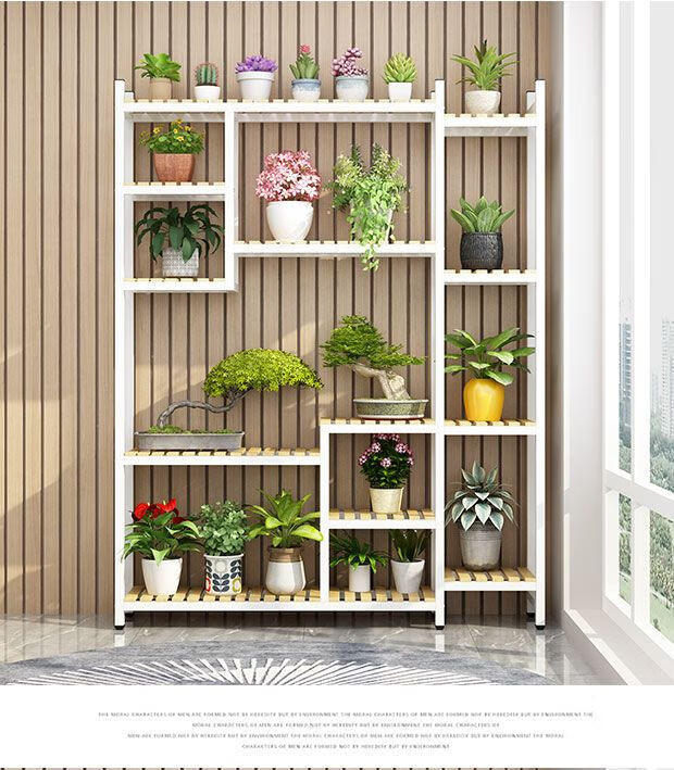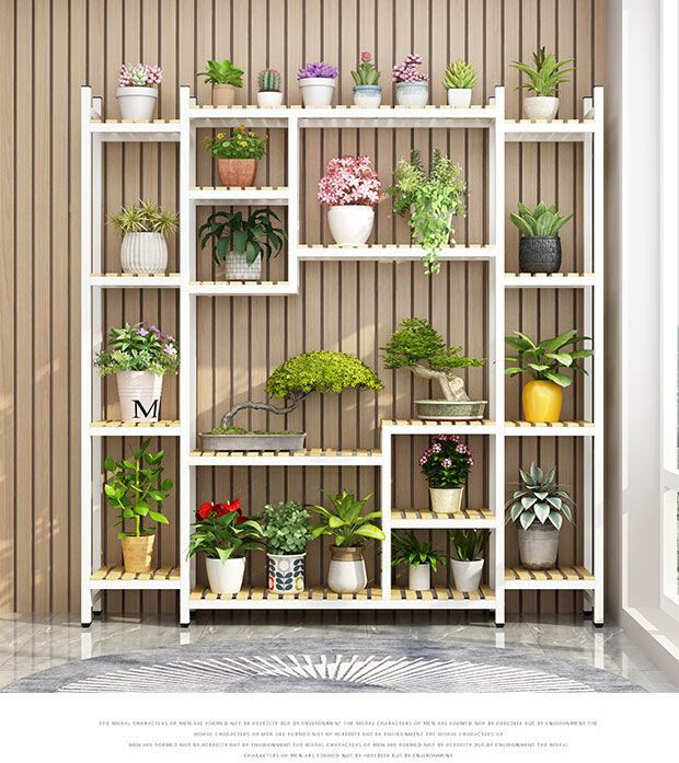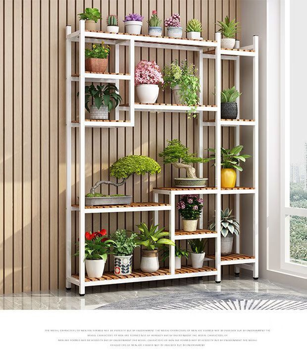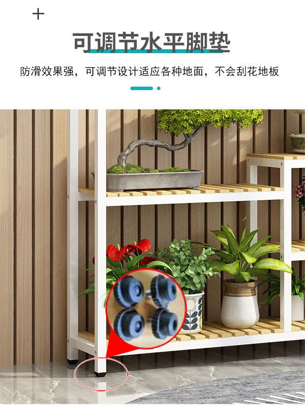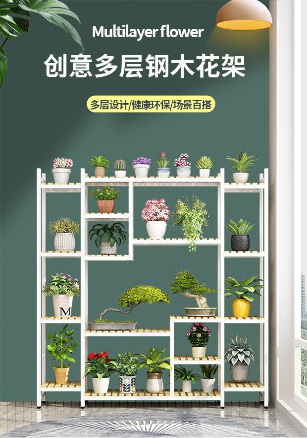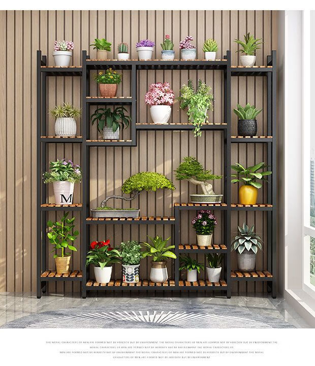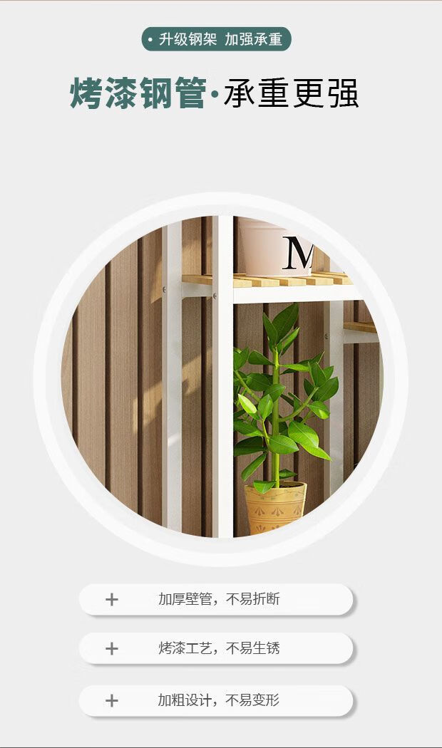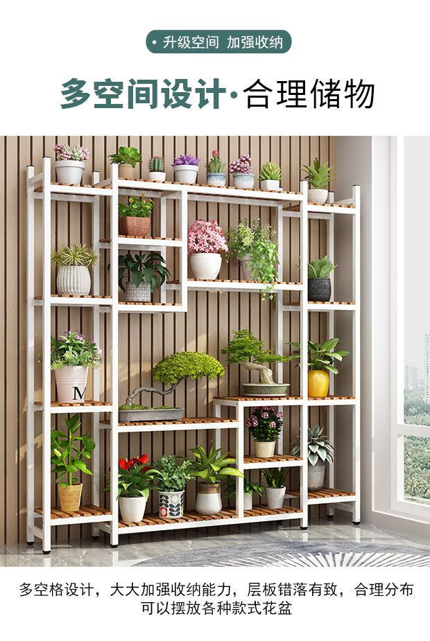 弘星隆花架实木铁艺室外阳台架多层花店展示架落地式多肉室内家用置物架 黑架+原木 长100高160