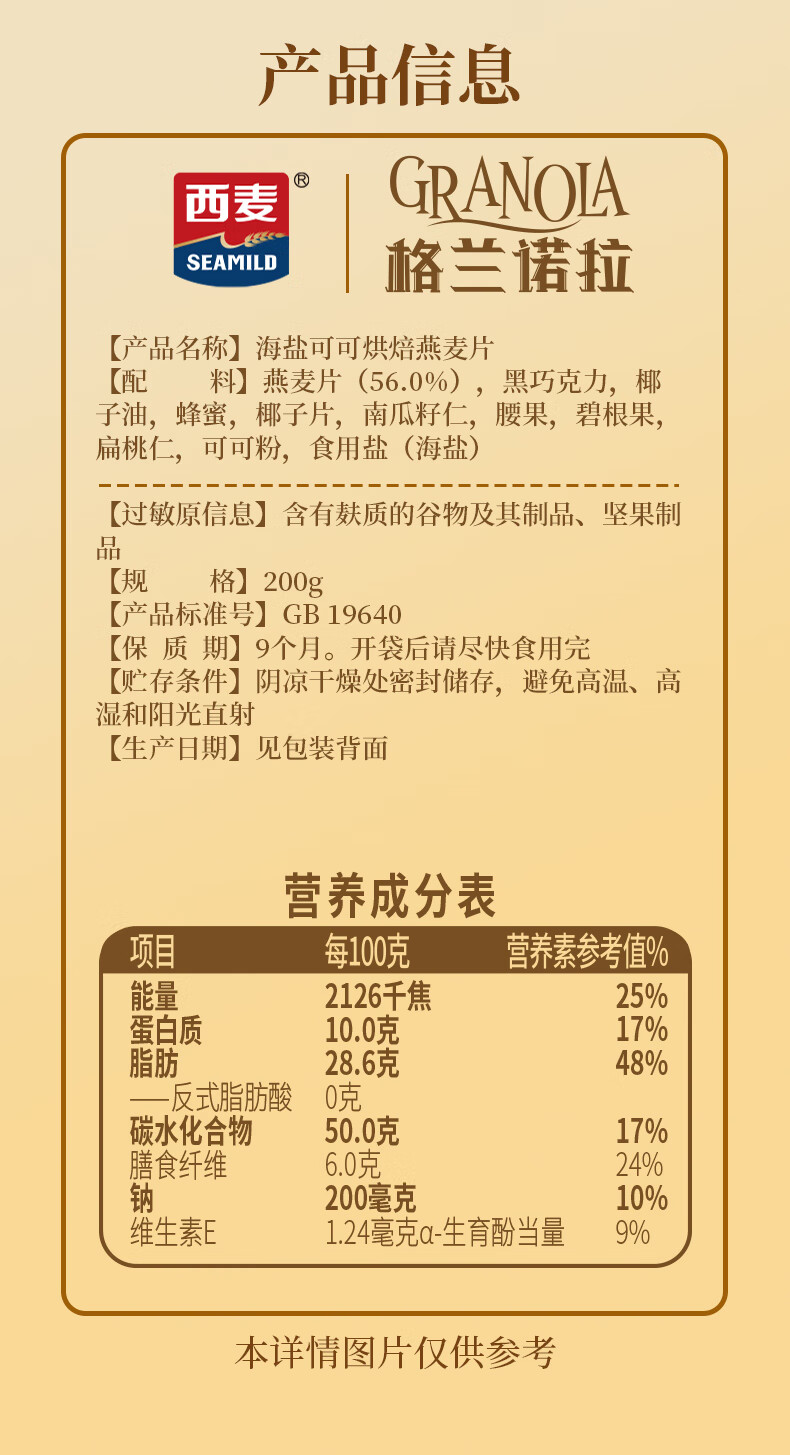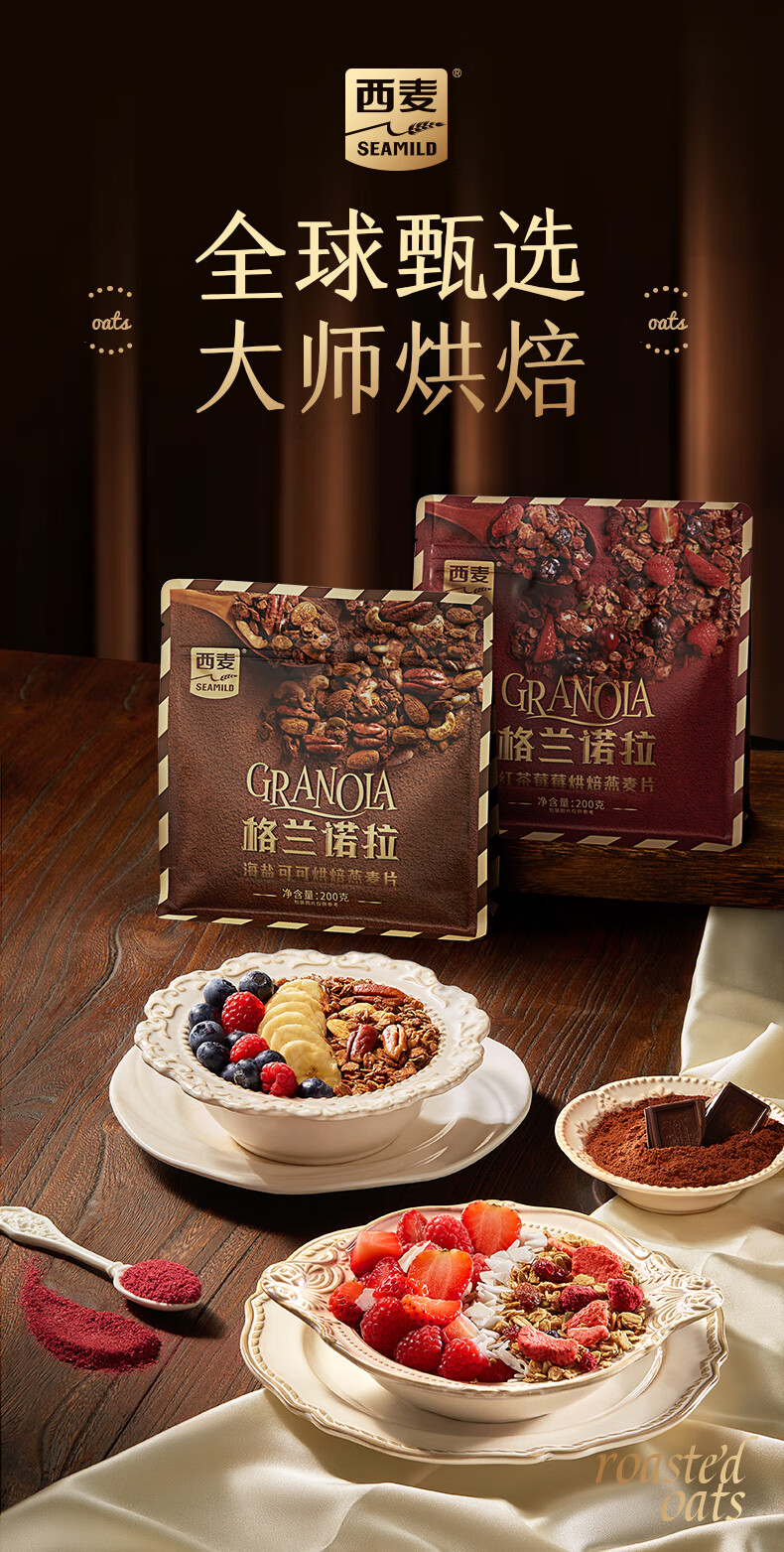 西麦海盐可可烘焙燕麦片200g 健康休闲零食酸奶碗早餐下午茶