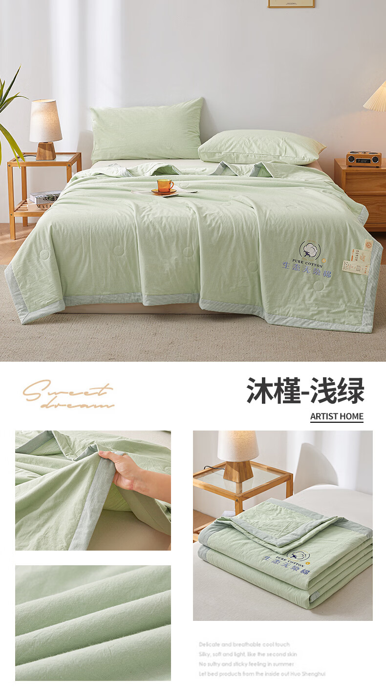 水星家纺被子夏凉被 空调被可机洗凉感天丝棉夏被 A类夏被 植愈舒爽【60S莱赛尔纤维/A类抑菌】绿 200cm*230cm