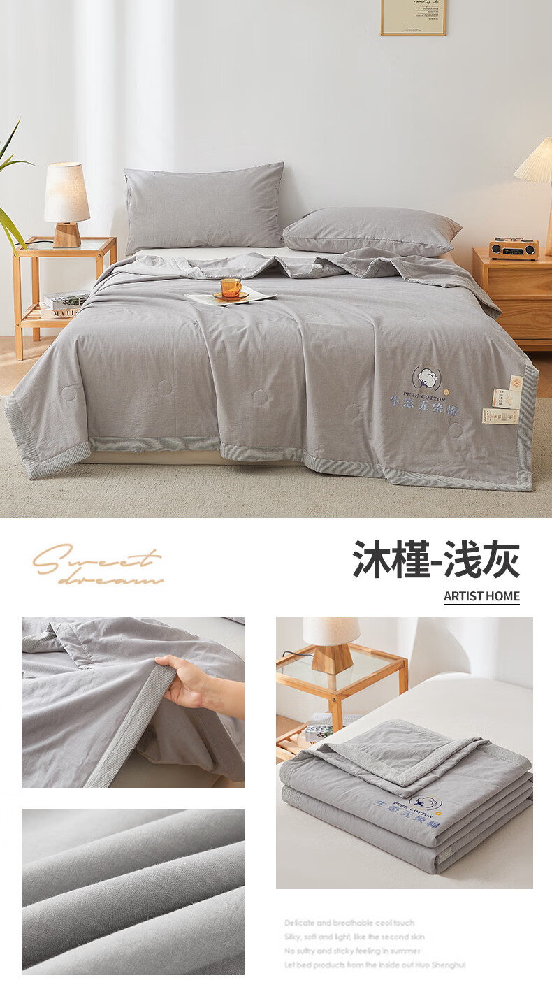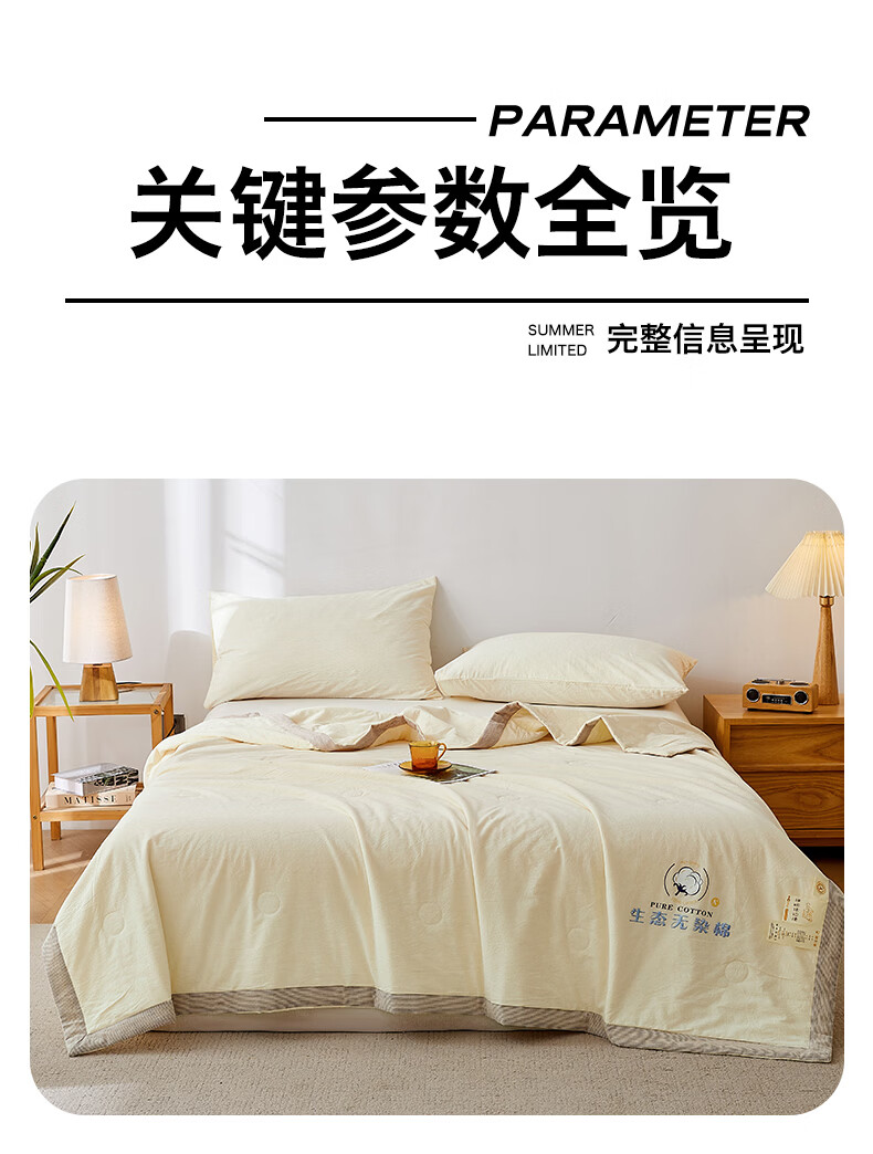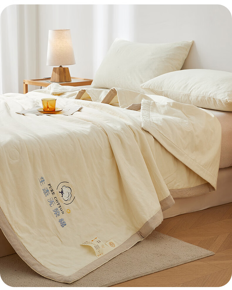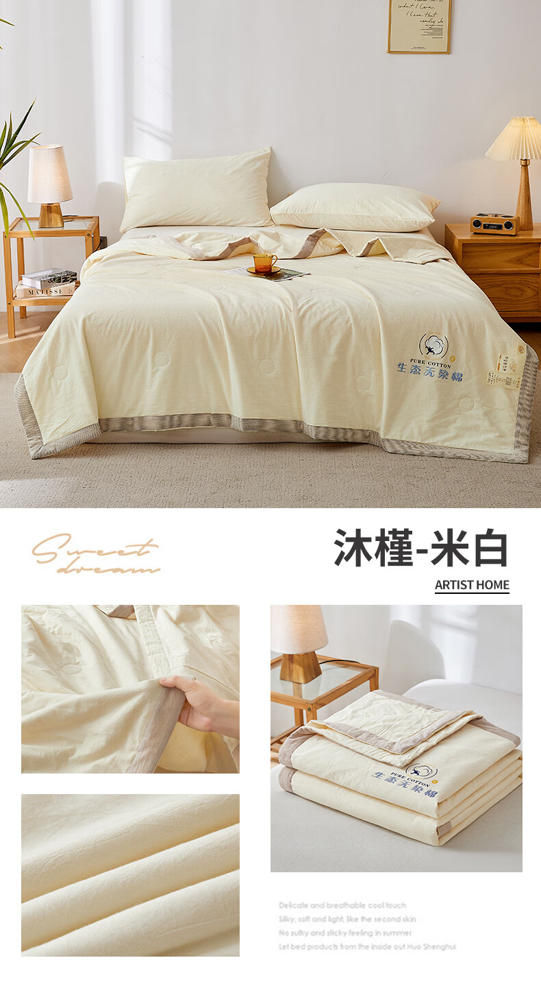 无印良品A类100%新疆棉空调被夏凉被春秋被子纯色棉花被被子180cmx220cm 莫奈-米白【A类100%新疆棉 健康睡眠】 100x150cm单夏被 通用