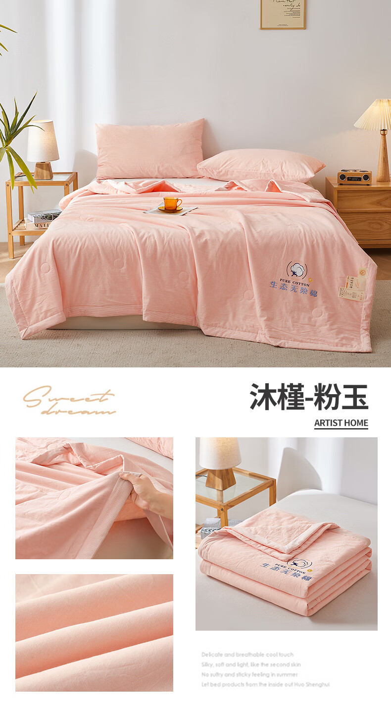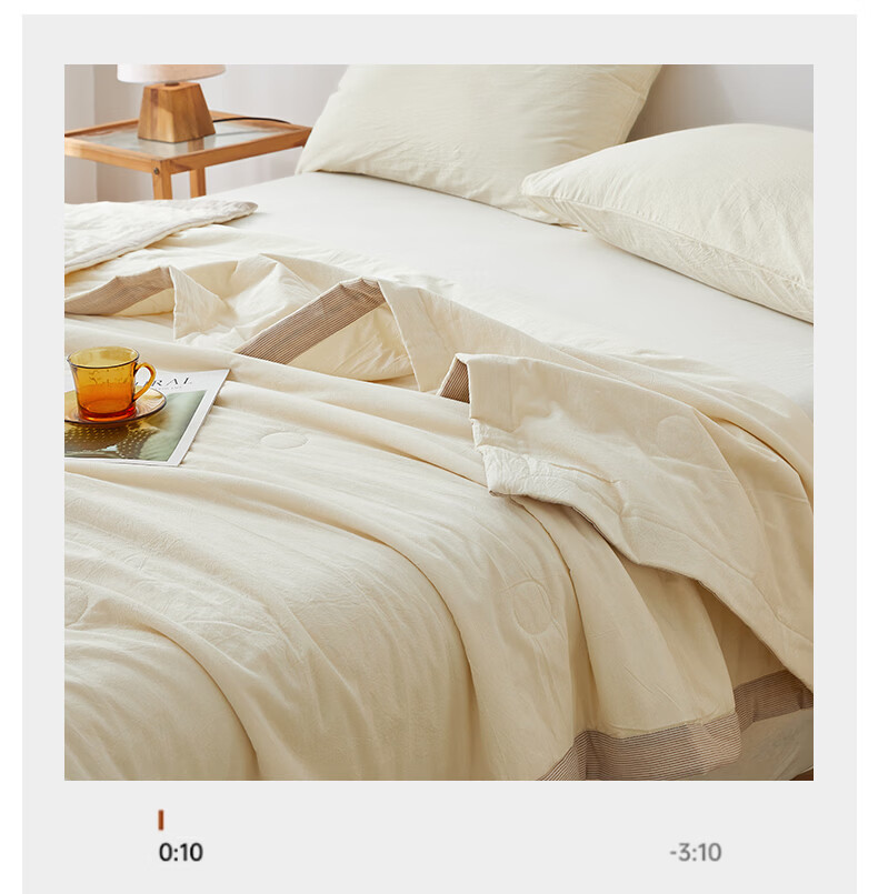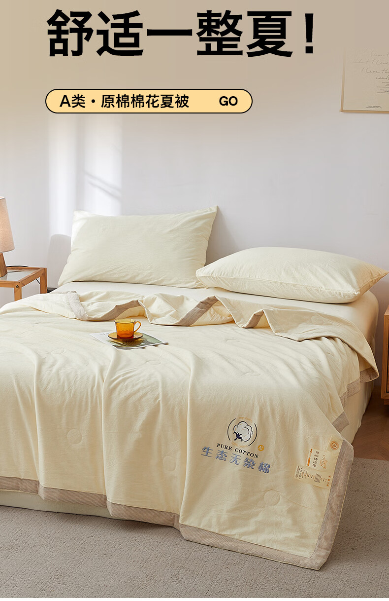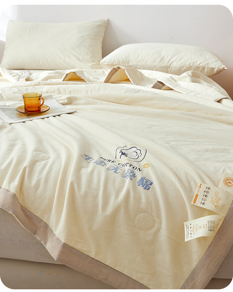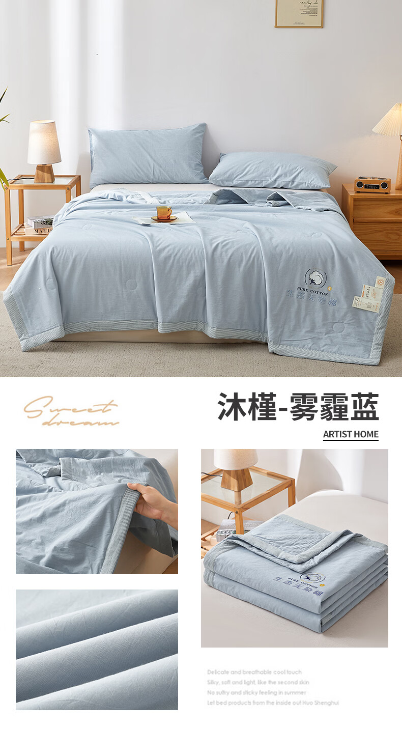 无印良品A类100%新疆棉空调被夏凉被春秋被子纯色棉花被被子180cmx220cm 莫奈-米白【A类100%新疆棉 健康睡眠】 100x150cm单夏被 通用