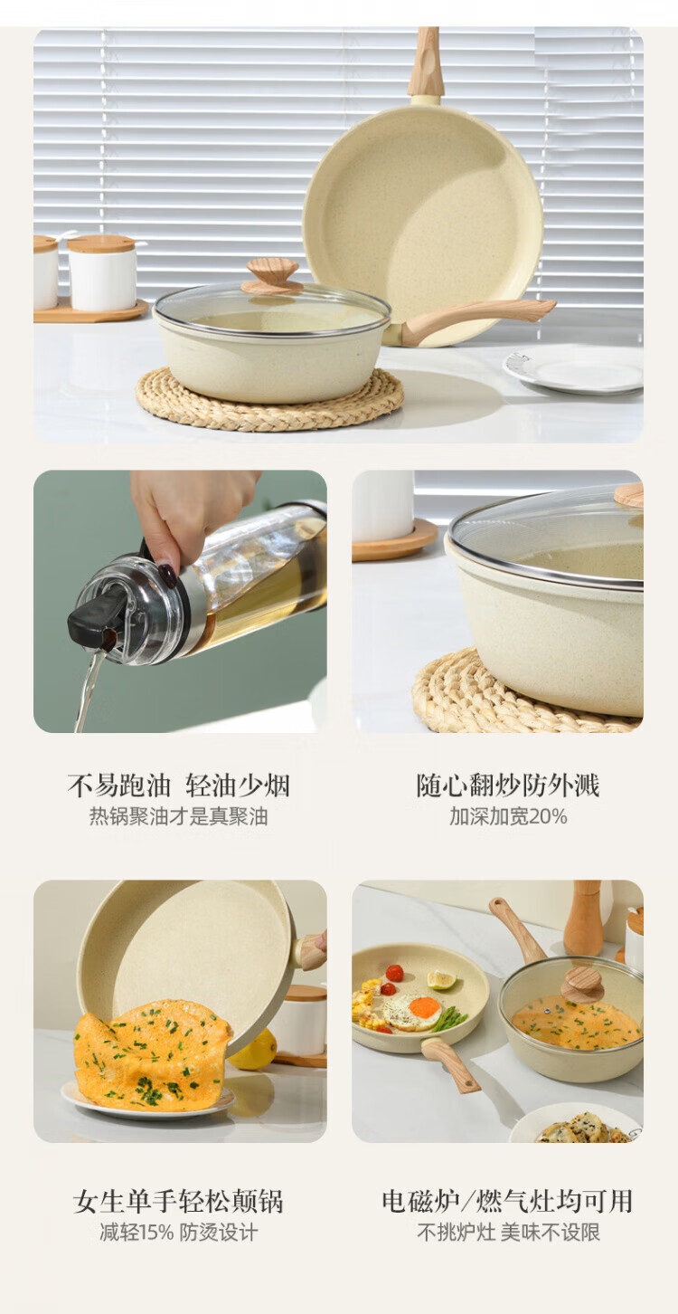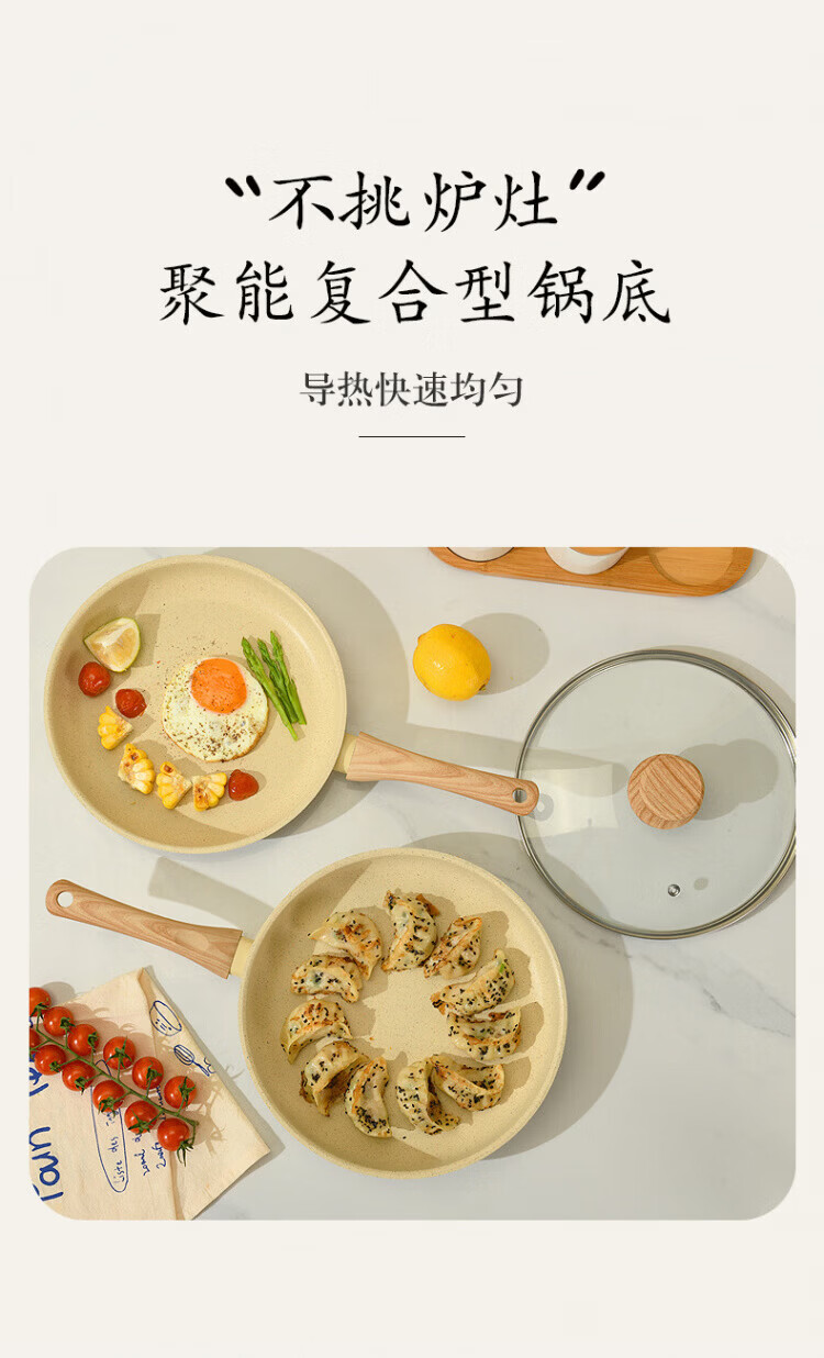 Debo德铂不沾锅三件套炒锅煎锅汤锅高颜值性价比之选不挑炉具