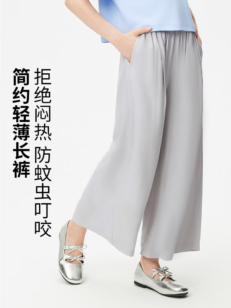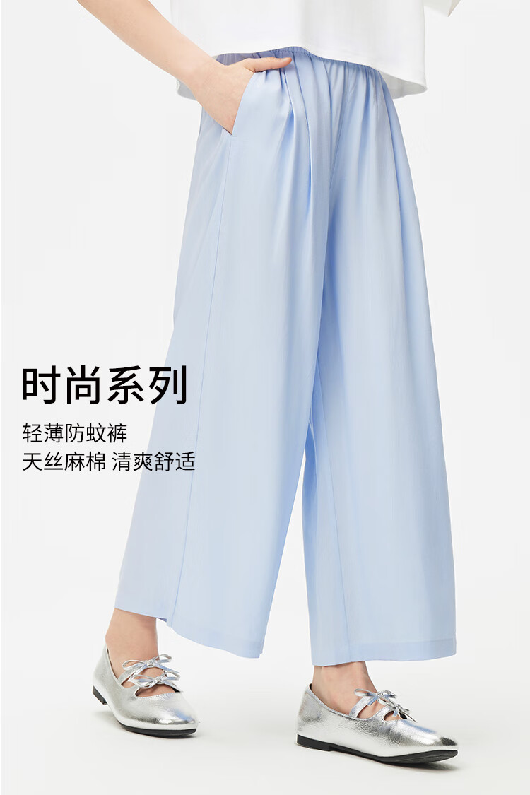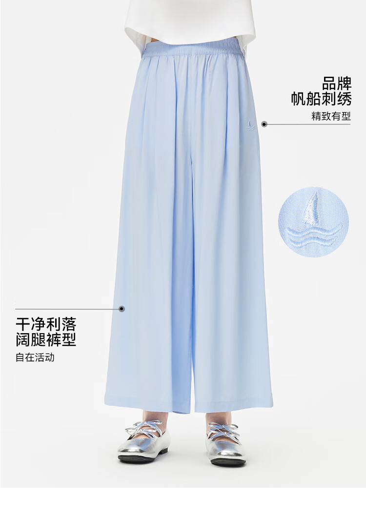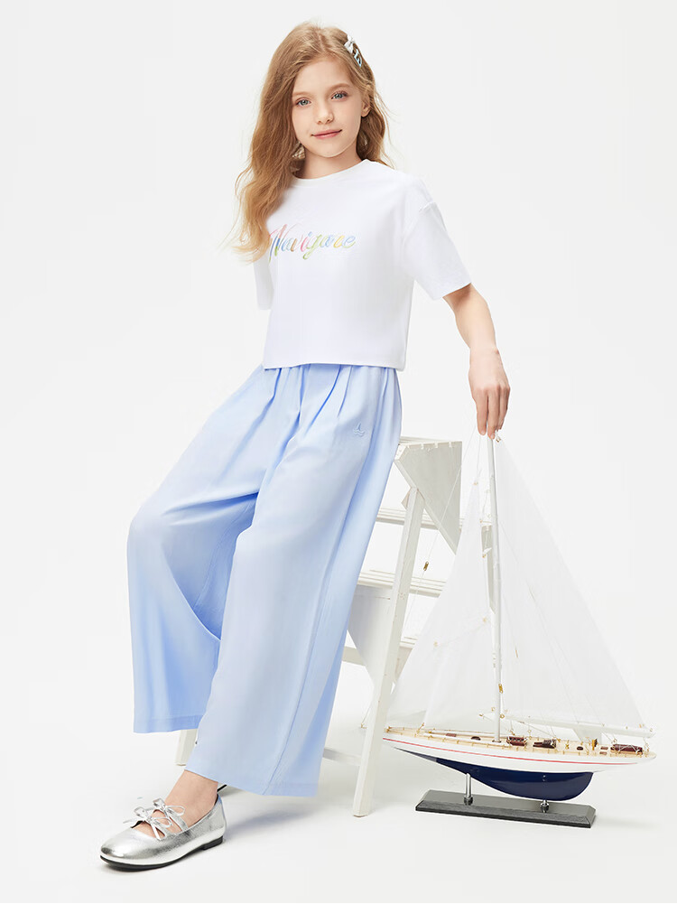 纳维凯尔意大利小帆船儿童防蚊裤夏季中大童裤子女童天丝棉麻阔腿裤 【凉感防蚊】浅蓝 150