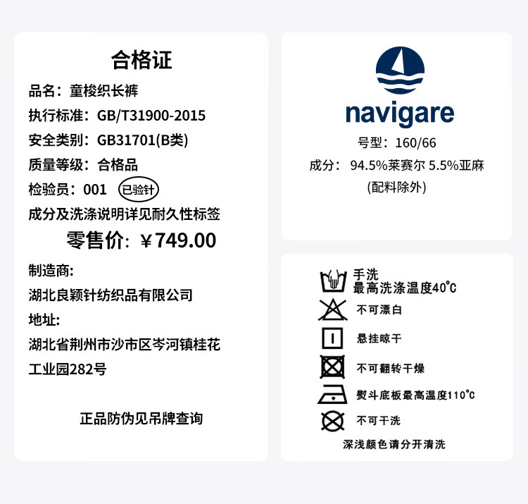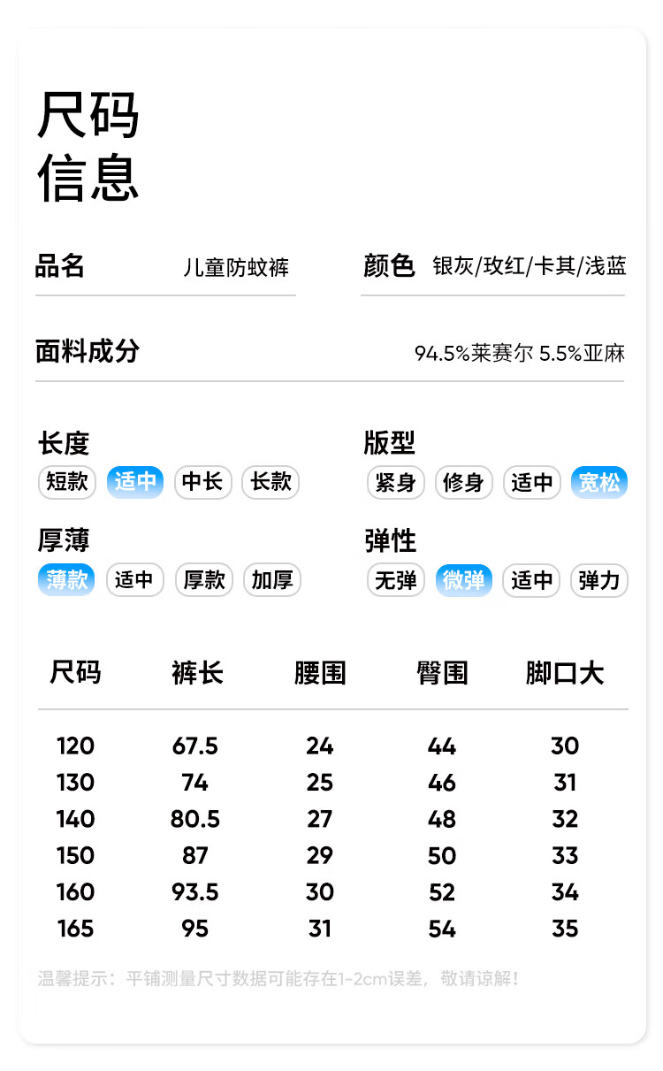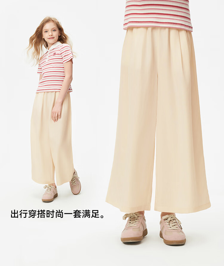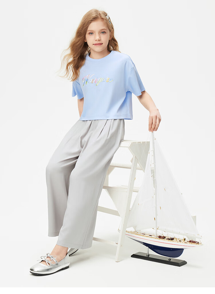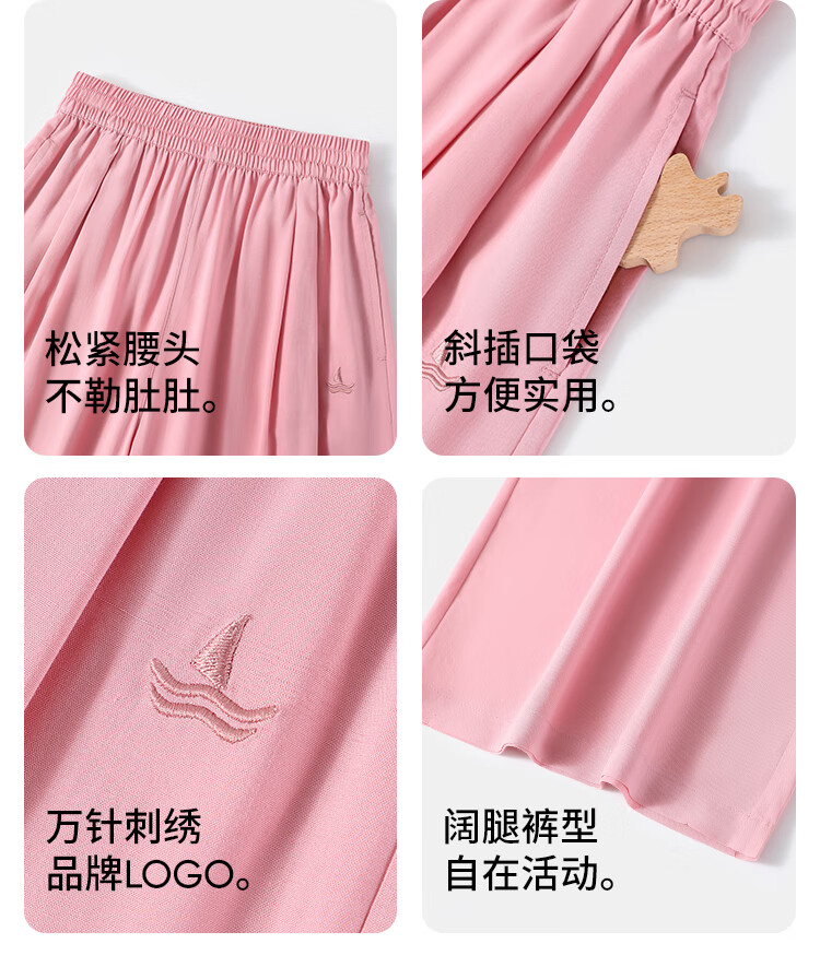 纳维凯尔意大利小帆船儿童防蚊裤夏季中大童裤子女童天丝棉麻阔腿裤 【凉感防蚊】浅蓝 150