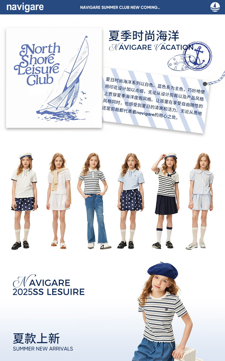 纳维凯尔意大利小帆船儿童家居服女童睡裙夏季睡衣透气可爱舒适凉爽 小小浪漫白色 160