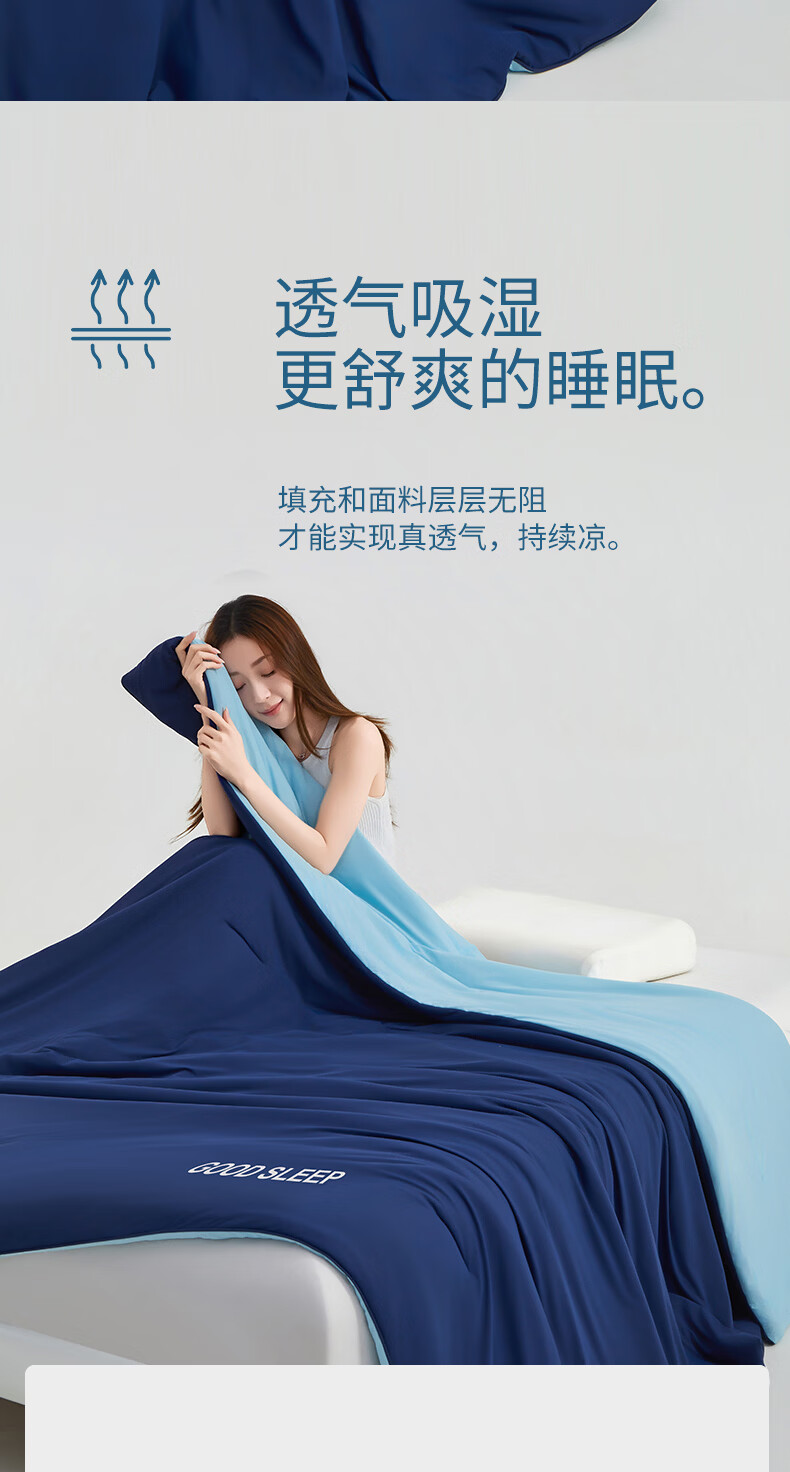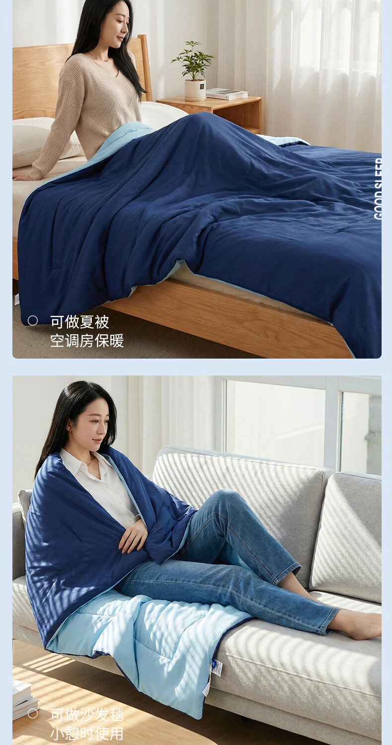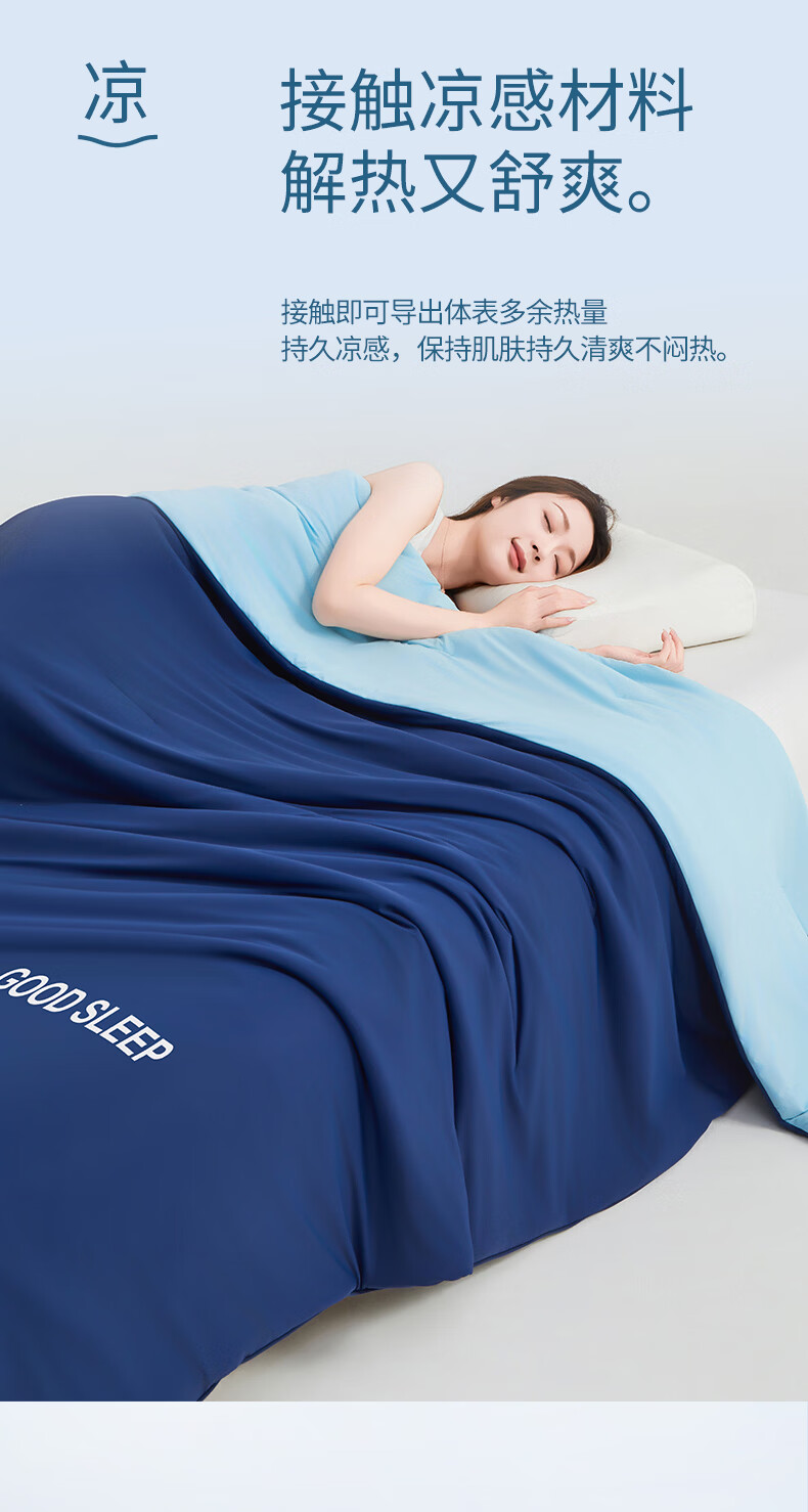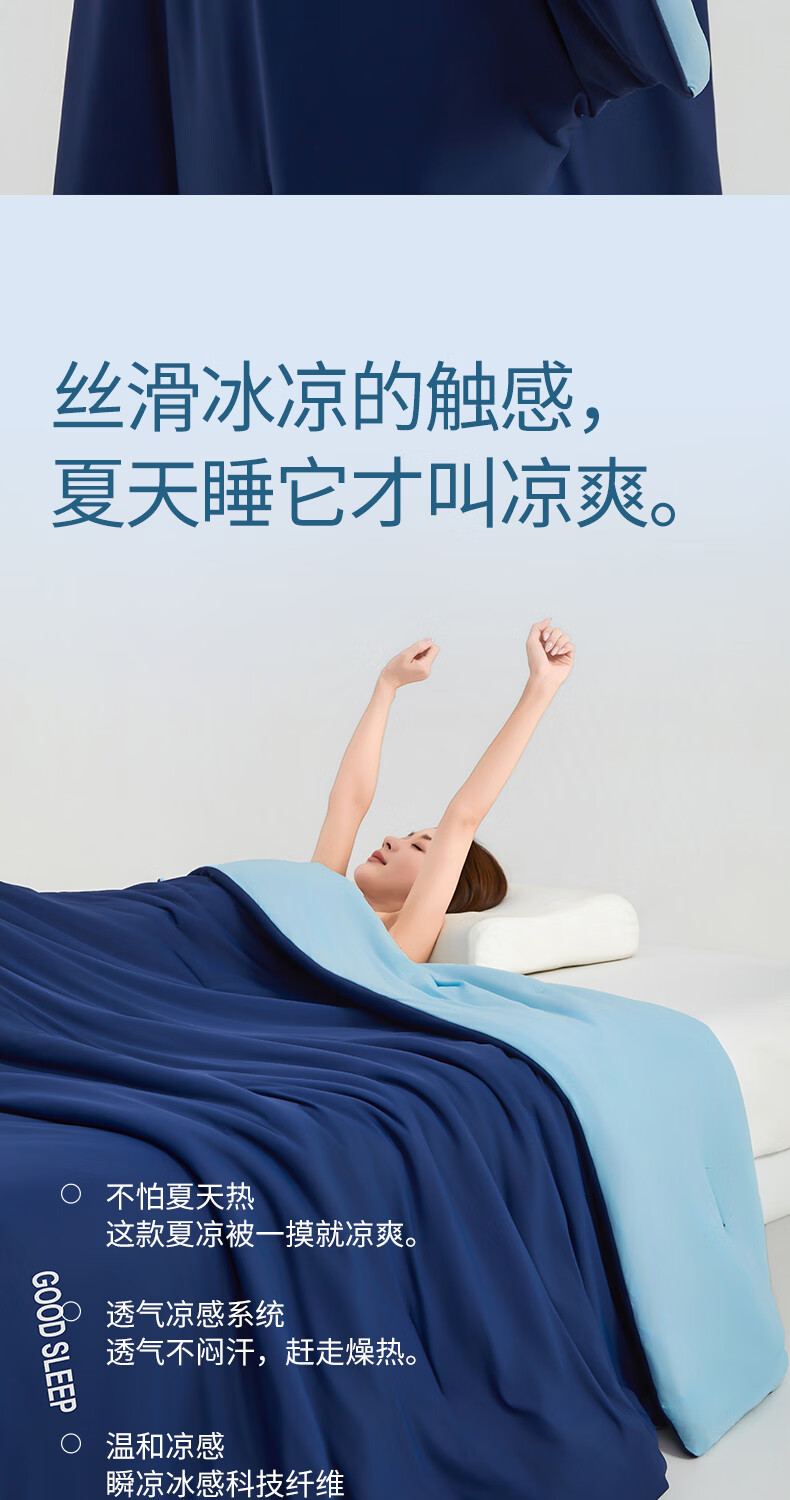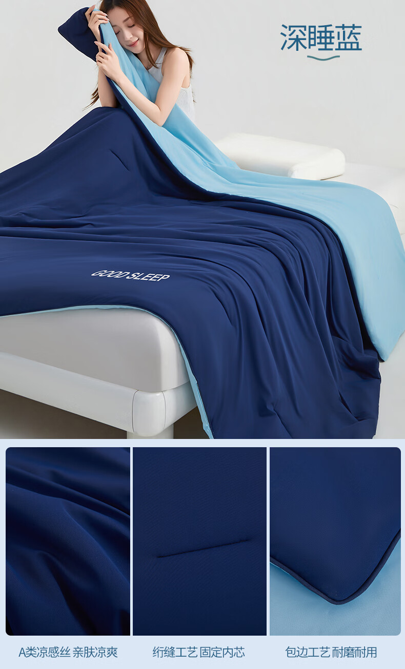 无印良品空调被水洗冰丝夏凉被子1.5米x2米夏季裸睡薄被子家用宿舍单人被 深睡蓝 【A类凉感丝面料 丝滑透气】 150x200cm单夏被 通用