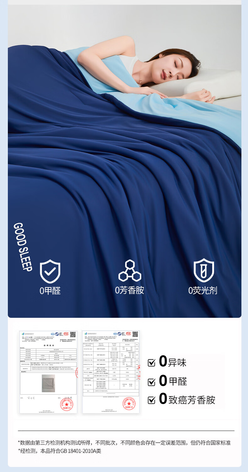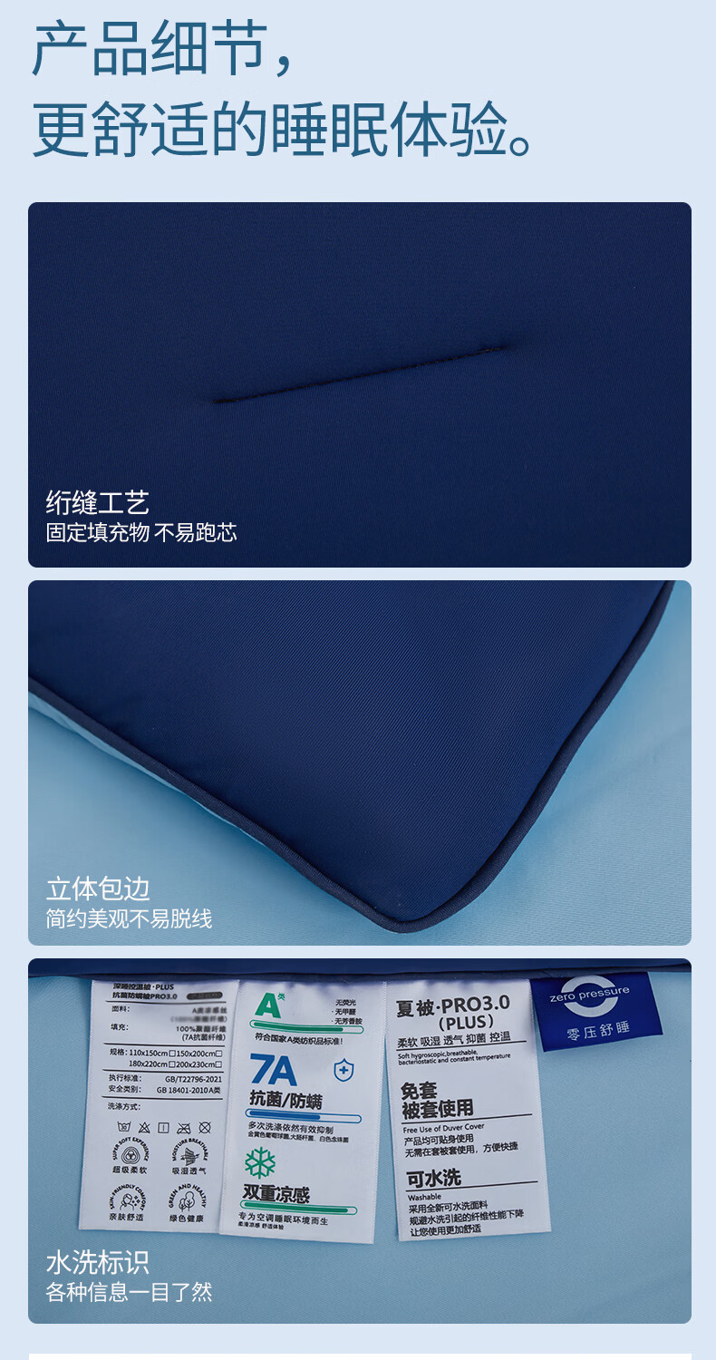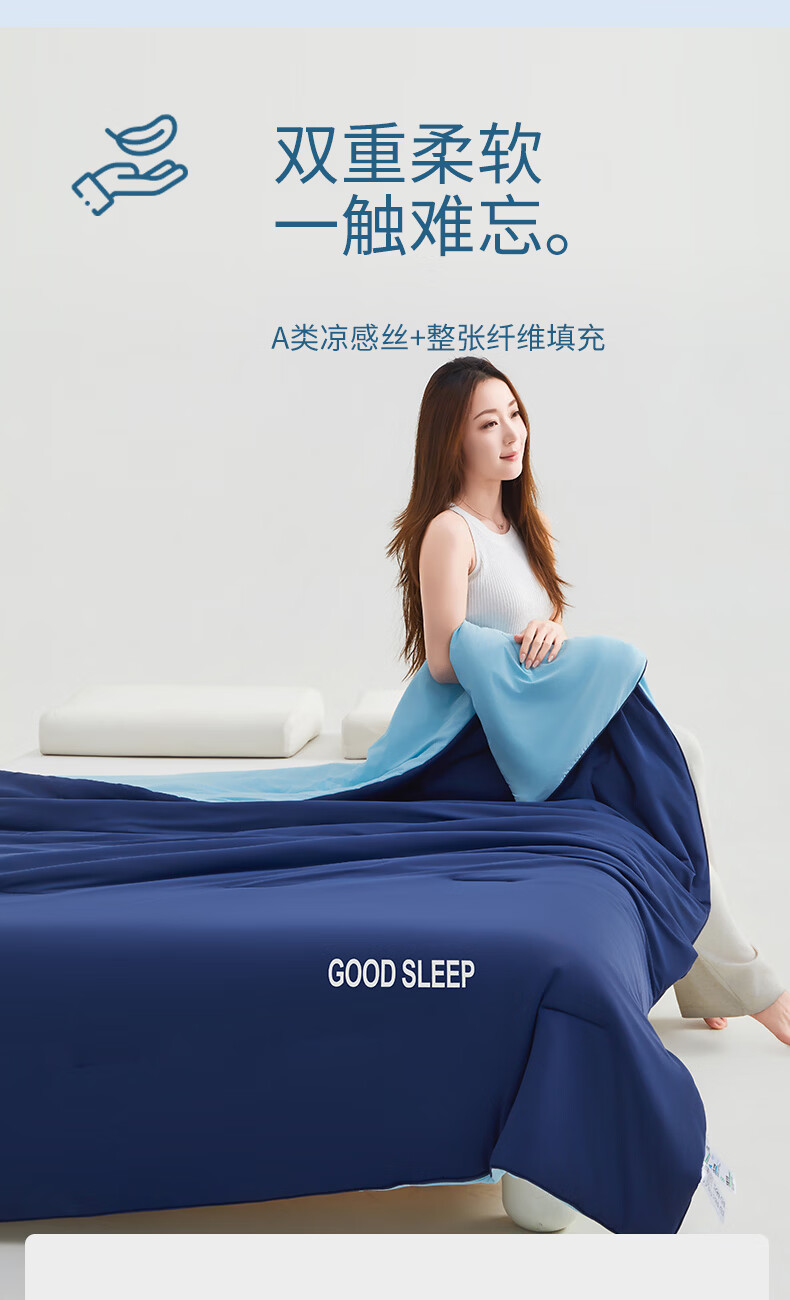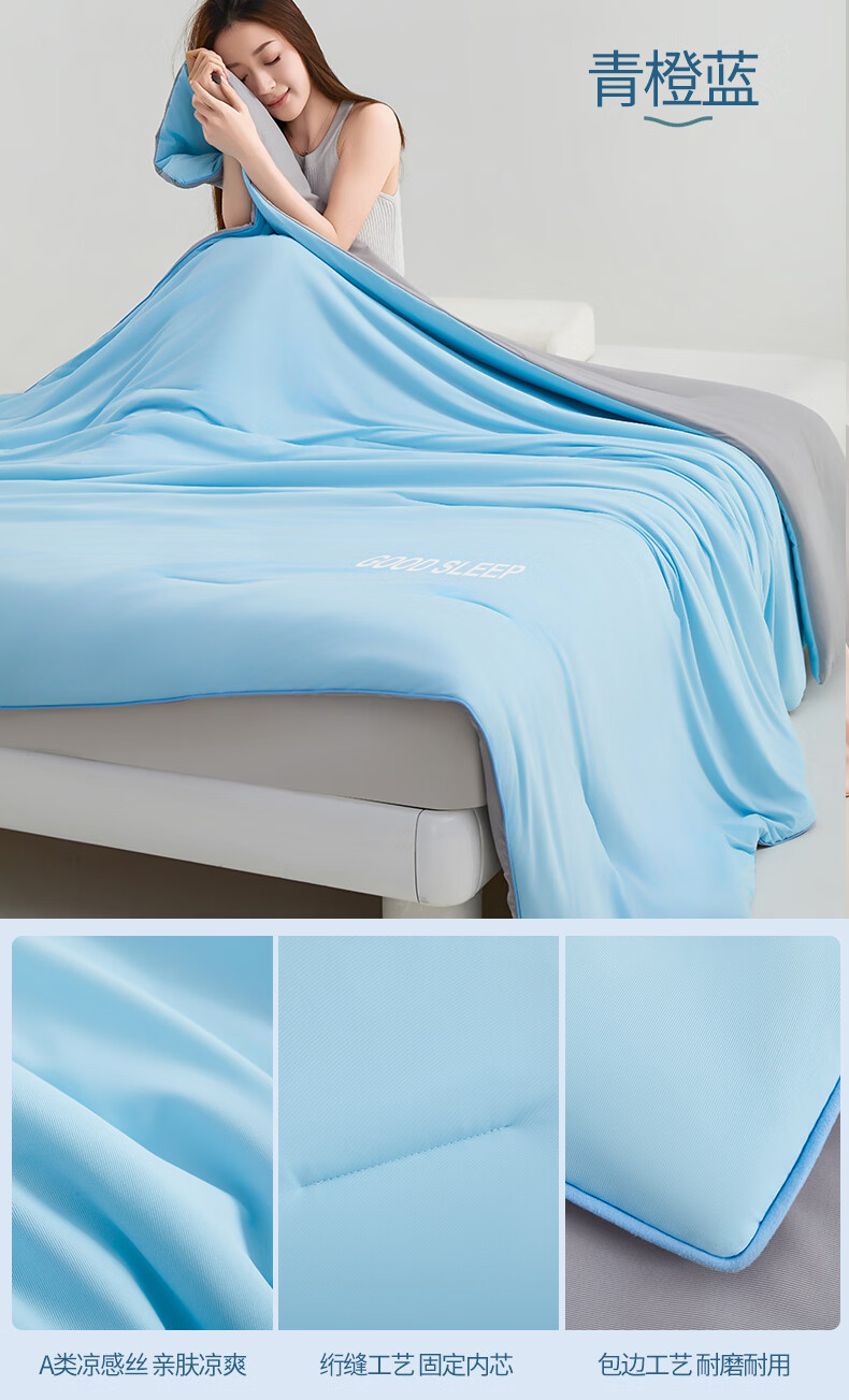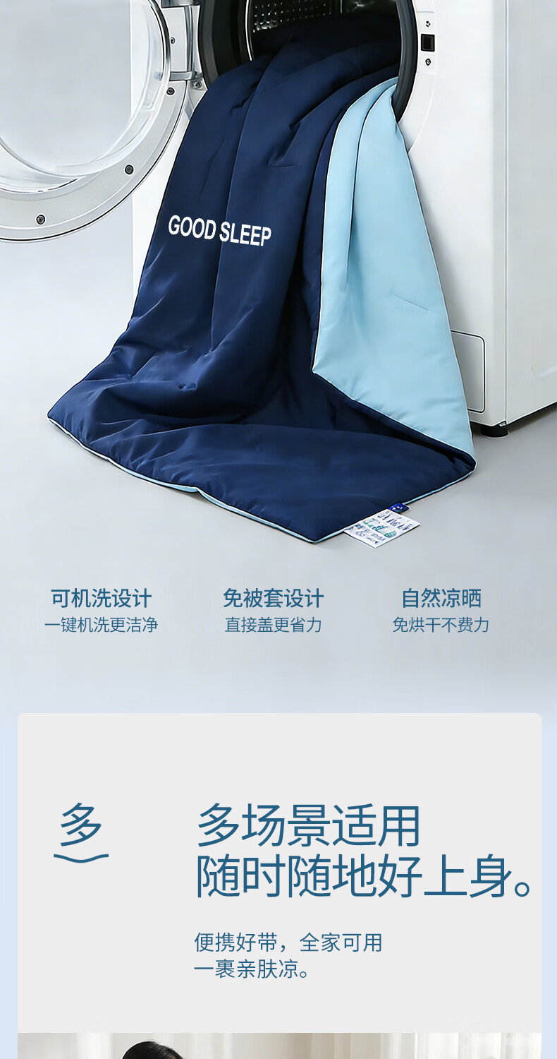 无印良品空调被水洗冰丝夏凉被子1.5米x2米夏季裸睡薄被子家用宿舍单人被 深睡蓝 【A类凉感丝面料 丝滑透气】 150x200cm单夏被 通用