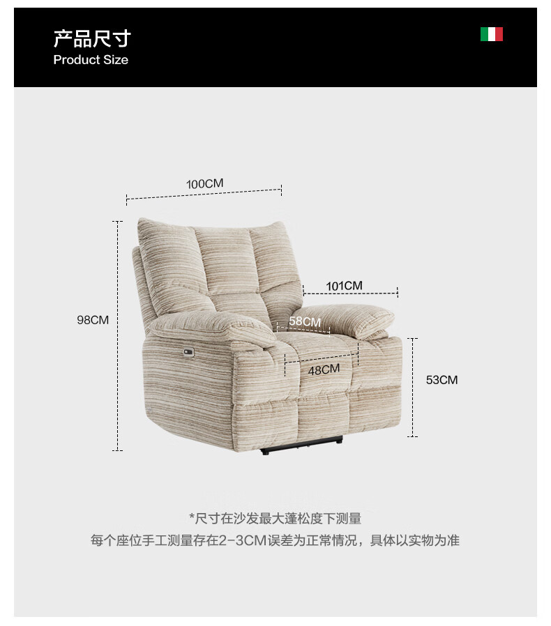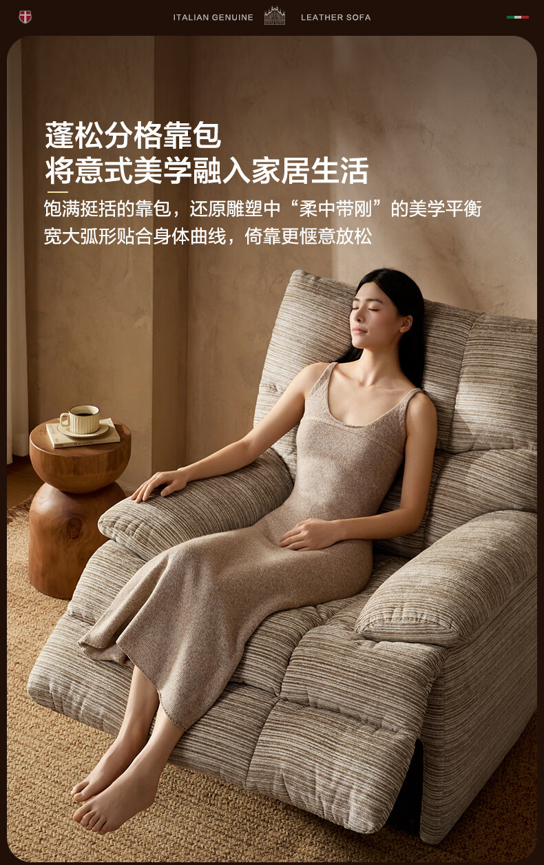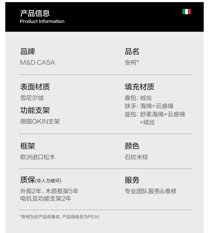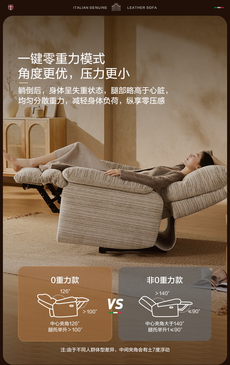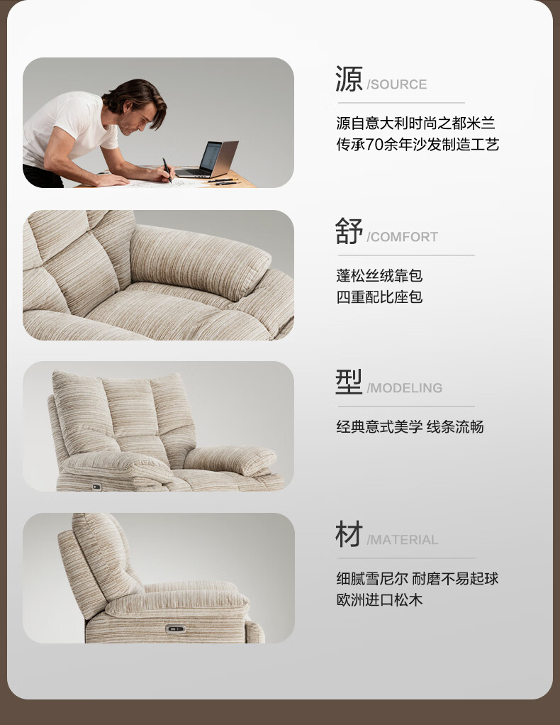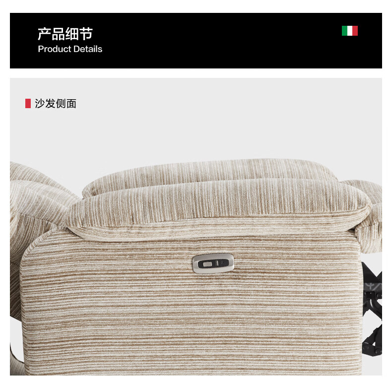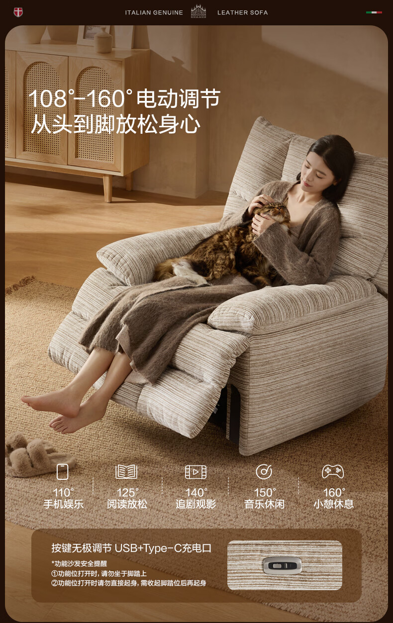 M&D CASA安柯电动功能单人沙发零重力躺椅客厅2026新款布艺雪尼尔休闲椅 石纹米棕|雪尼尔|电动单椅