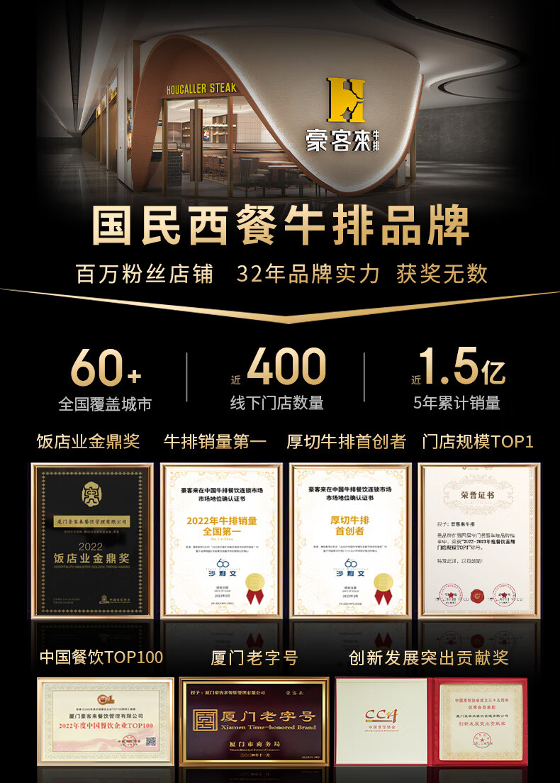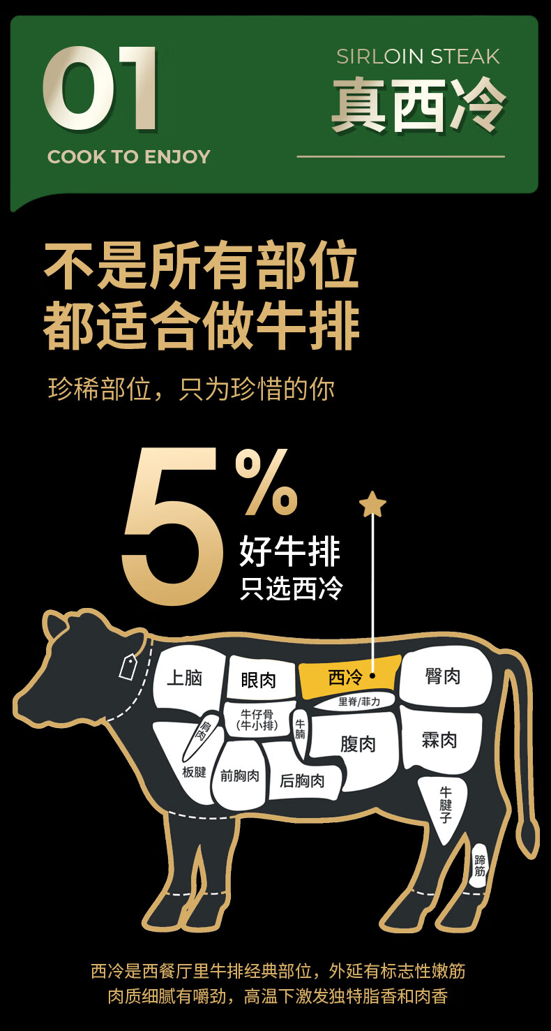 豪客来 黑胡椒整切调理西冷牛排(1.5kg/10片含酱包)牛肉生鲜健身减脂