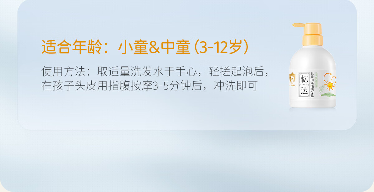 松达儿童洗发水山茶油宝宝氨基酸洗发露无硅油3-6-12岁男女专用洗发液 【2瓶更划算】儿童洗发水380ml