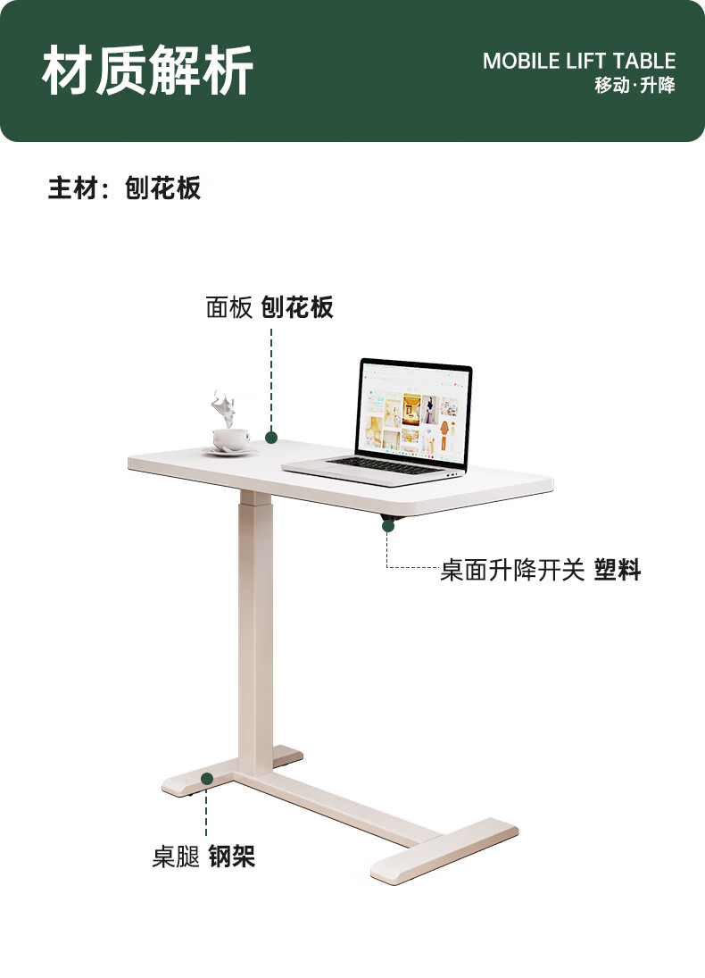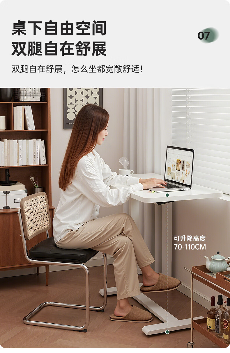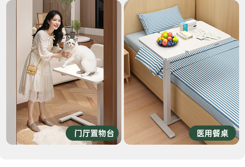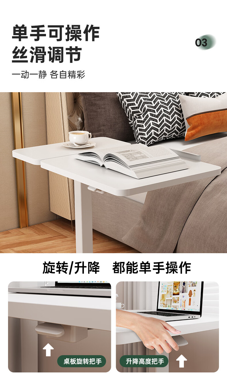 顾家家居可移动电脑桌升降桌小户型床边桌家用折叠书桌学习桌子办公工作台 云溪白【无极升降|静音万向轮】70*40*(75-110)) 【送货上门包安装】