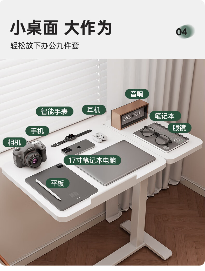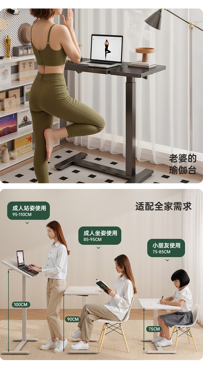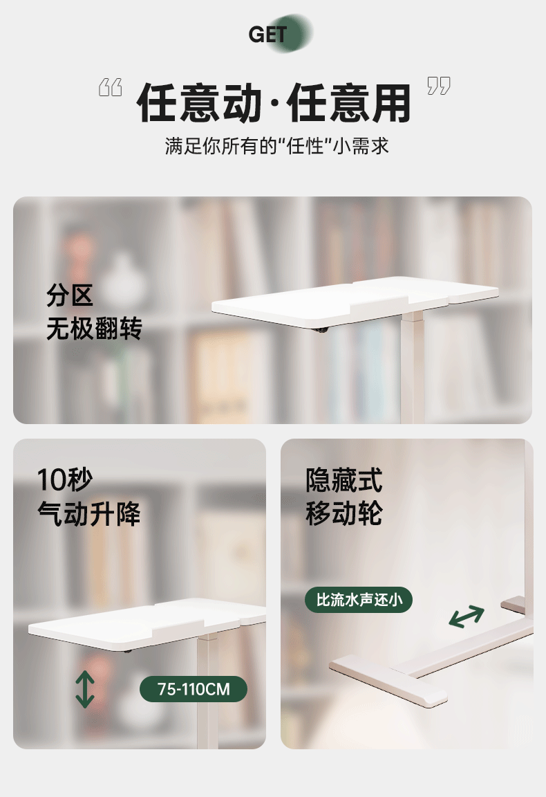 顾家家居可移动电脑桌升降桌小户型床边桌家用折叠书桌学习桌子办公工作台 云溪白【无极升降|静音万向轮】70*40*(75-110)) 【送货上门包安装】