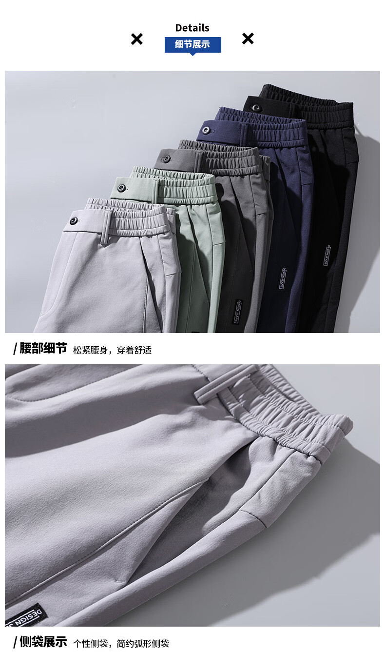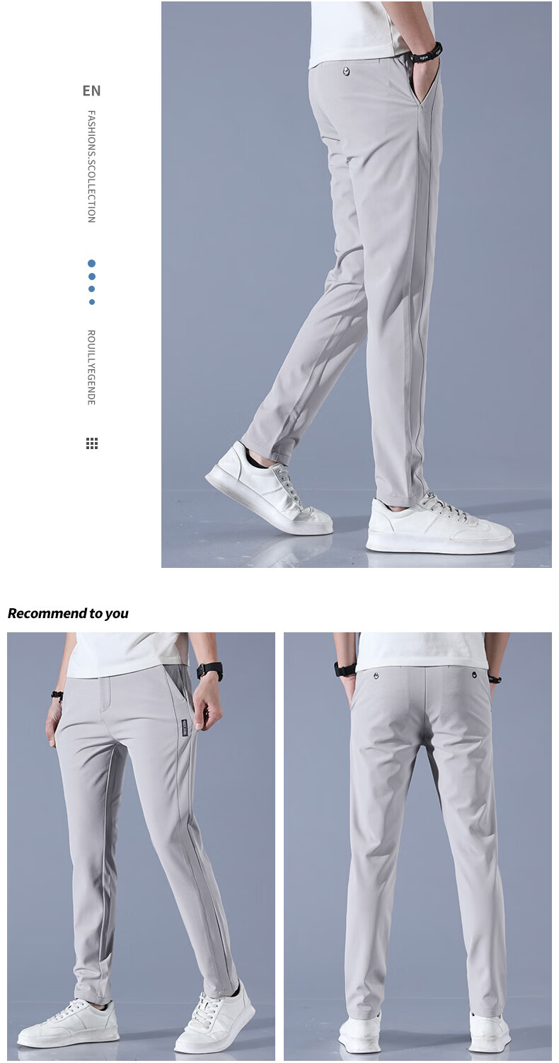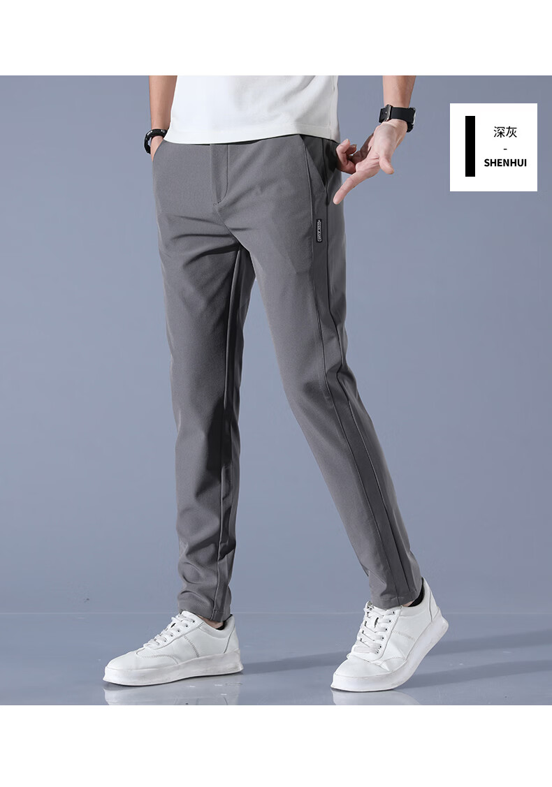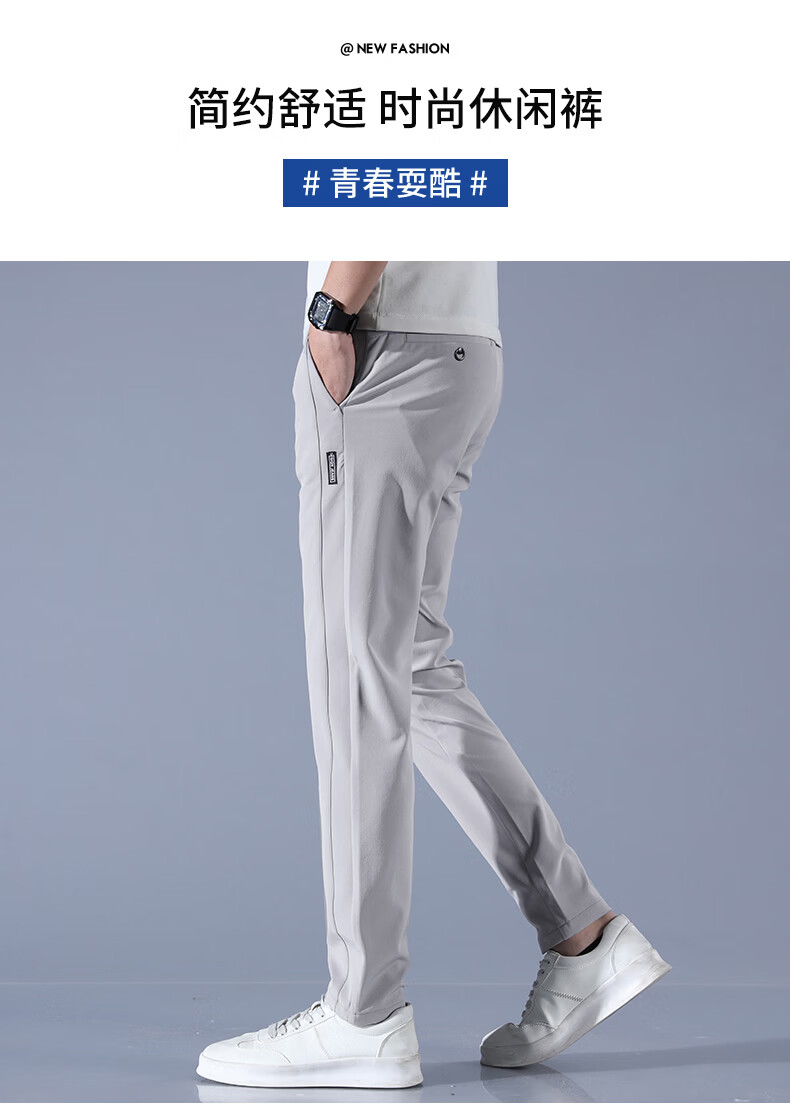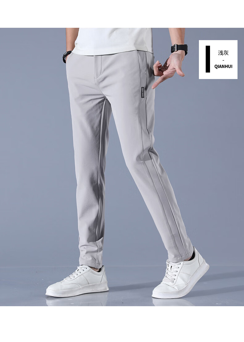 真维斯夏季2025新款男士休闲裤冰丝薄款修身直筒百搭长裤子男潮 浅灰 单条 冰丝薄款 28 【适合90-105斤】