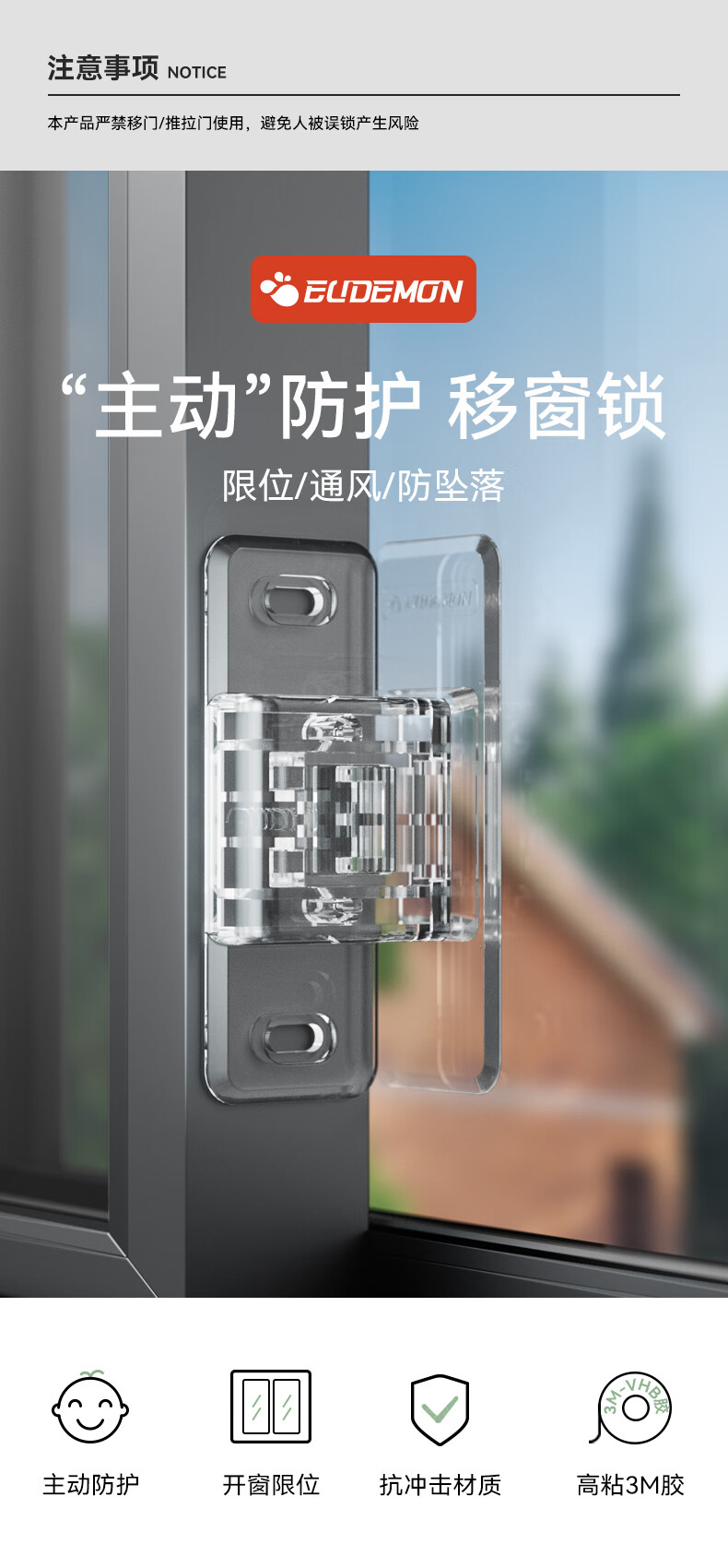 攸曼诚品(EUDEMON)(eudemon)窗户通风限位器儿童窗锁扣宝宝推拉门柜子柜门安全锁3个