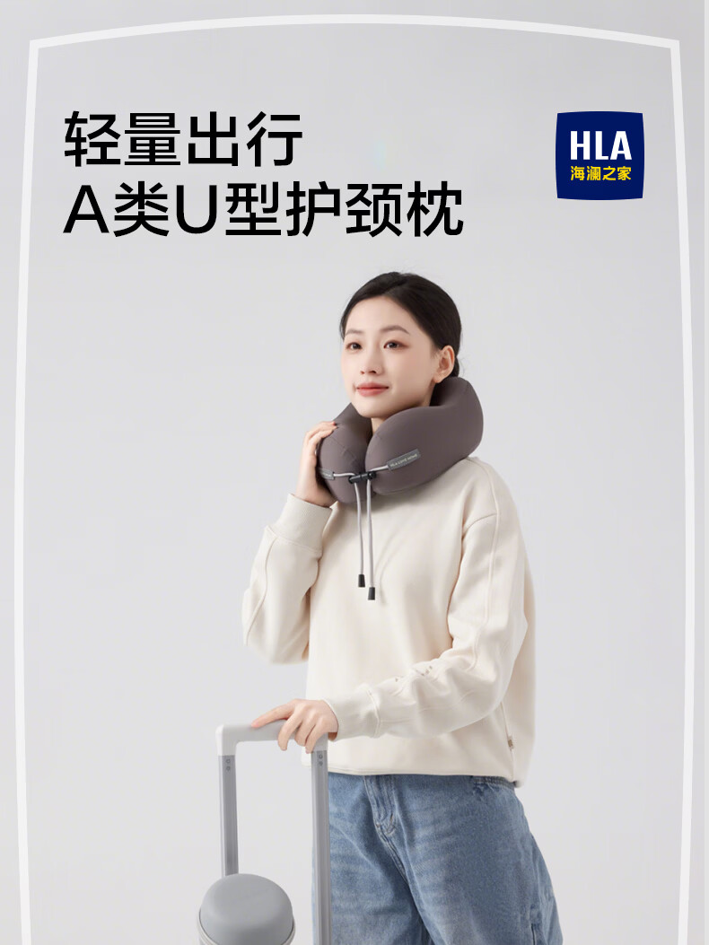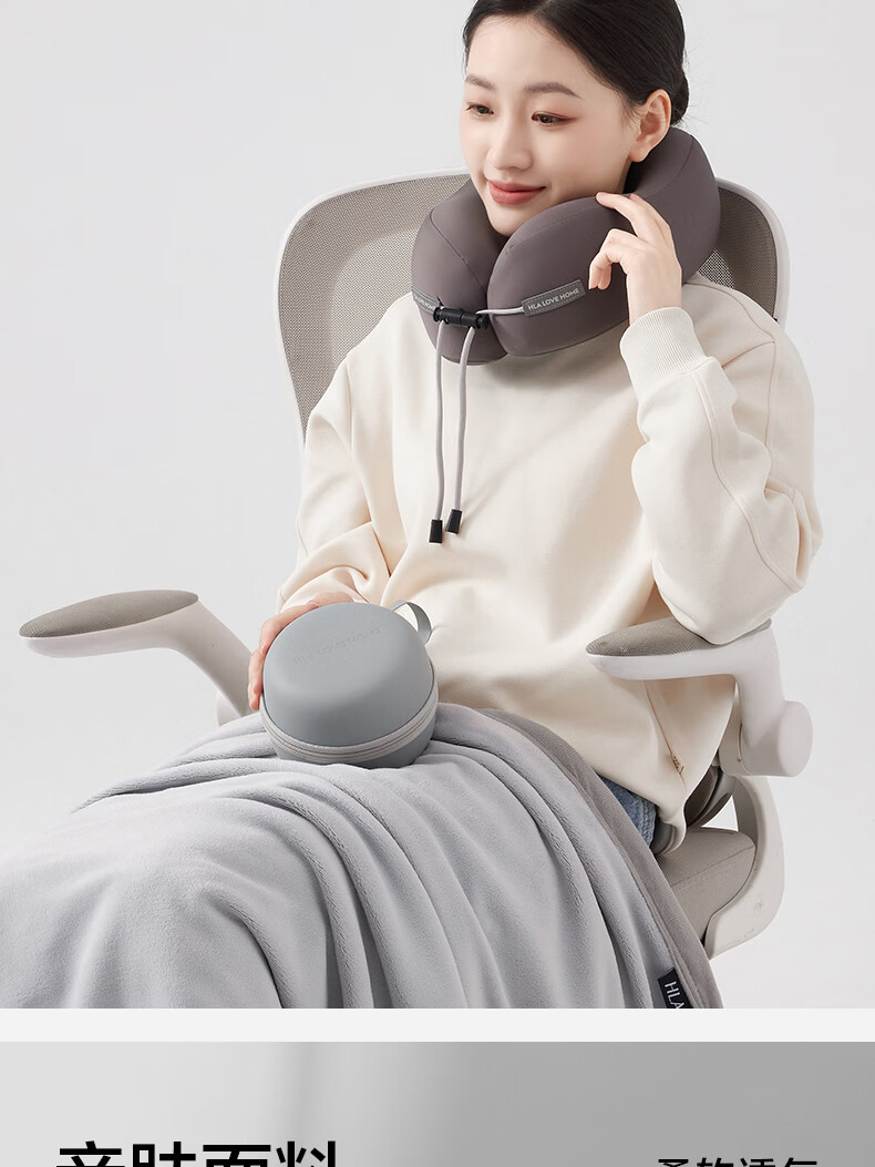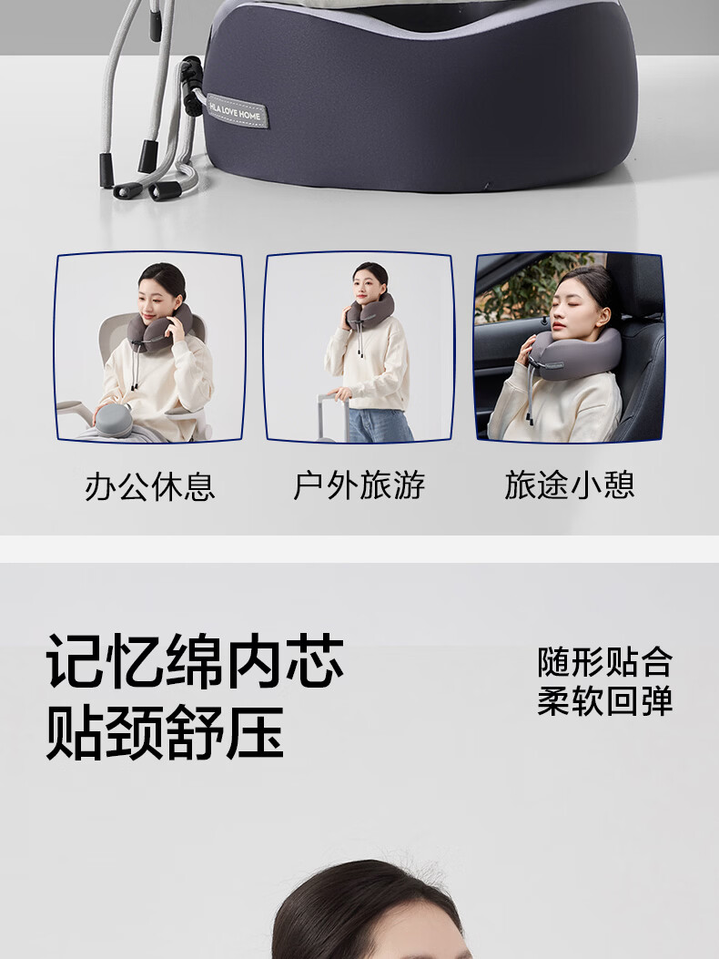海澜之家(HLA)u型枕护颈枕脖套汽车头枕办公室午睡枕头旅行飞机枕礼物男生靠枕 蓝映灰【出差旅行 坐着就能睡】 27*23*11cm【赠EVA收纳盒】
