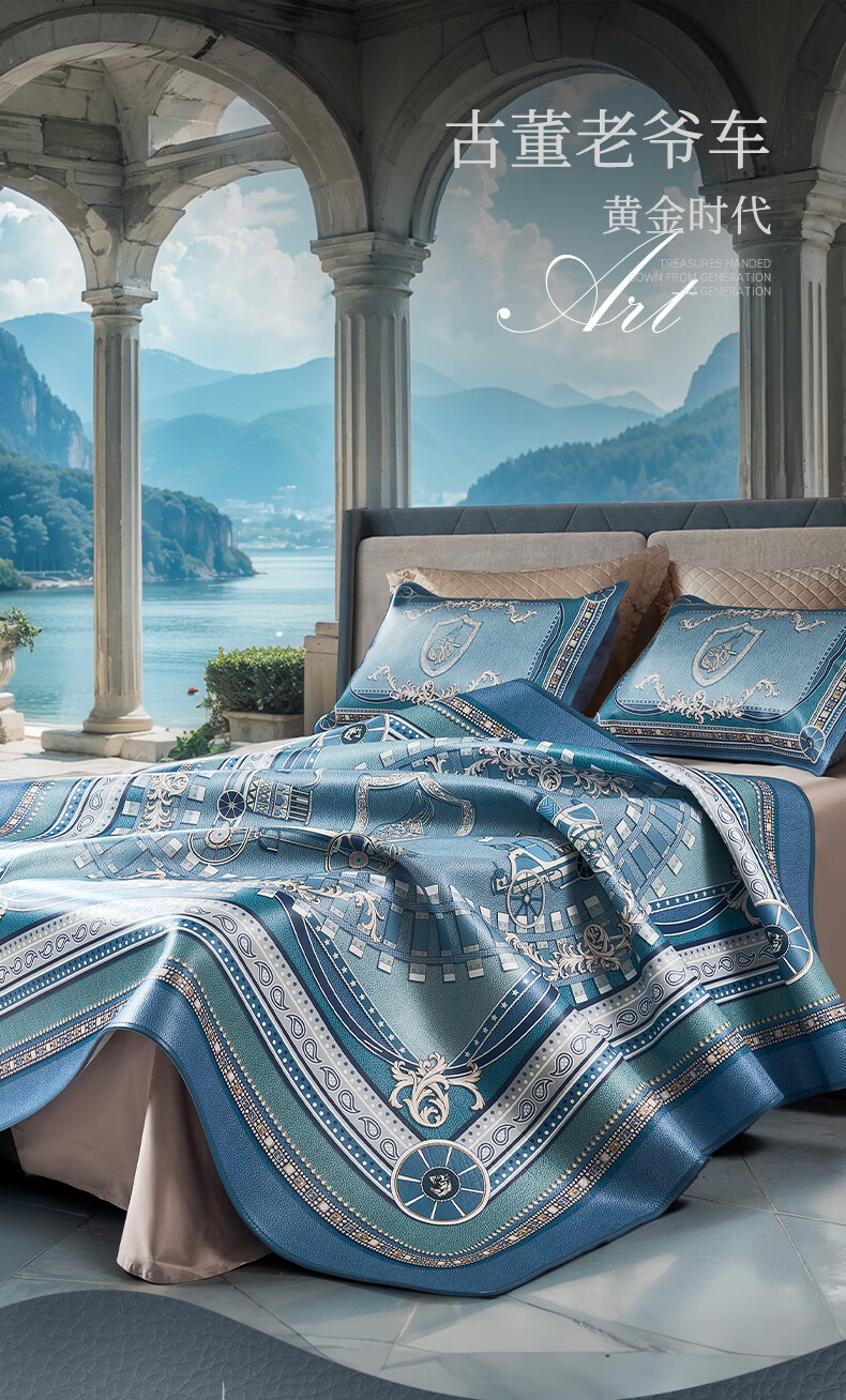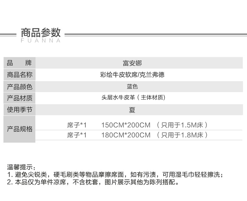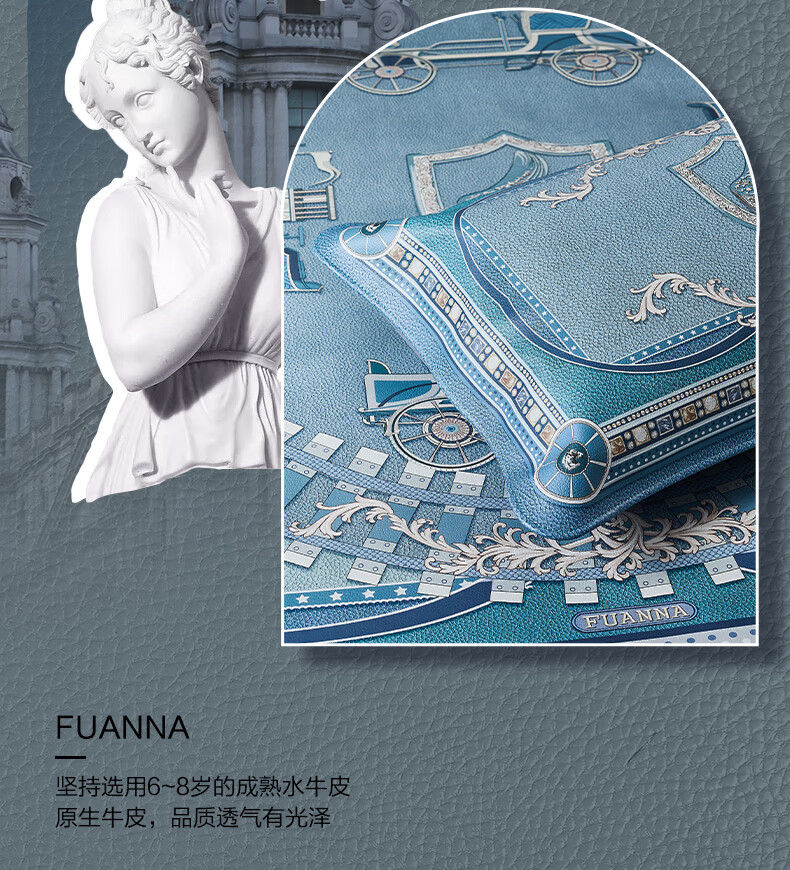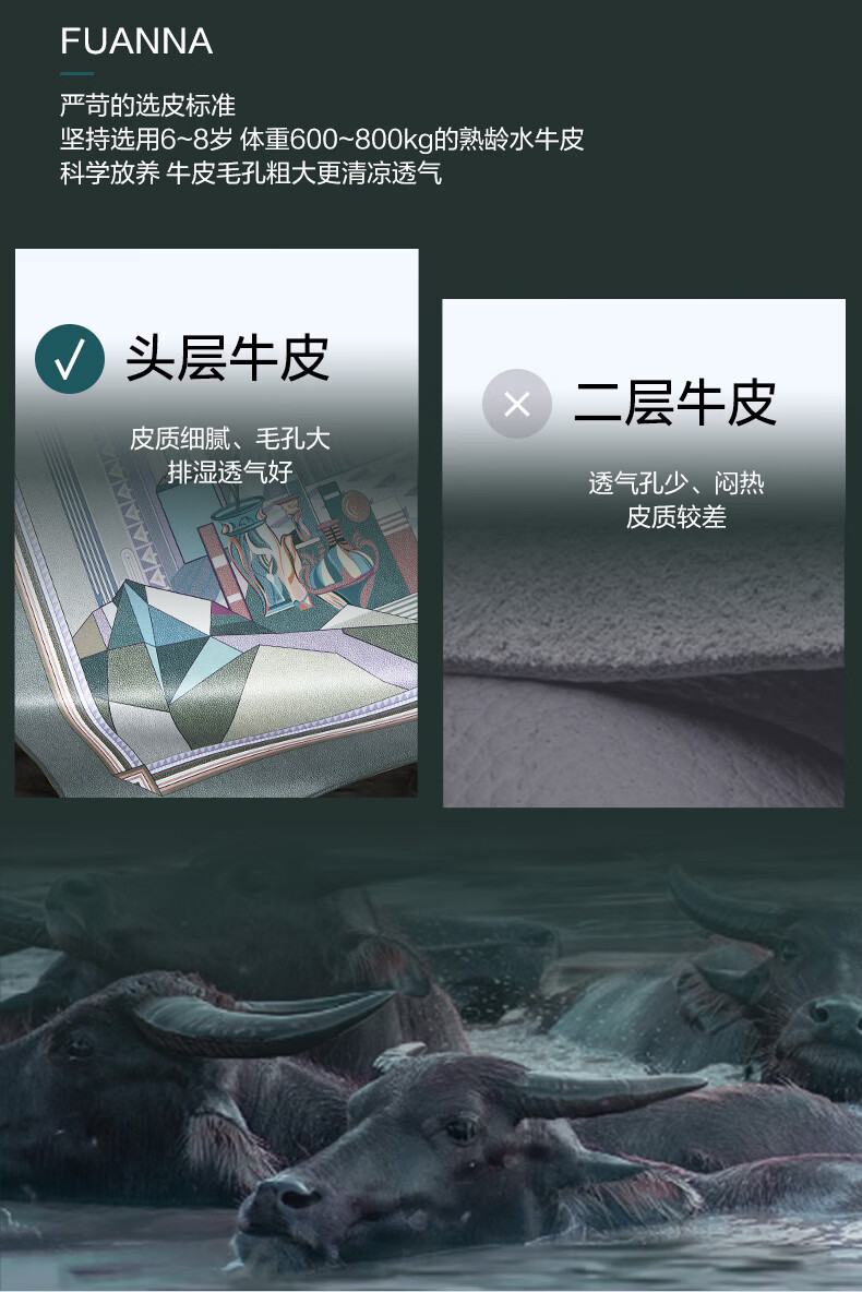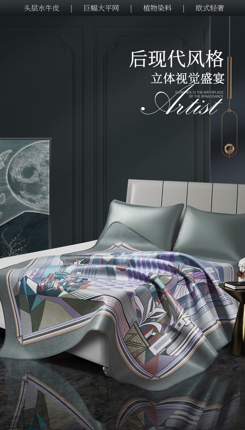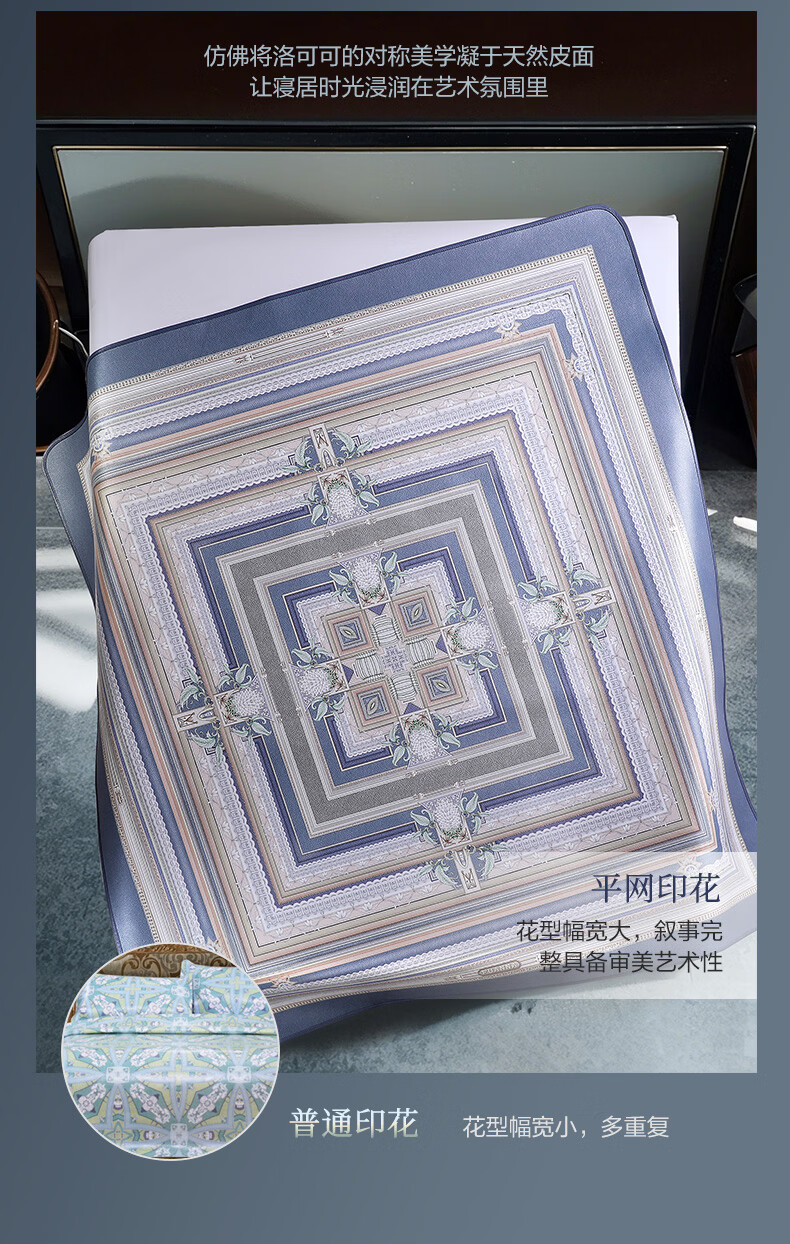富安娜 独幅平网印花 头层牛皮 高端牛皮席双人凉席 头层水牛皮-庄园【单席】 1.5米床 200cm*150cm