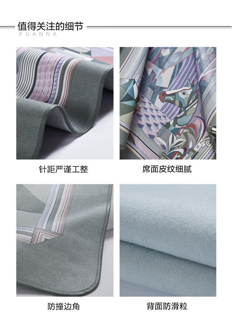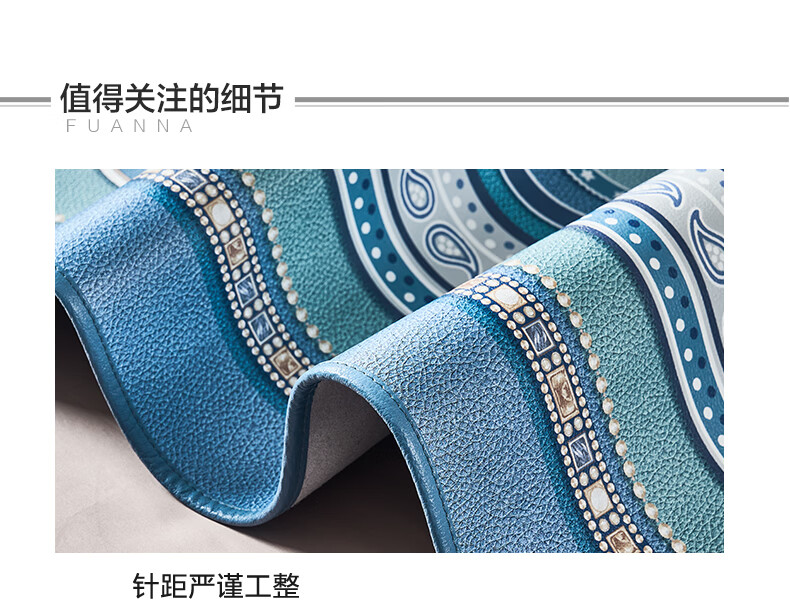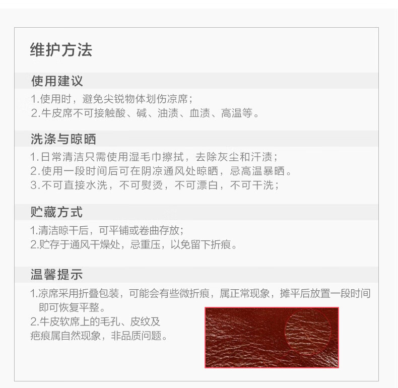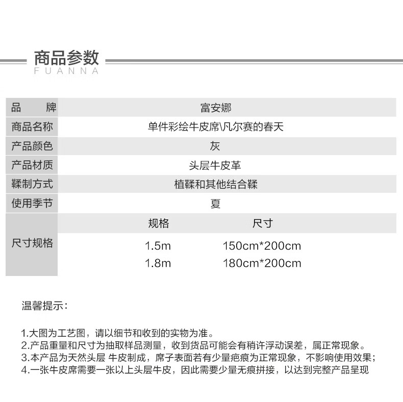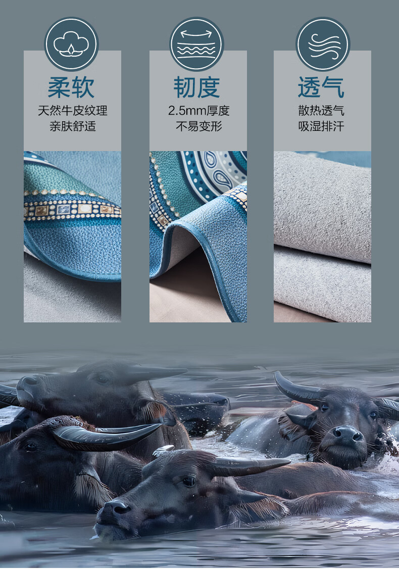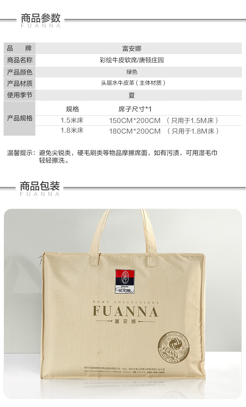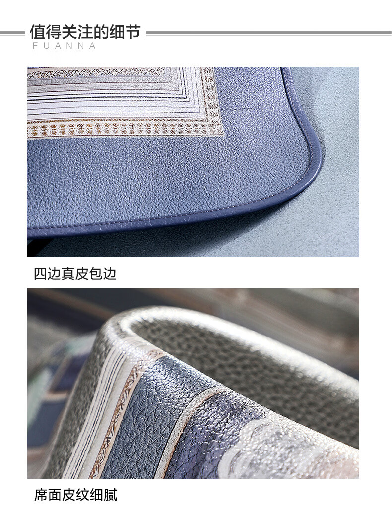 富安娜 独幅平网印花 头层牛皮 高端牛皮席双人凉席 头层水牛皮-庄园【单席】 1.5米床 200cm*150cm
