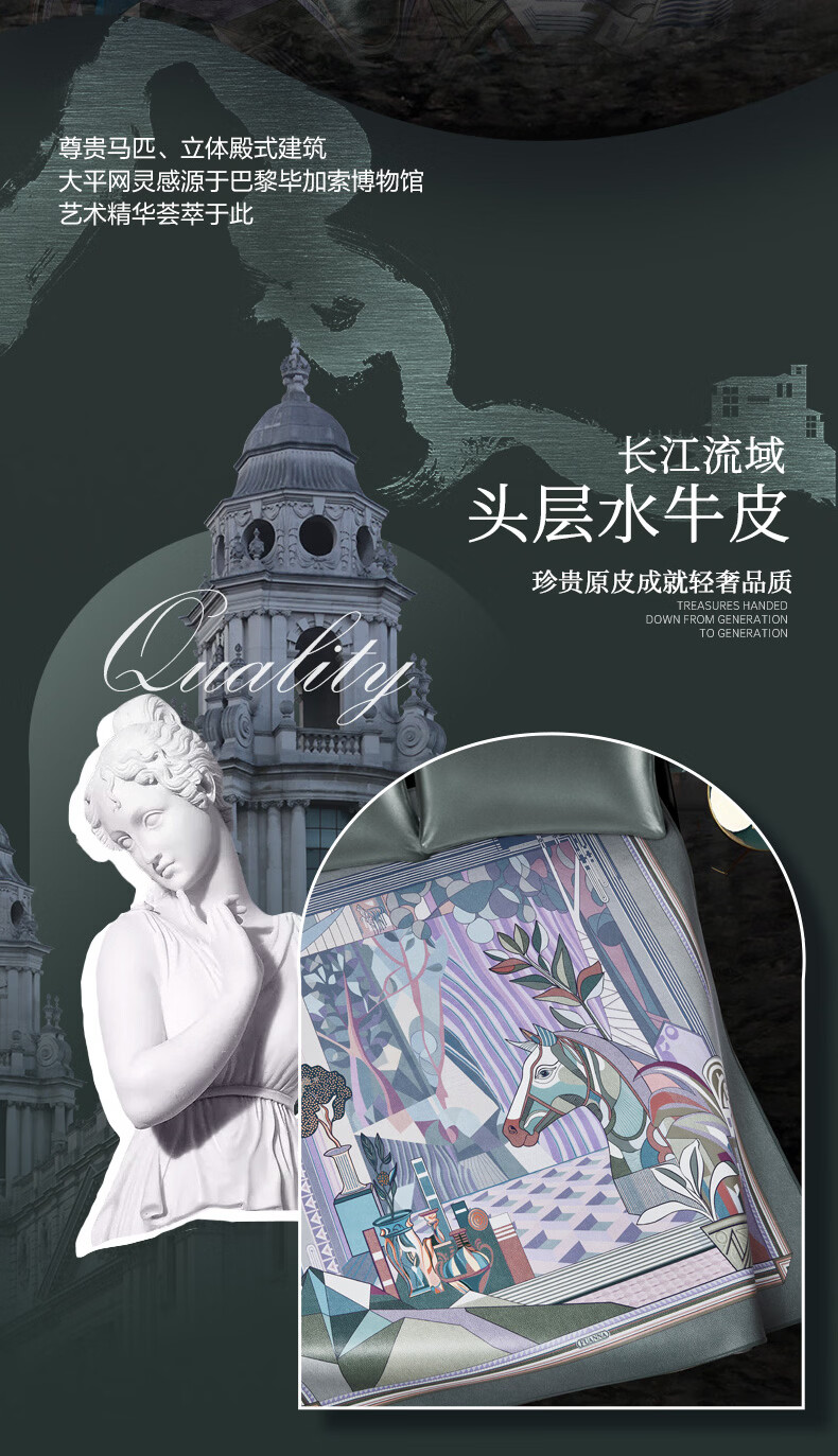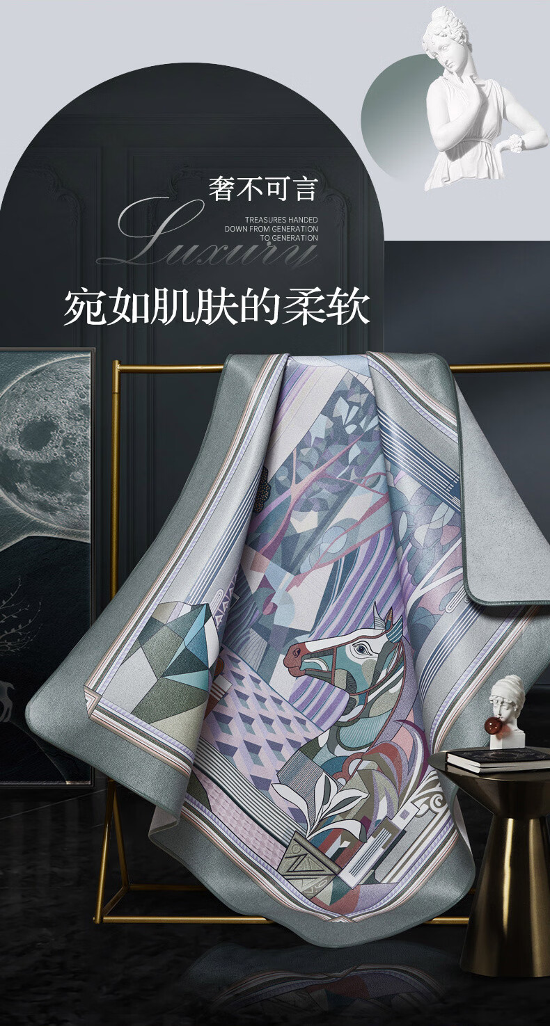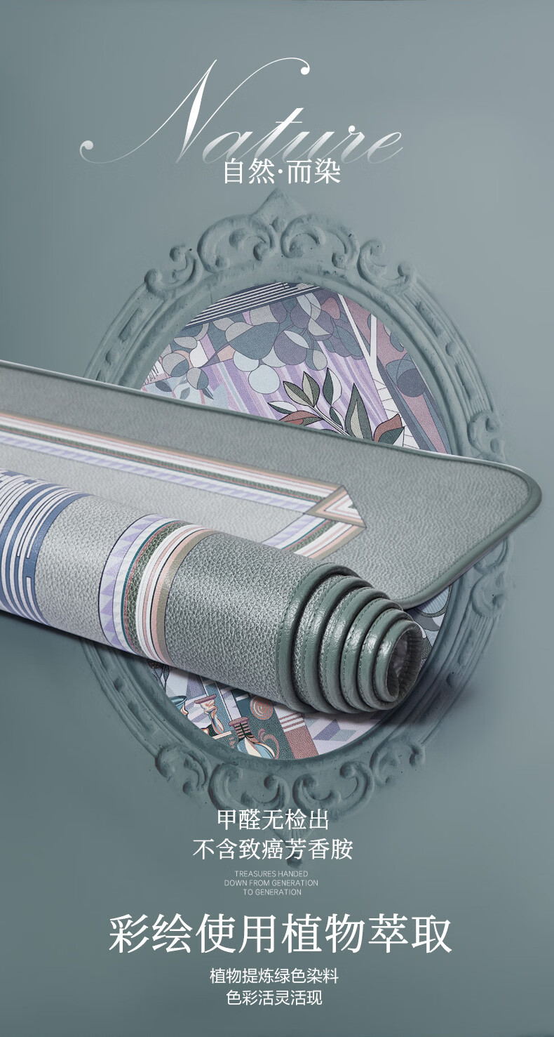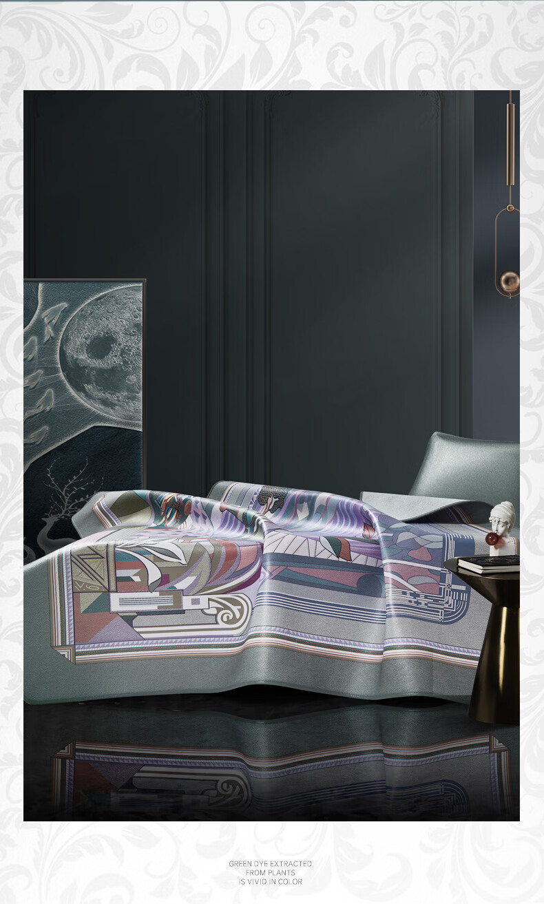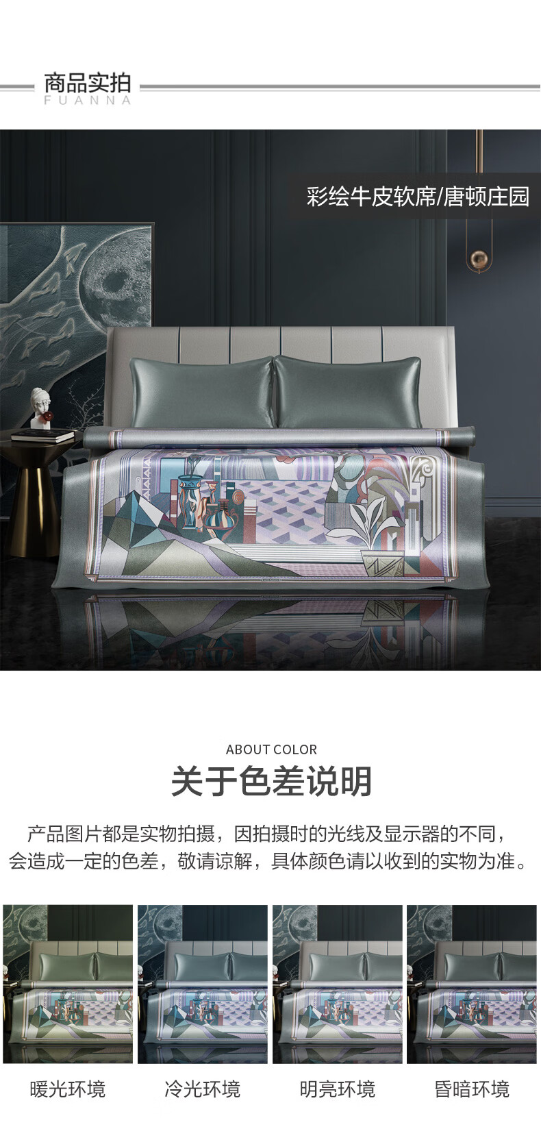 富安娜 独幅平网印花 头层牛皮 高端牛皮席双人凉席 头层水牛皮-庄园【单席】 1.5米床 200cm*150cm