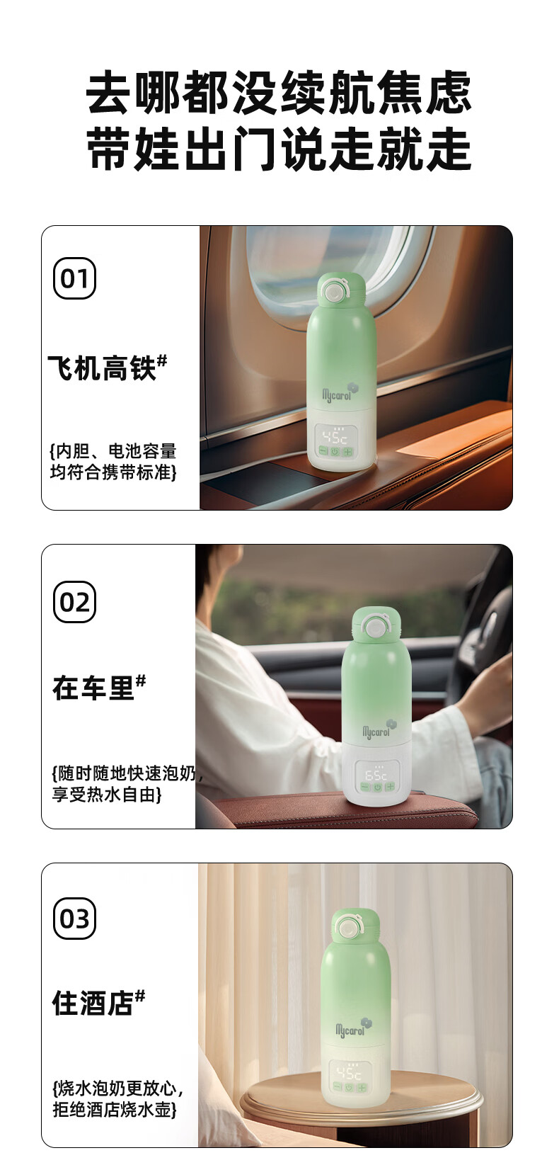 可瑞儿(MyCarol)婴儿便携式外出恒温杯热水壶温奶器恒温水杯便携烧水壶消毒调奶器