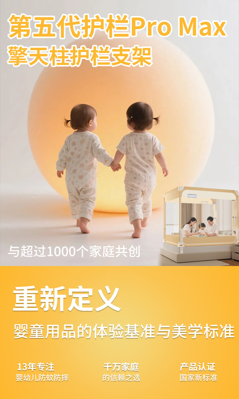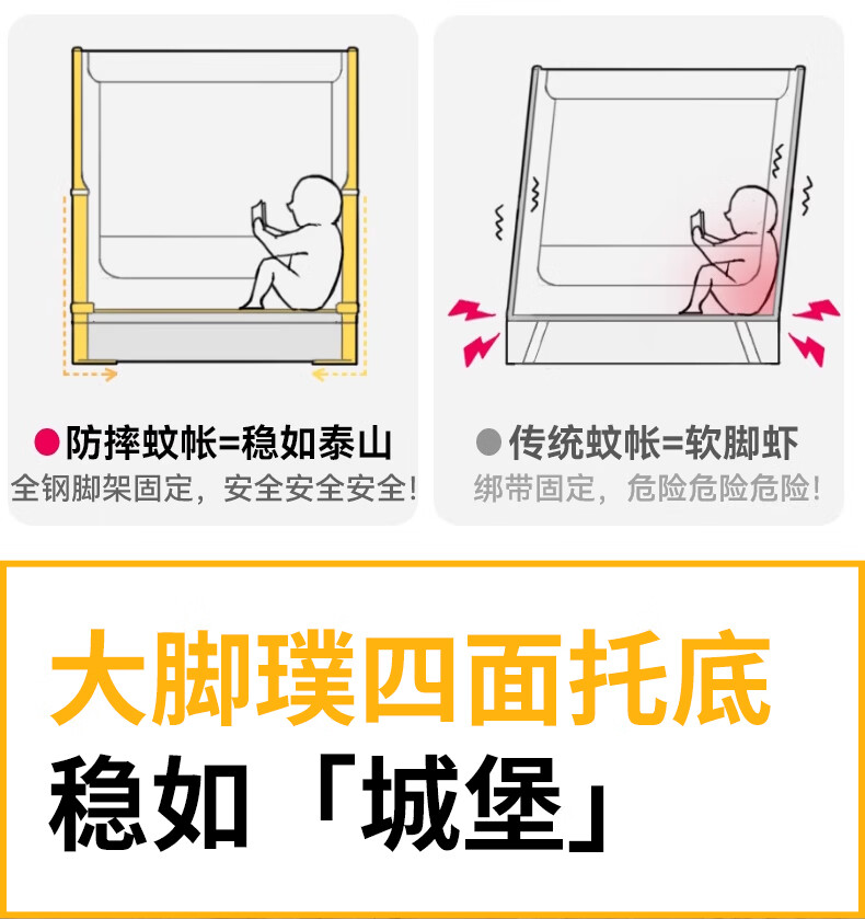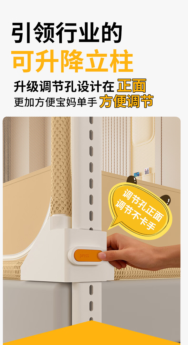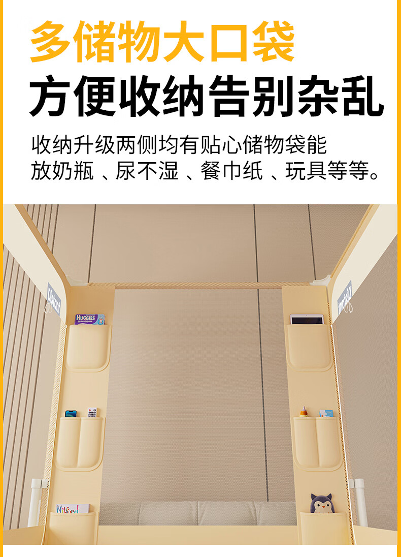 无印良品婴儿防摔蚊帐1.5米x2米免安装家用卧室全底宝宝防掉床围栏三开门 夏末格调米【单帐纱】 1.5m床-宽150x长200x高170cm【围栏支架】