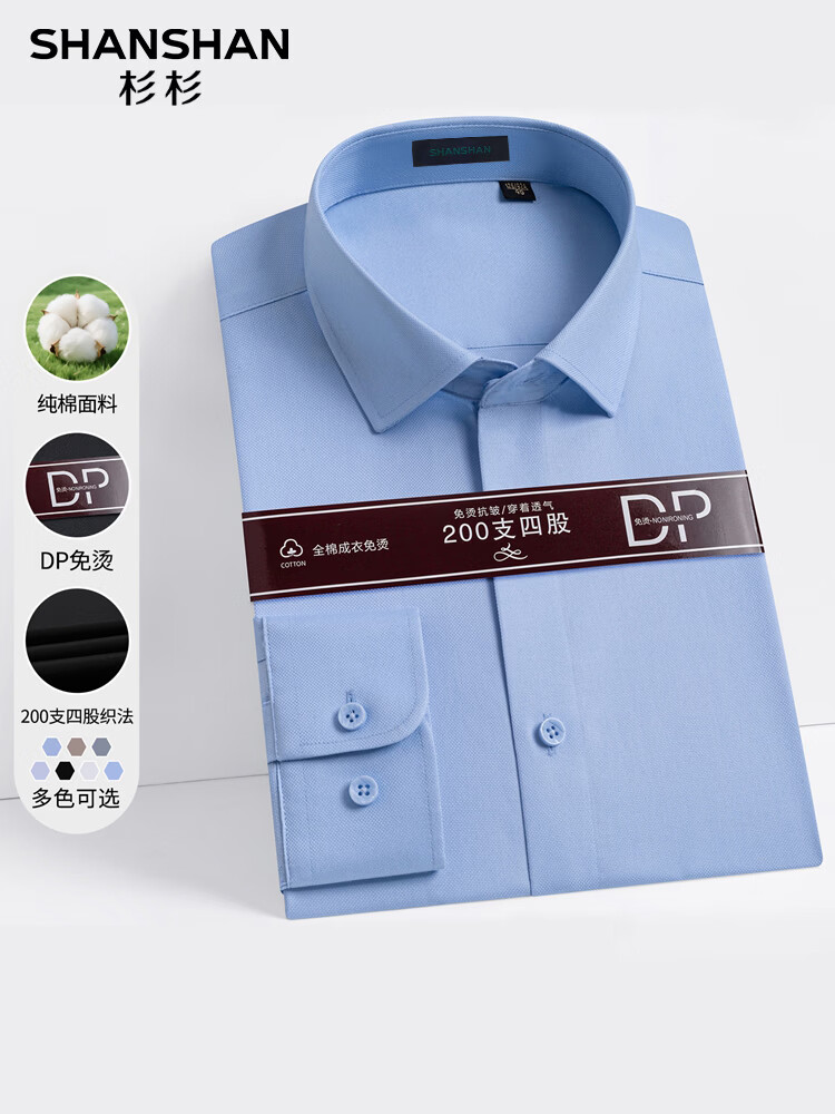 SHANSHAN杉杉【200DP免烫】男士长袖衬衫纯棉高端简约衬衣 蓝条 38