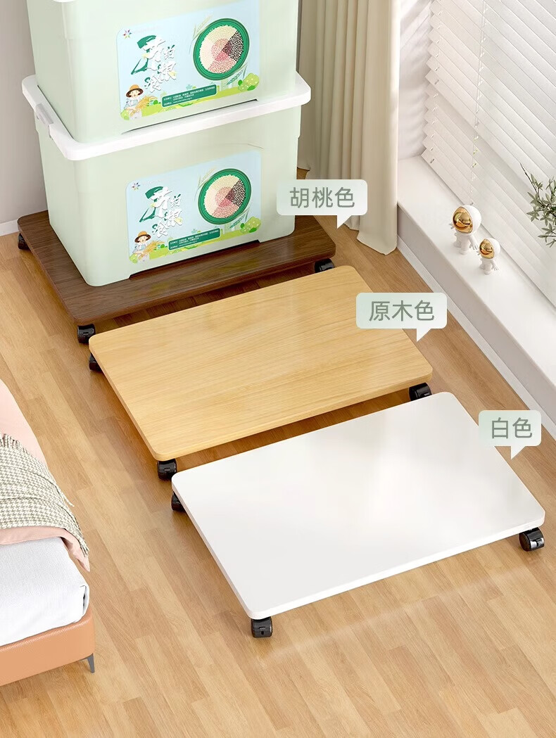 馨婺家收纳箱底座可移动整理箱置物板带滑轮托盘托架带轮落地家用置物架 胡桃色【30*35】加固加厚