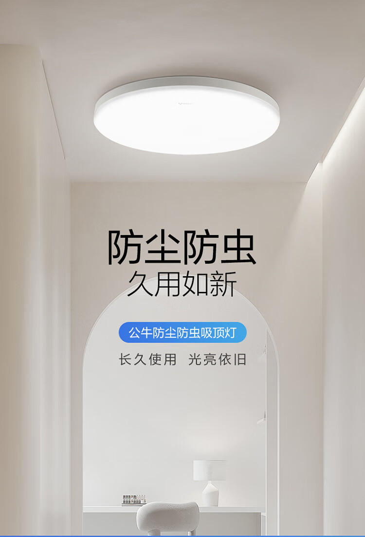 公牛(BULL)吸顶灯IP50防尘防虫卧室阳台过道灯MX-A024C-AS全白24W