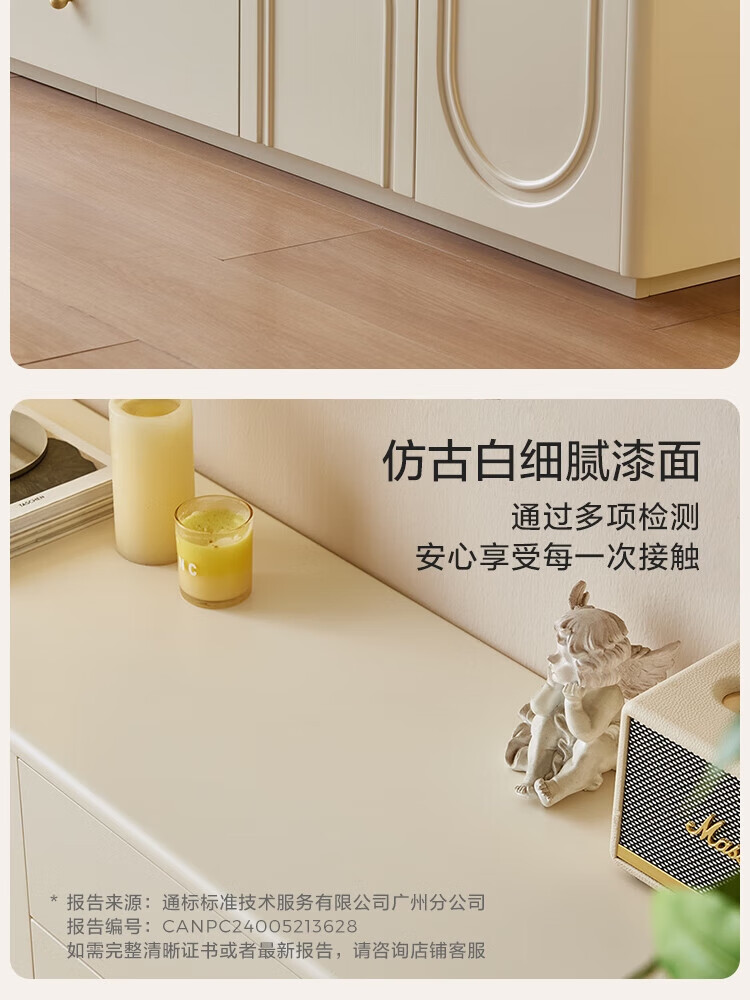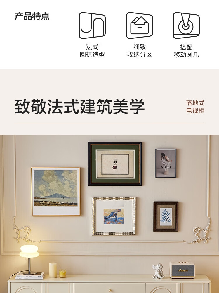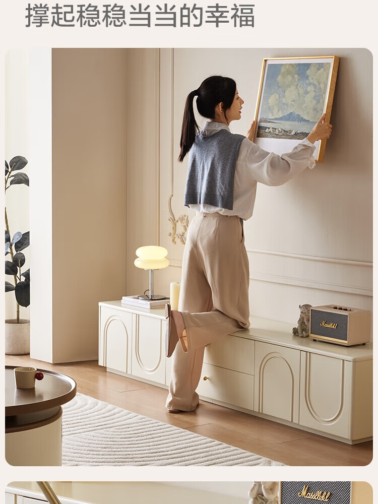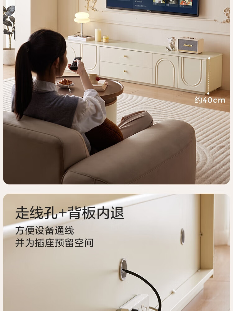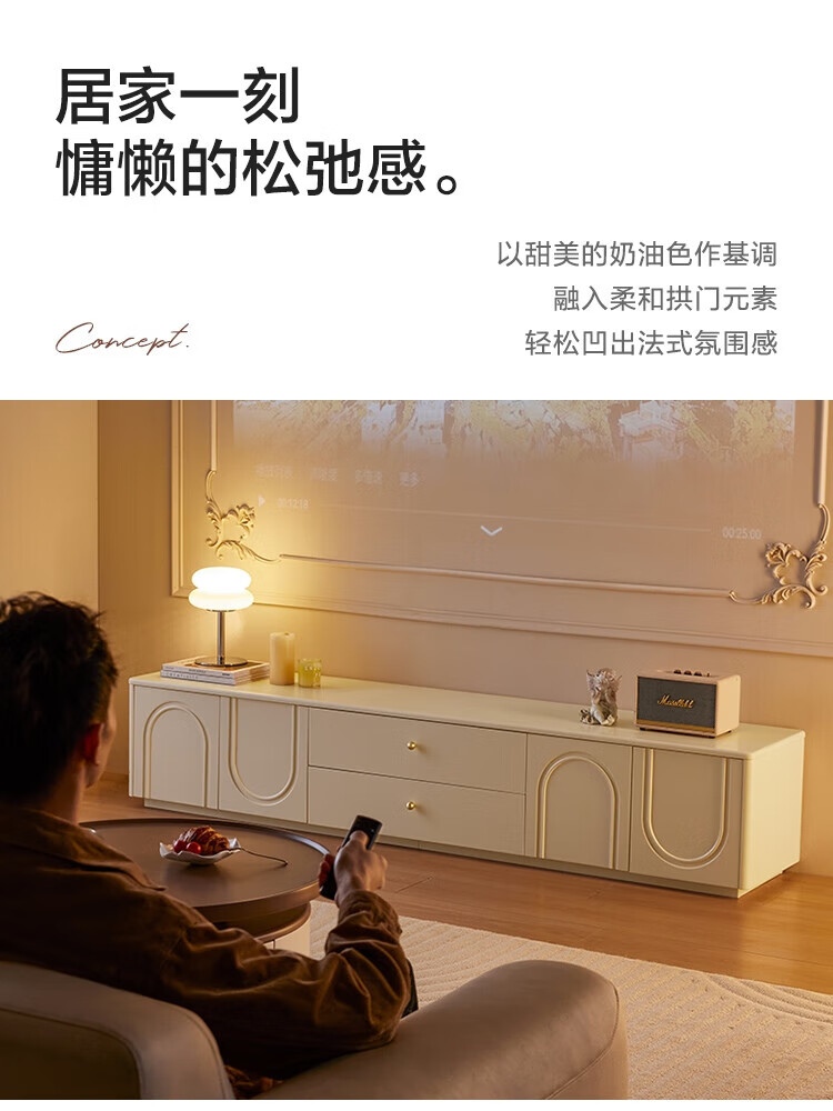 林氏家居法式奶油风圆角落地电视柜地柜客厅2025新款小户型储物柜US3L 【组合】电视柜+茶几