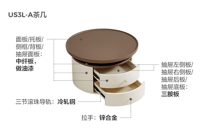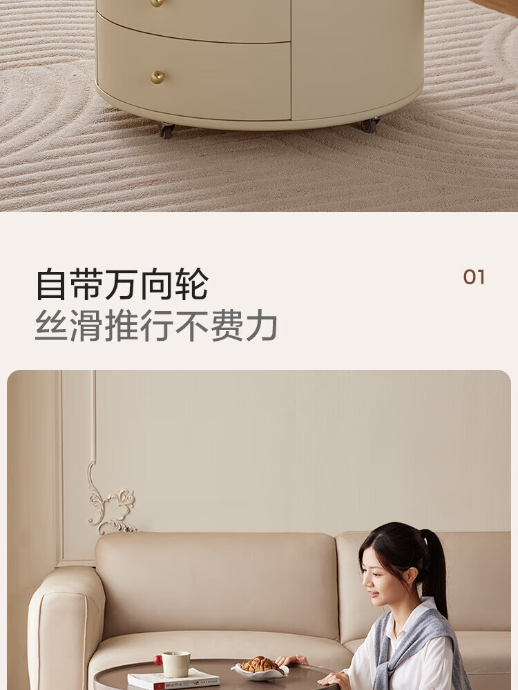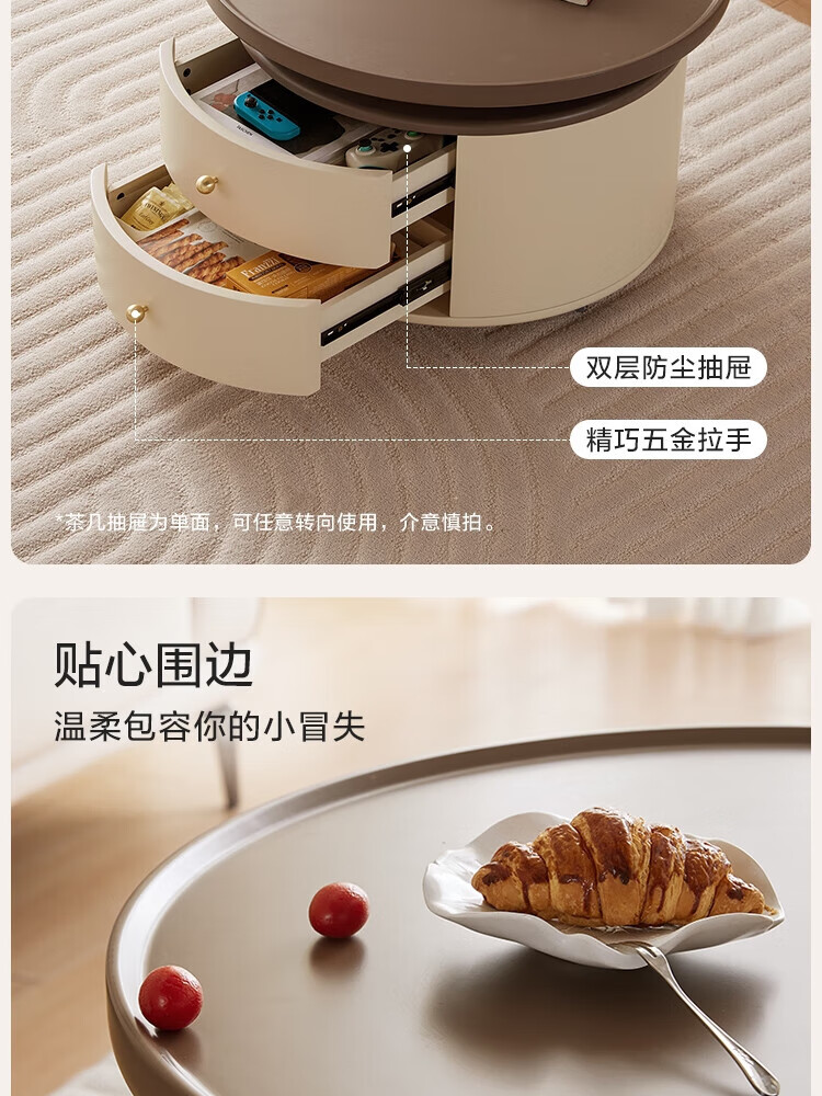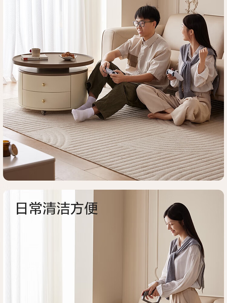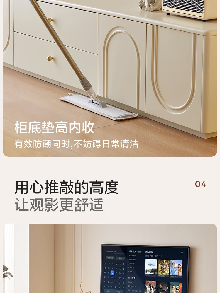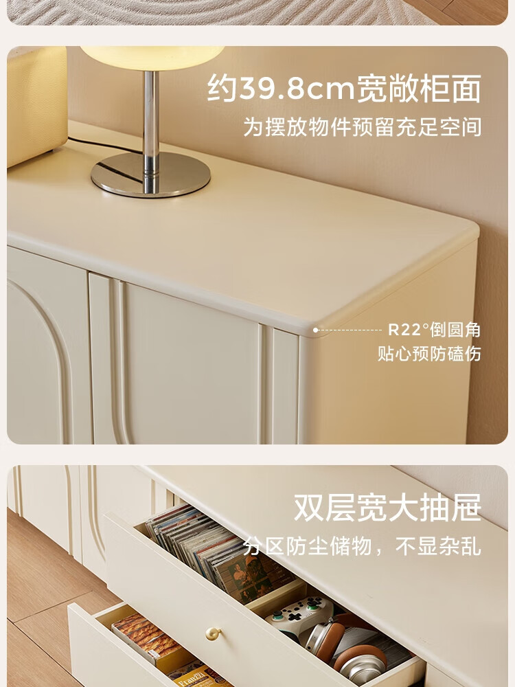 林氏家居法式奶油风圆角落地电视柜地柜客厅2025新款小户型储物柜US3L 【组合】电视柜+茶几