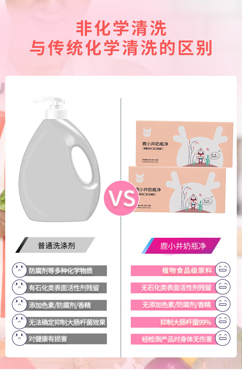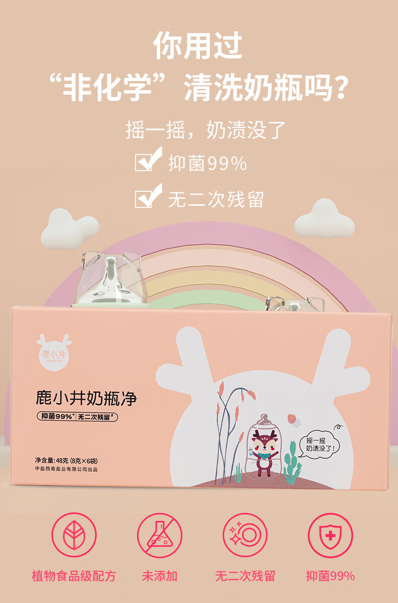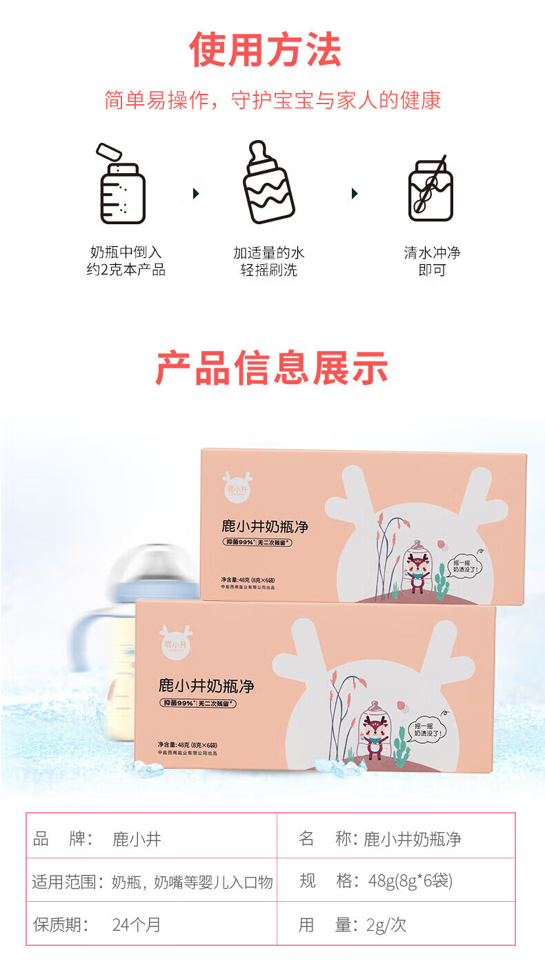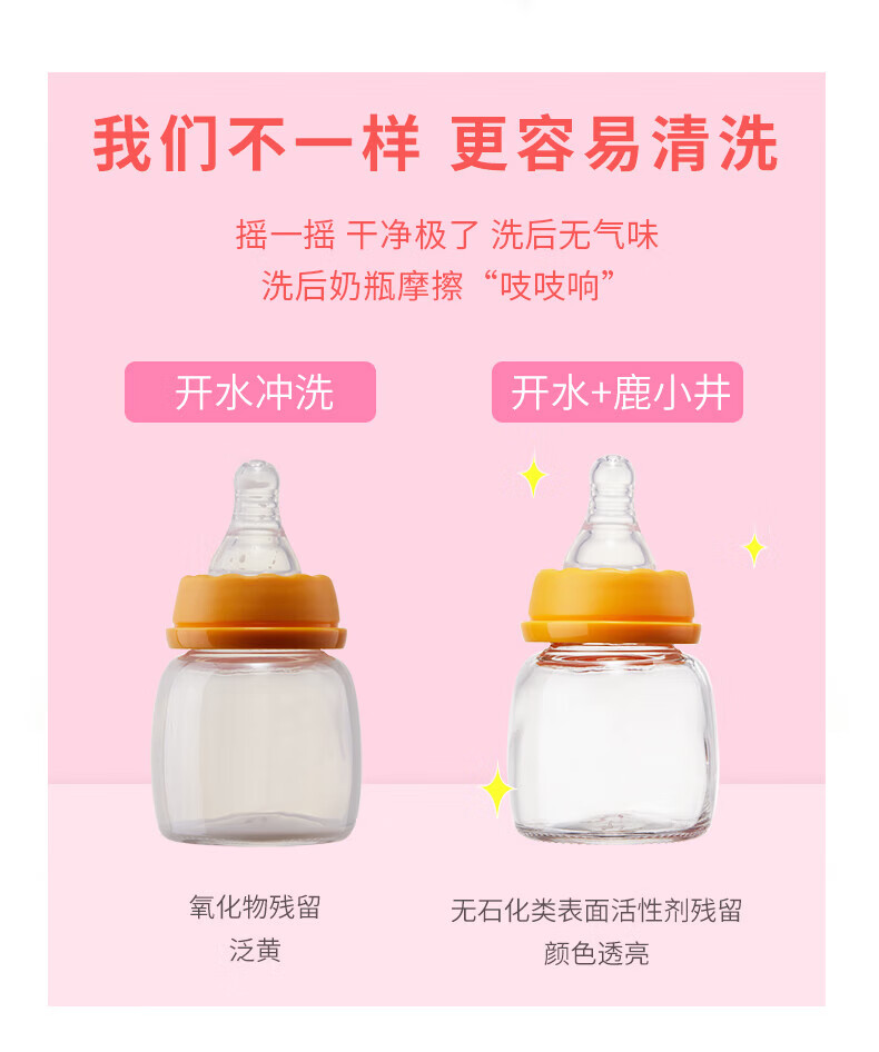 鹿小井奶瓶净婴儿奶瓶清洗剂 0化学添加 可洗宝宝餐具99%抑菌 48g*5袋
