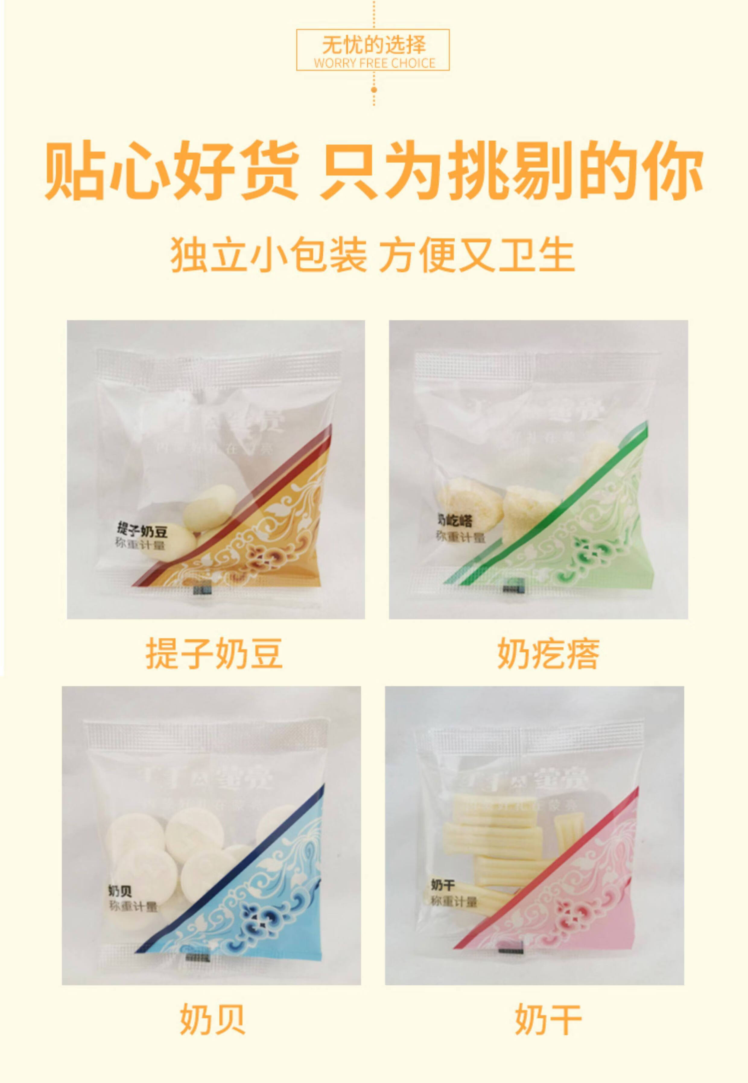 蒙亮内蒙古特产蒙亮奶疙瘩草原奶干牛奶提子豆奶贝组合装儿童零食小吃 牧享优味(4种组合装)500g