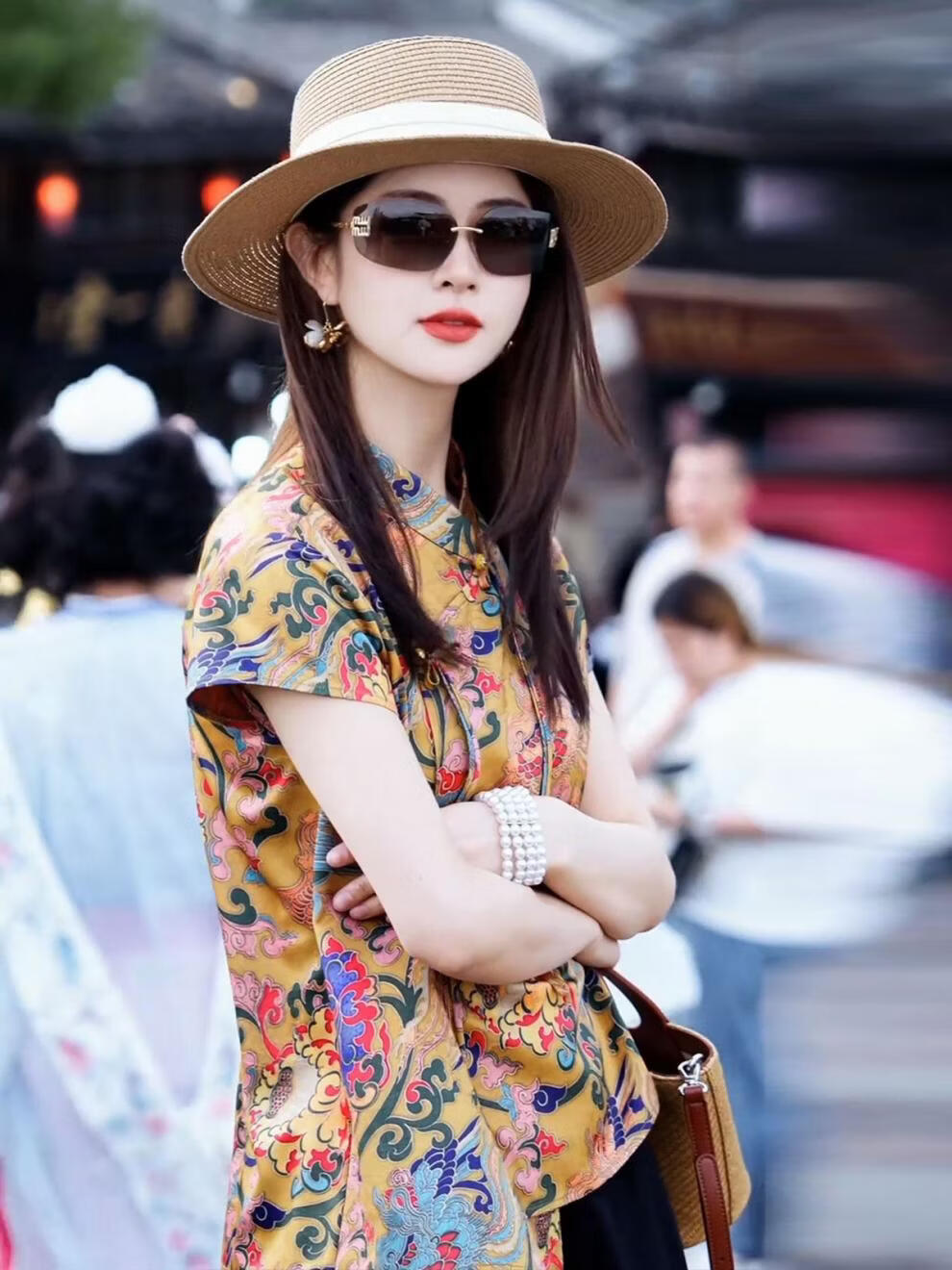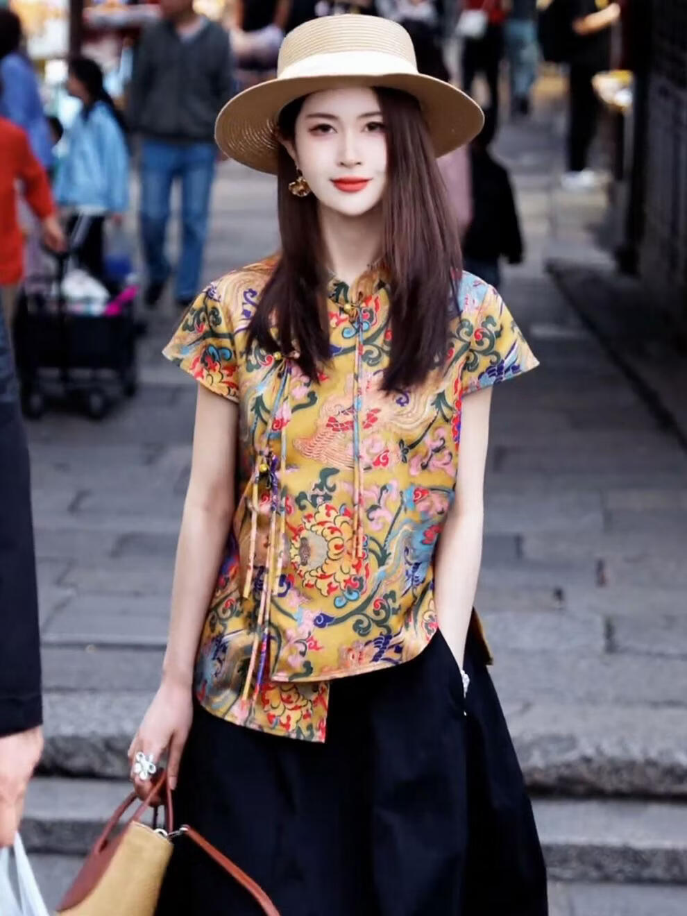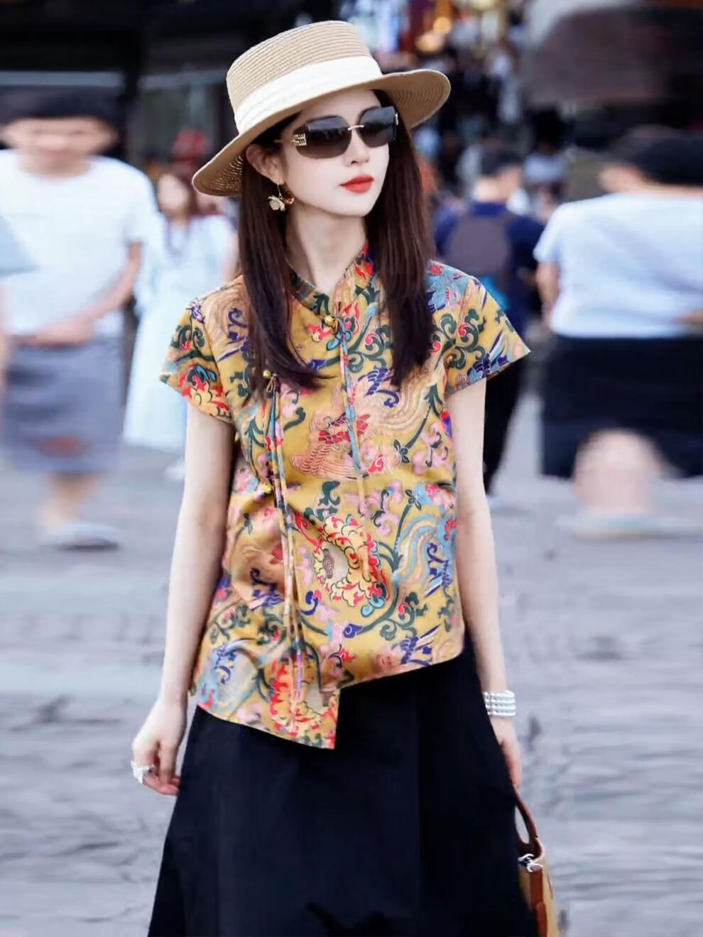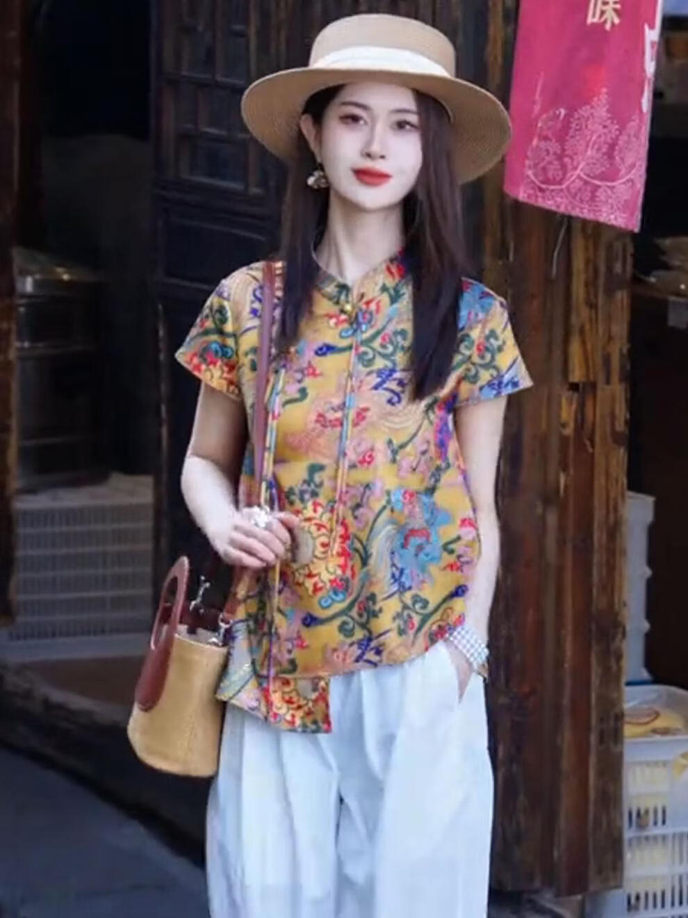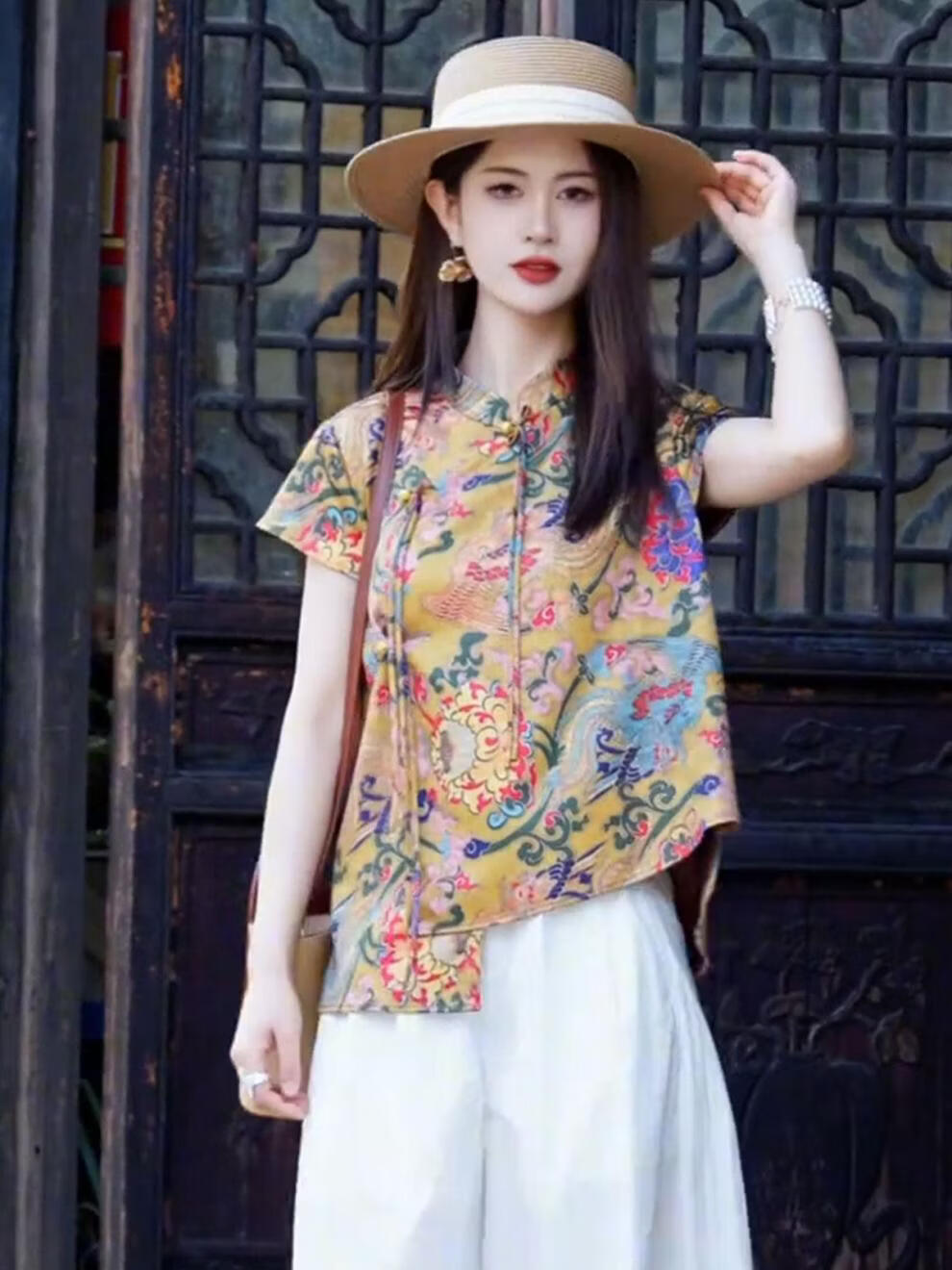 MODX新中式国风女装2026新款小衫设计感小众短袖印花衬衫盘扣立领上衣 花色上衣 S 【建议 80-95斤】