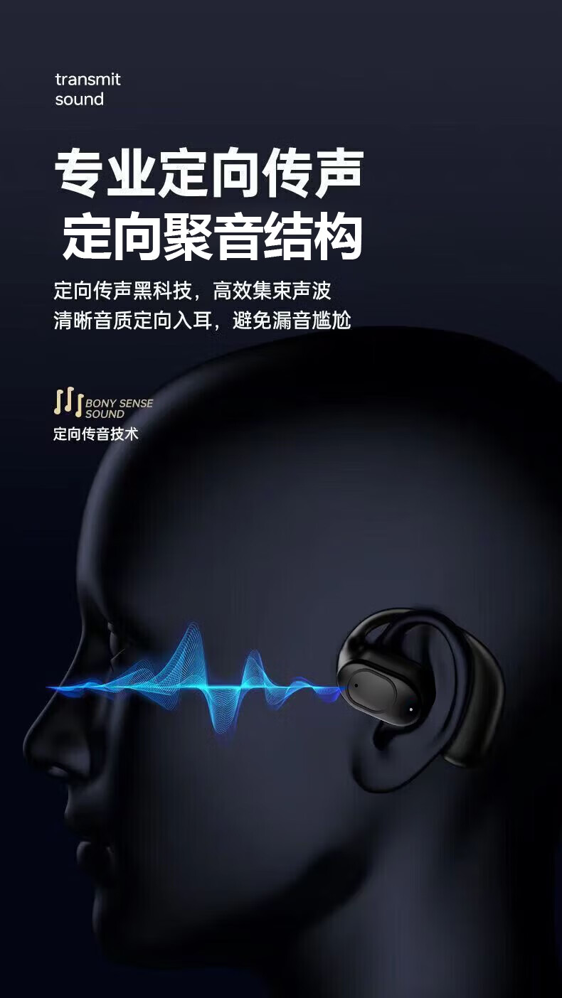XUTING【柏林之声】蓝牙耳机挂耳式无线耳夹跑步适用苹果华为vivo小米骨传导概念超长续航大电量超强音质 【HiFi音质+超长待机】极夜黑 1年换新+充电线+单耳机+说明书