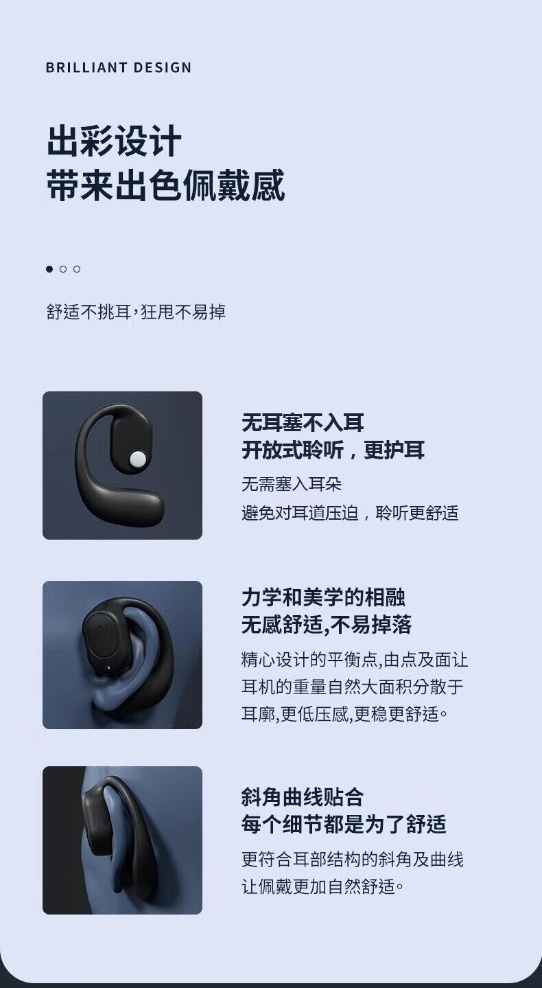 纽曼(Newmine)【热销200W+丨旗舰之音】蓝牙耳机开放式耳夹骨传导 真无线不入耳运动跑步狂甩不掉通话降噪长续航 【舒适佩戴感丨久戴不痛丨蓝牙5.4】无尽黑