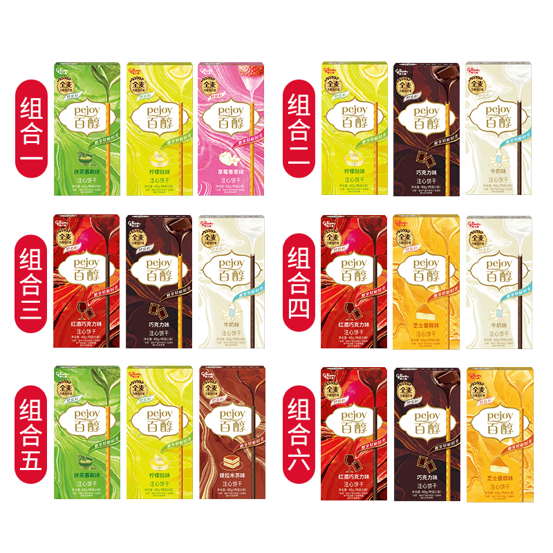 格力高(glico)百醇系列 组合装注心饼干棒48g*3盒 饼干休闲零食礼物