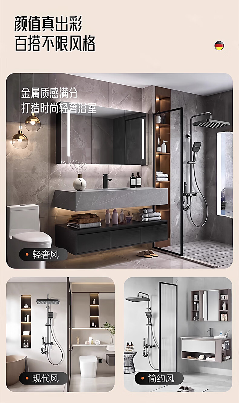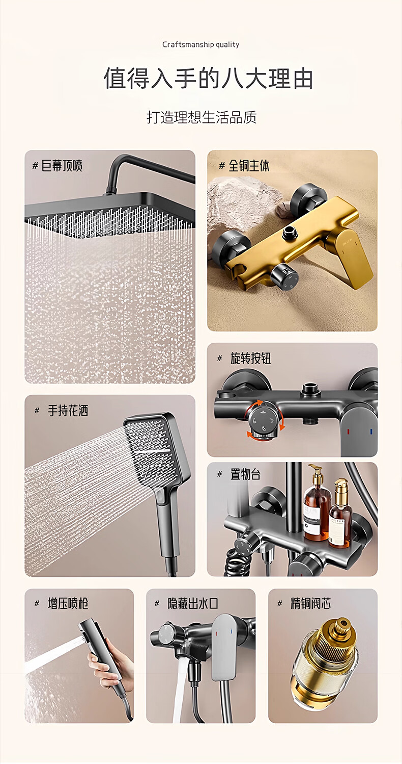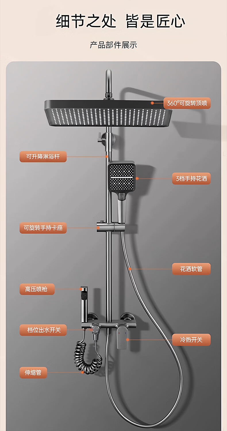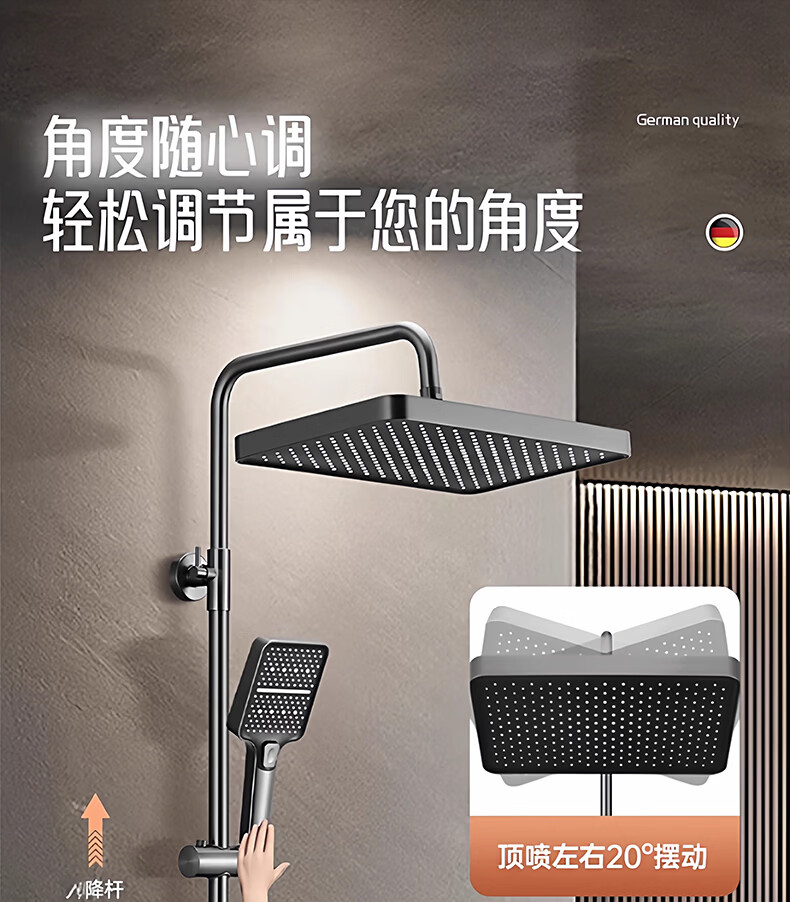 GuGuGo【德国】花洒淋浴套装全铜花洒套装一体上门安装浴室卫浴花洒全套 免费上门安装【全铜主体】方形花洒套装 免费上门安装丨巨幕增压顶喷