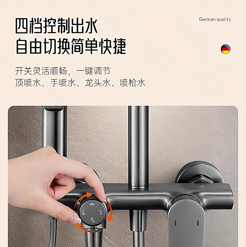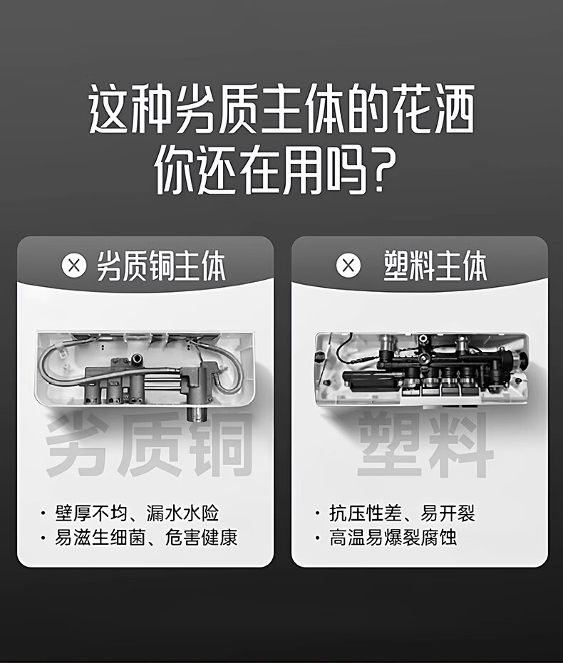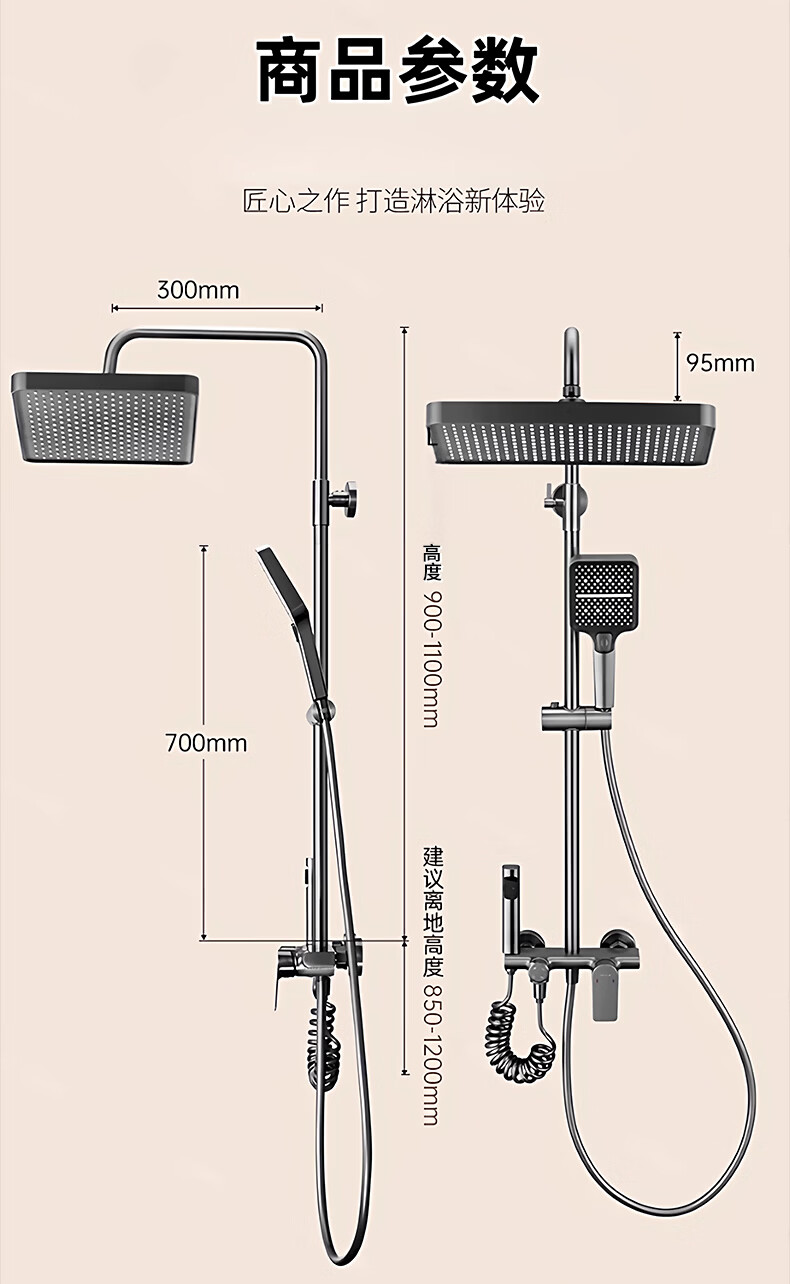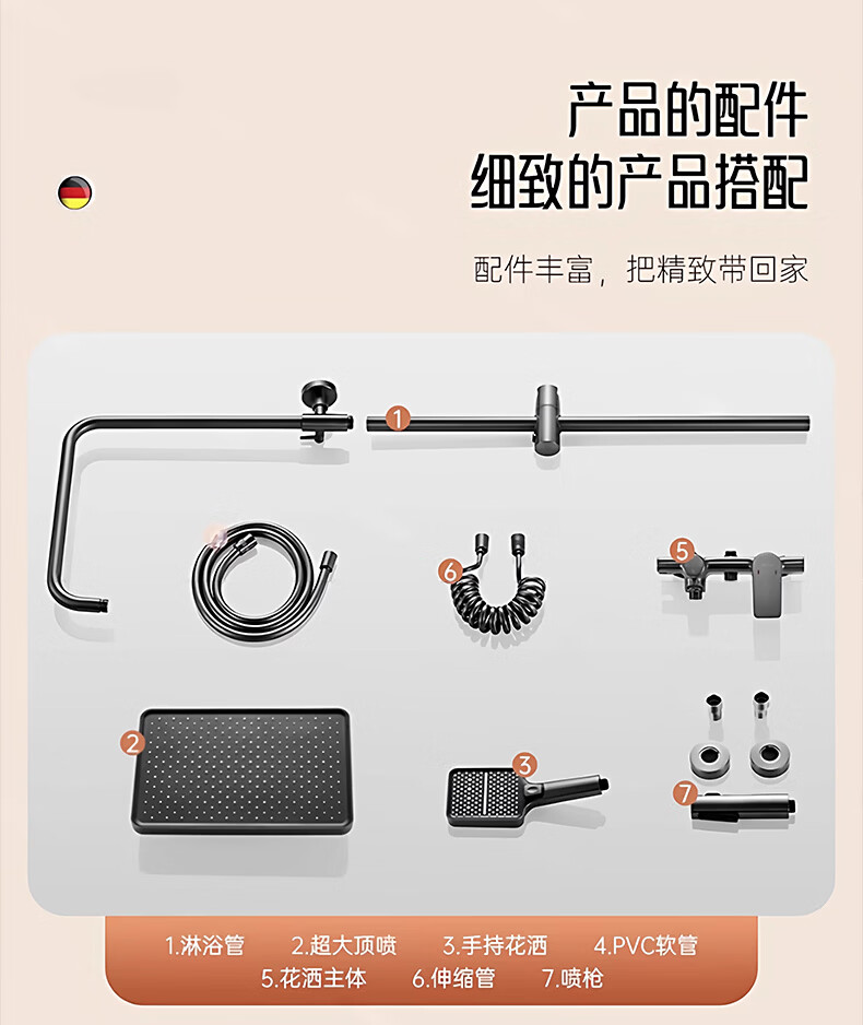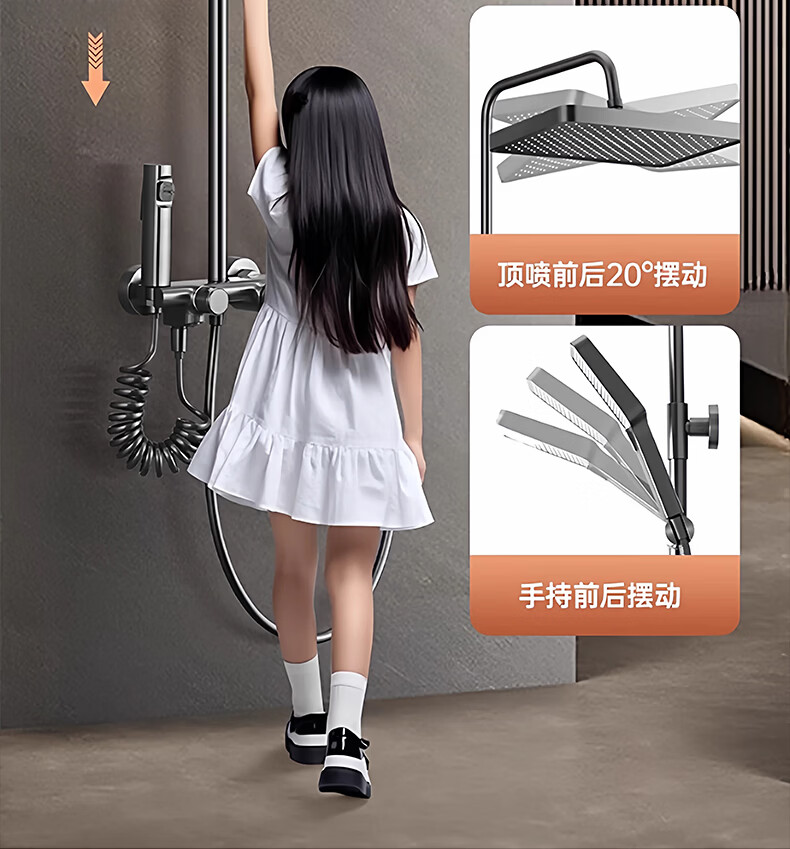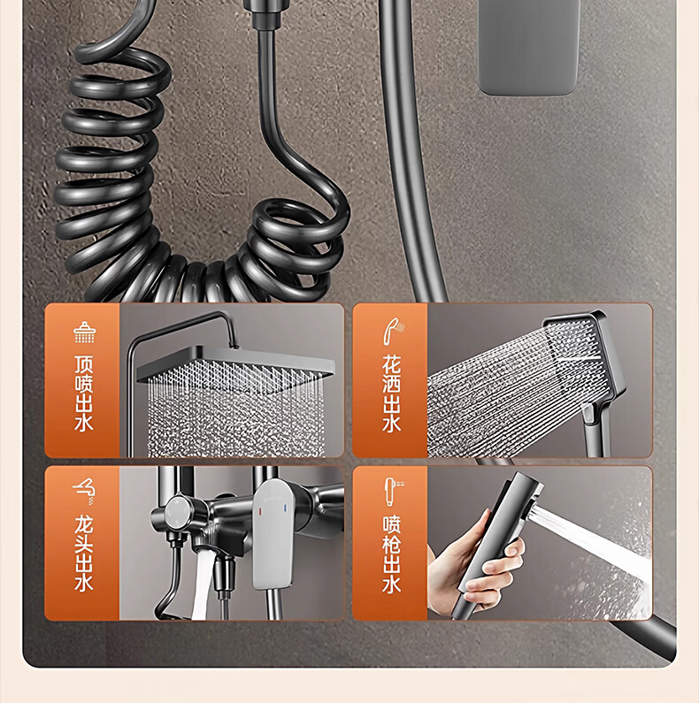 GuGuGo【德国】花洒淋浴套装全铜花洒套装一体上门安装浴室卫浴花洒全套 免费上门安装【全铜主体】方形花洒套装 免费上门安装丨巨幕增压顶喷