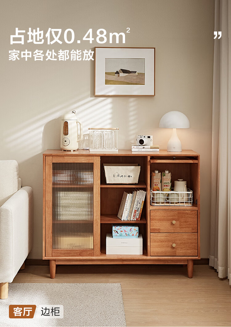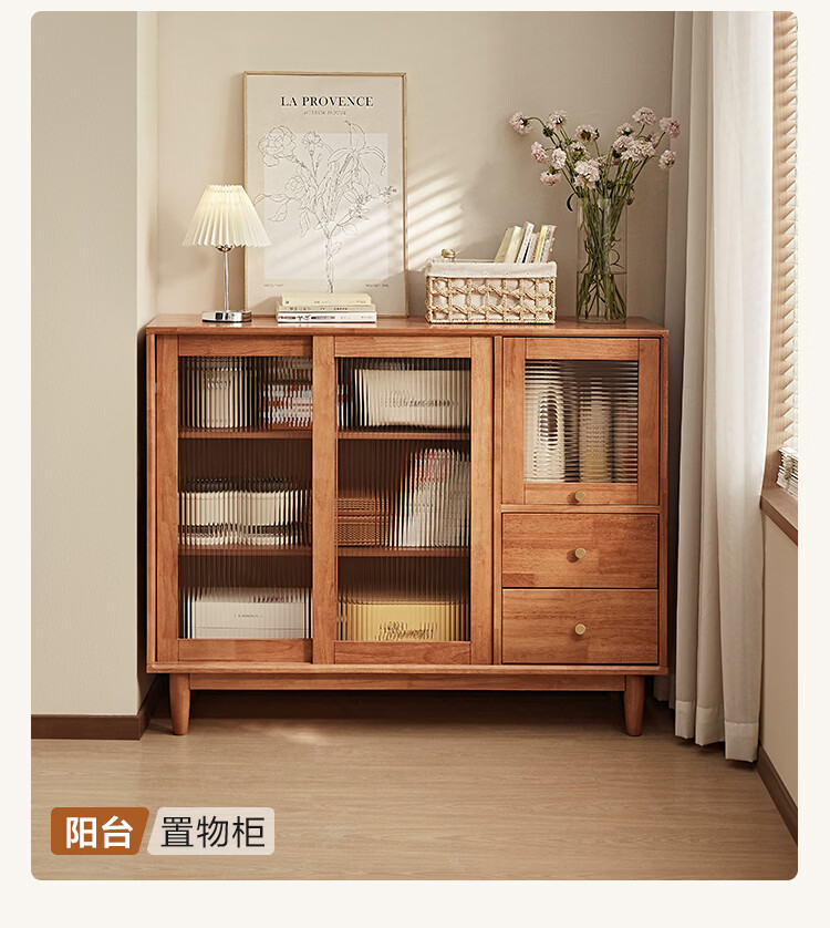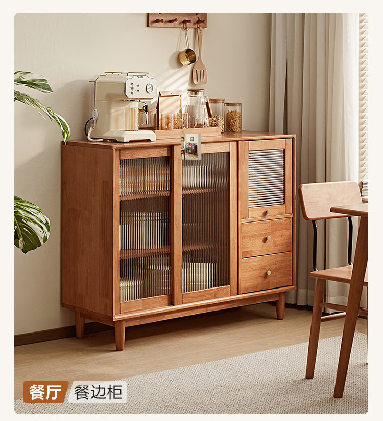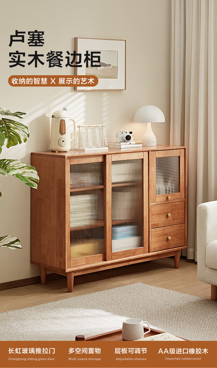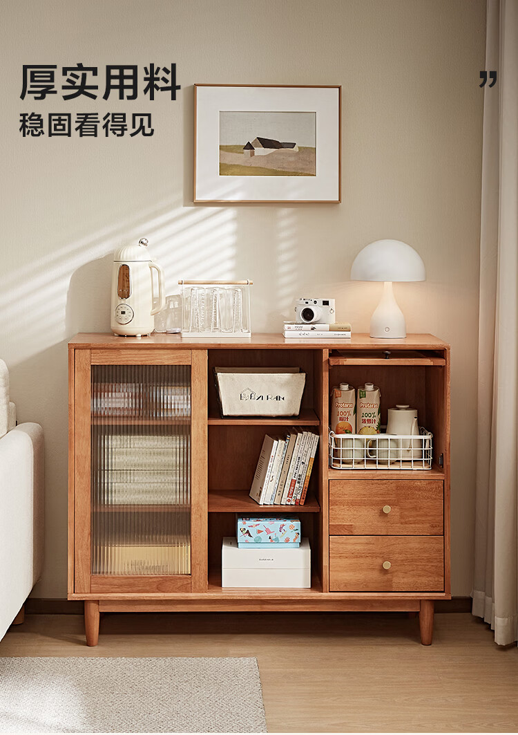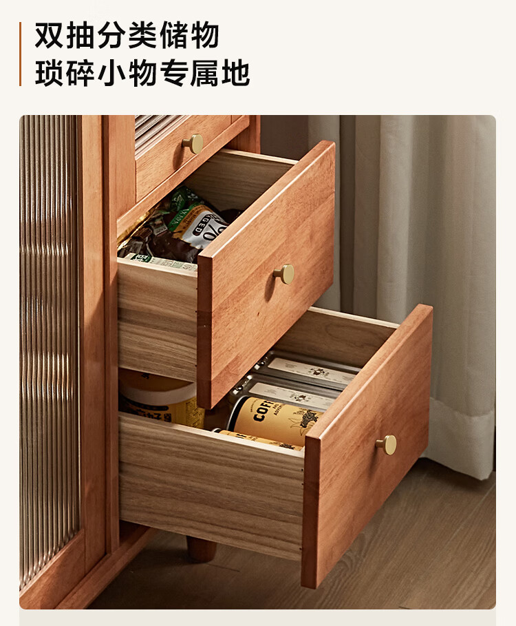全友家居原木风实木餐边柜家用玻璃展示柜收纳储物小柜子沙发边柜KS 【樱桃木色|橡胶木】双门款餐边柜