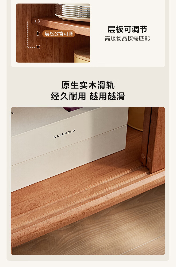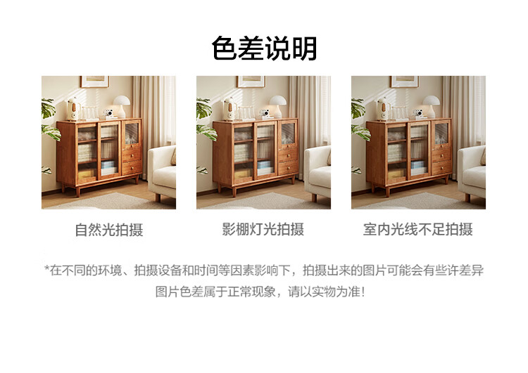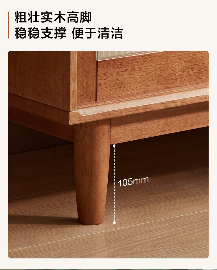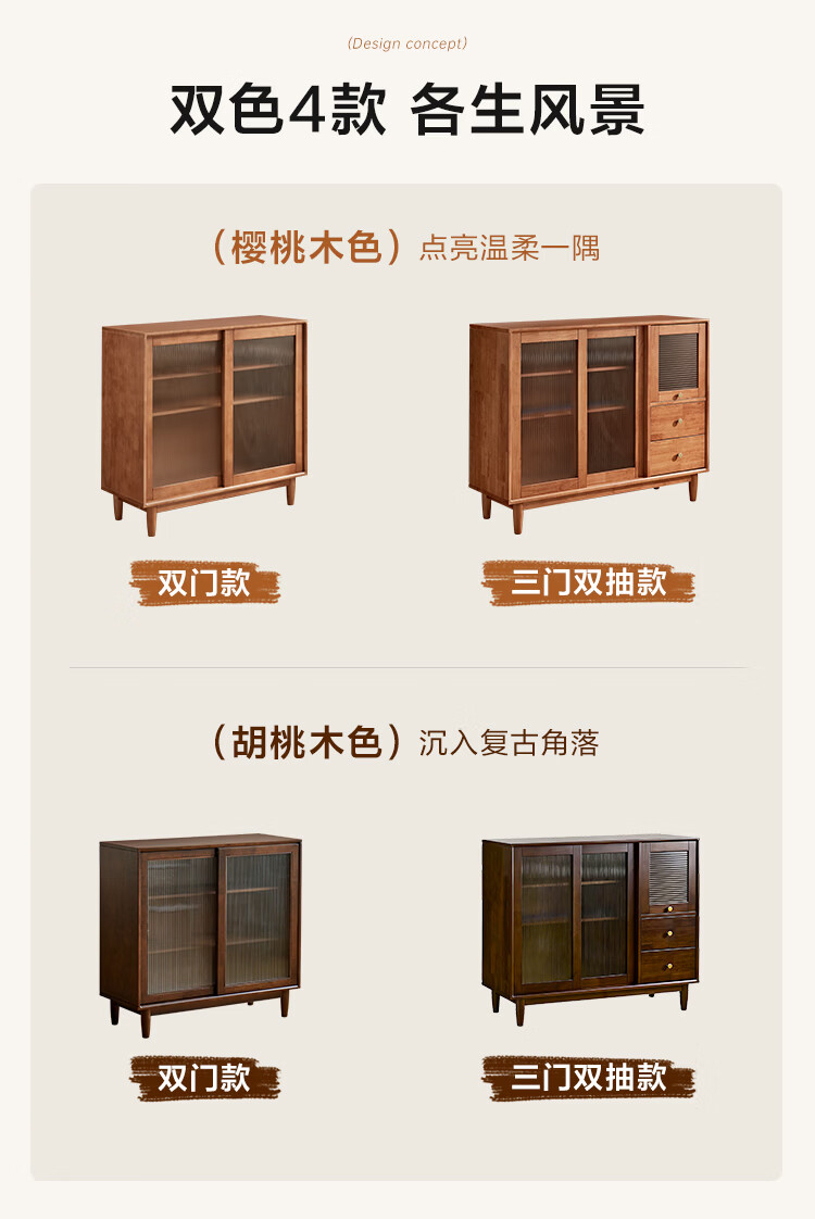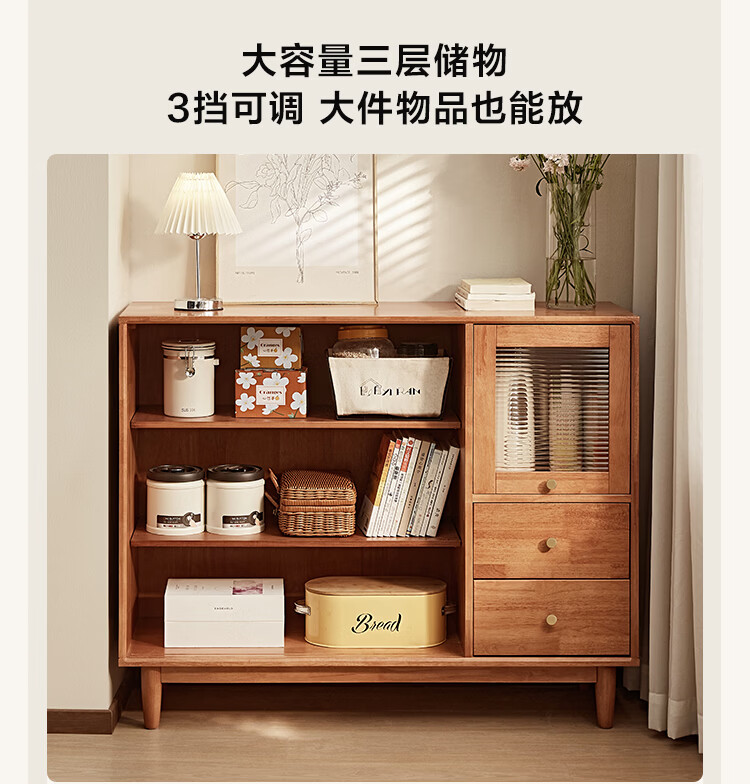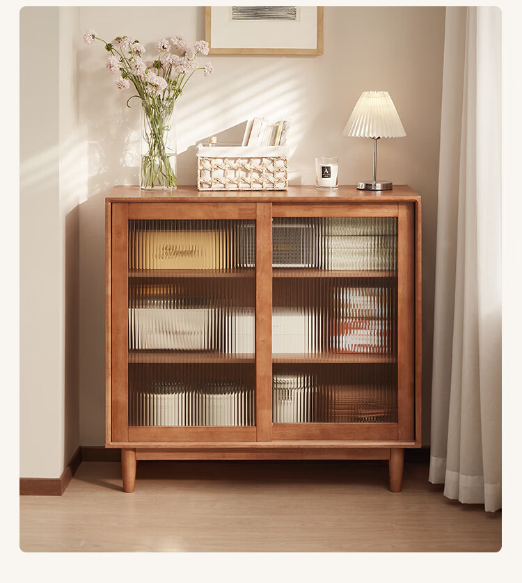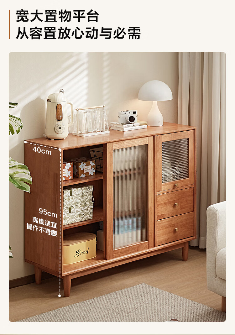 全友家居原木风实木餐边柜家用玻璃展示柜收纳储物小柜子沙发边柜KS 【樱桃木色|橡胶木】双门款餐边柜