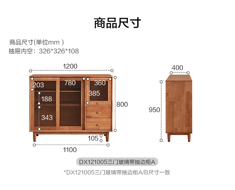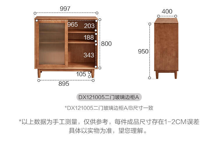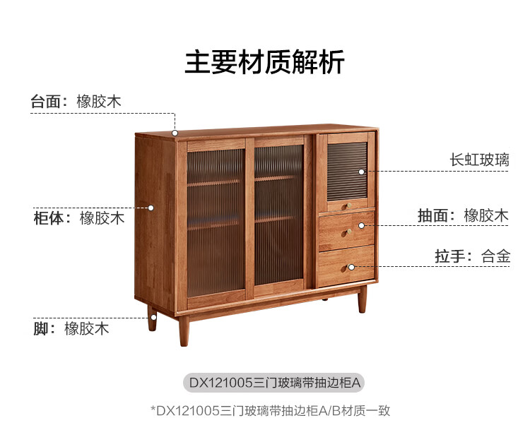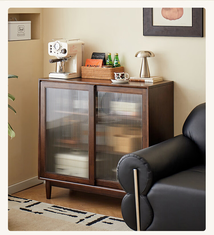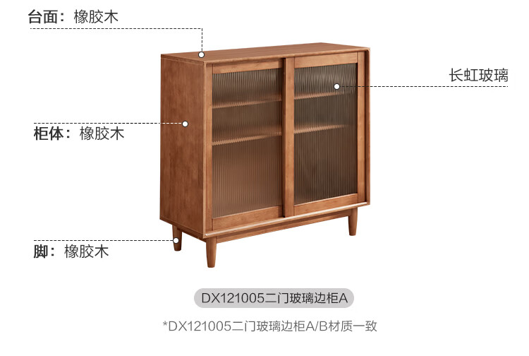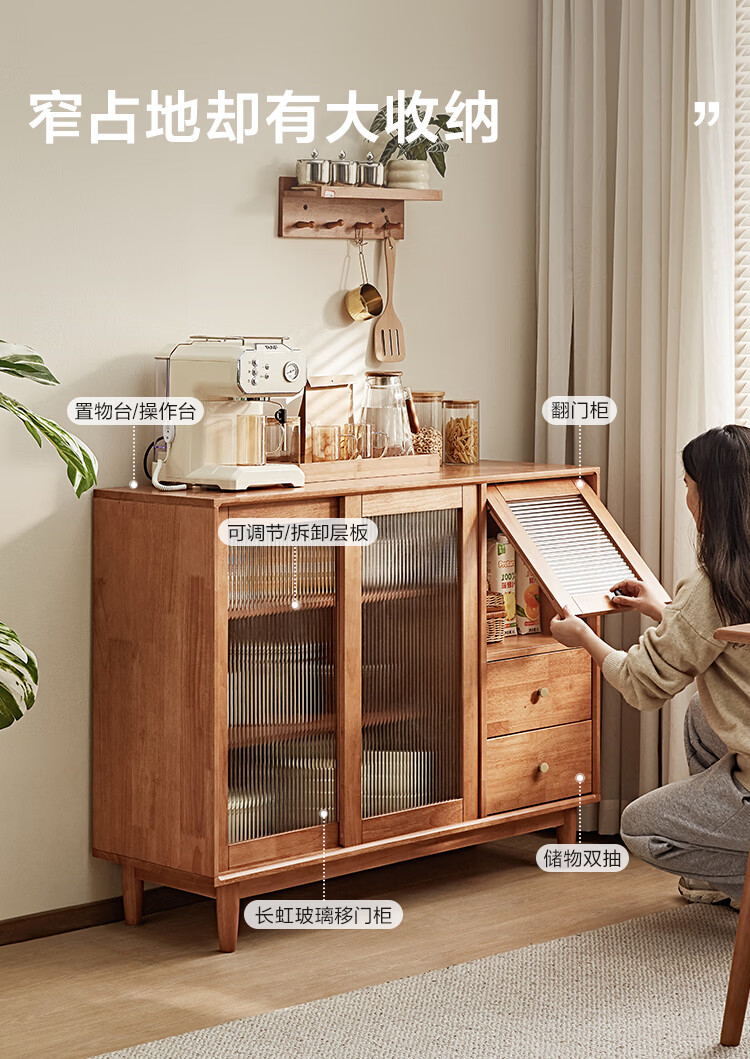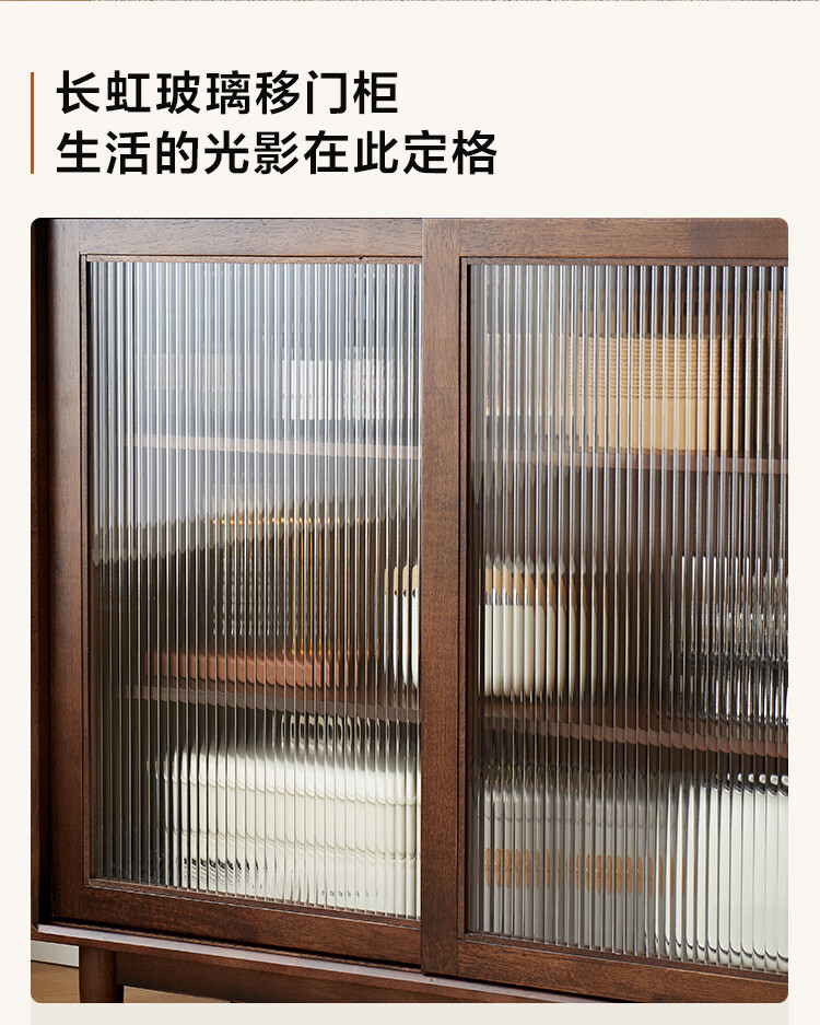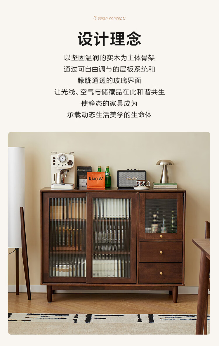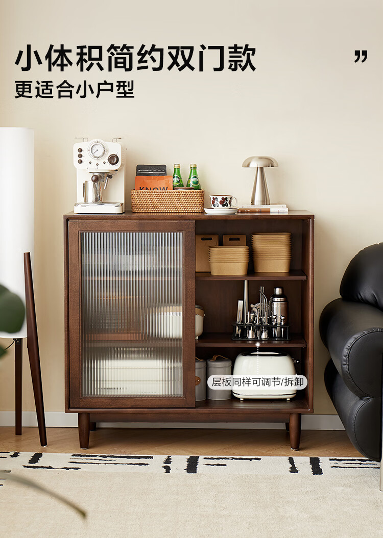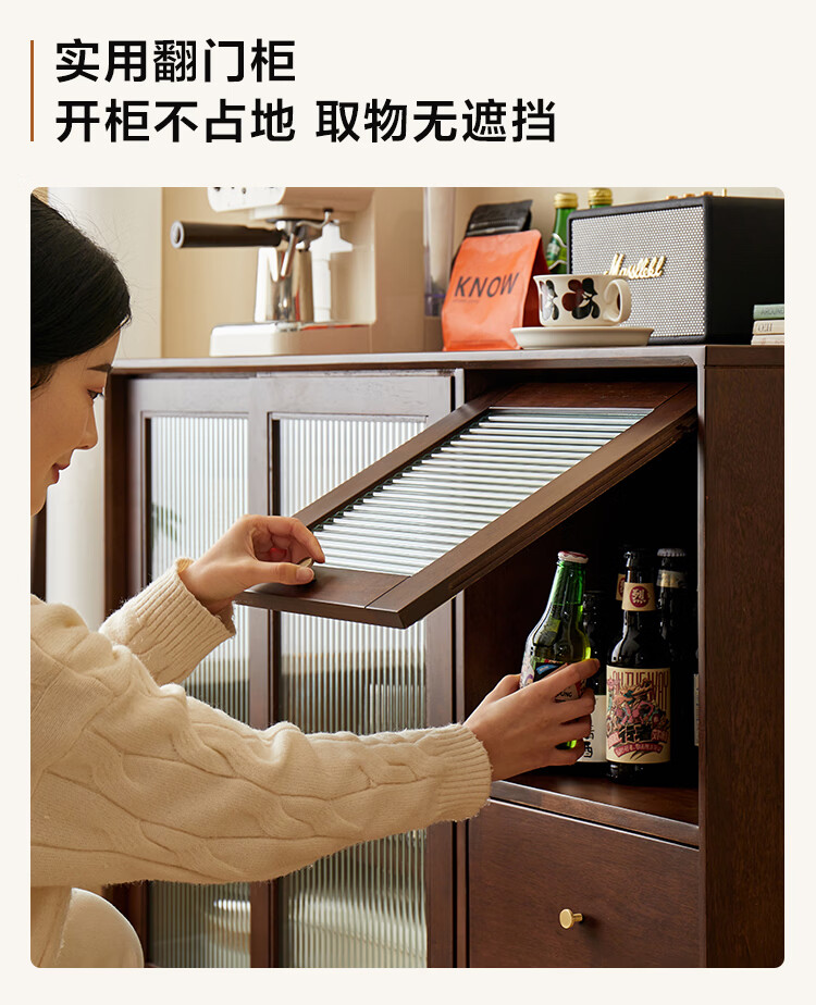 全友家居原木风实木餐边柜家用玻璃展示柜收纳储物小柜子沙发边柜KS 【胡桃木色|橡胶木】双门款餐边柜