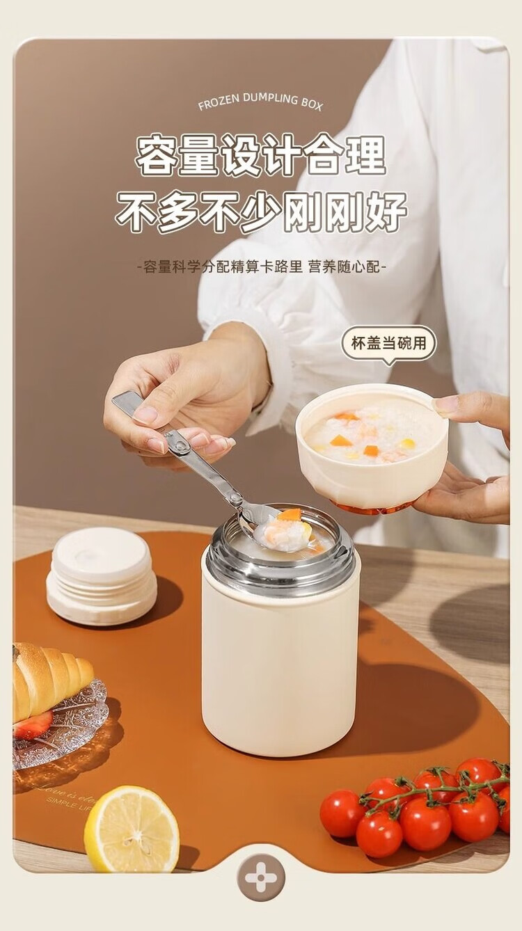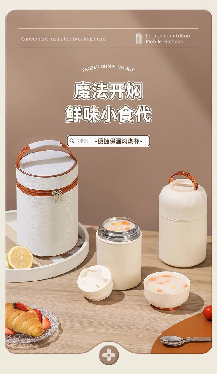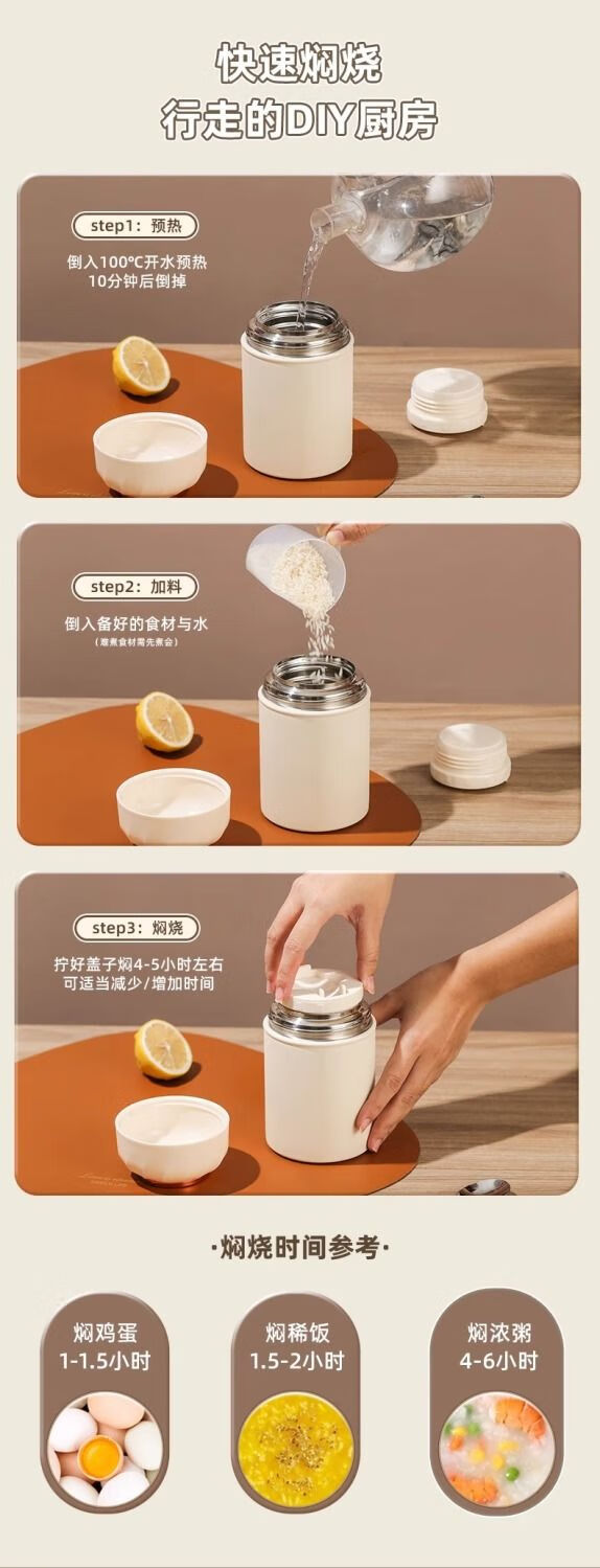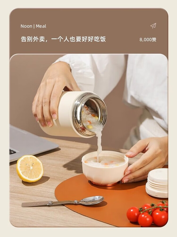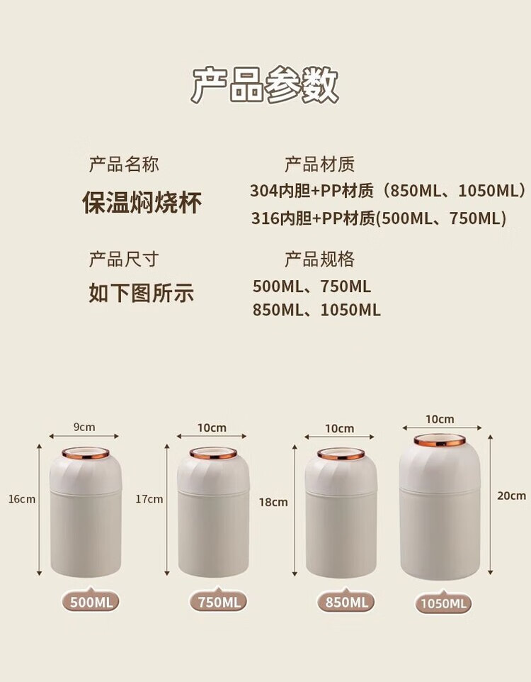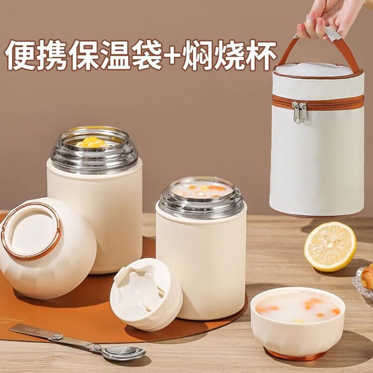 花沐禧316不锈钢焖烧杯女生生理期专用保温焖烧壶带饭盒上班族便当餐盒 不锈钢内胆【奶油白】带饭神器 850ML【304内胆】送餐勺