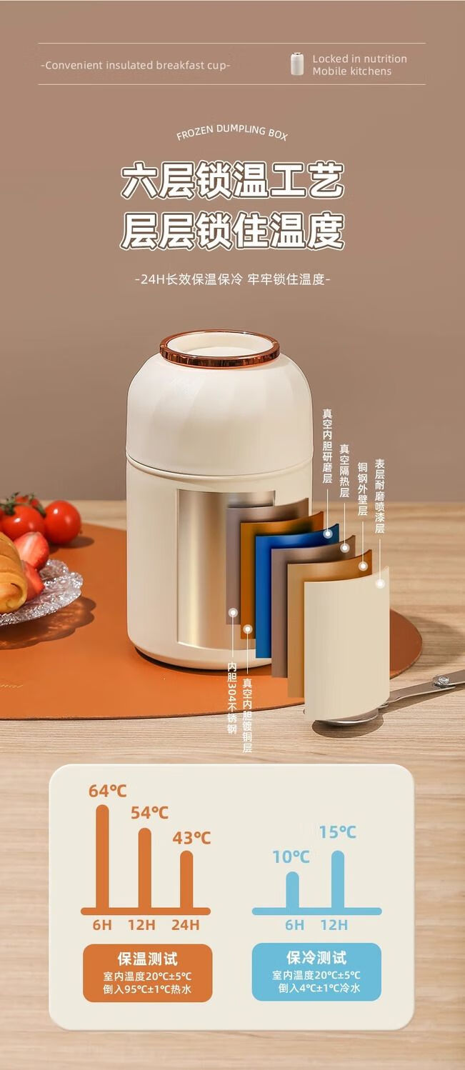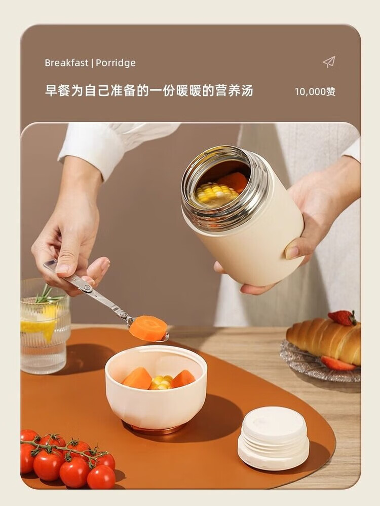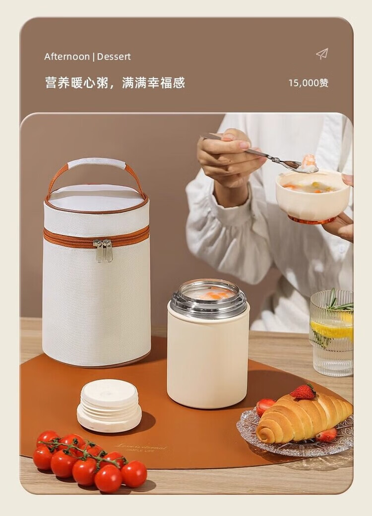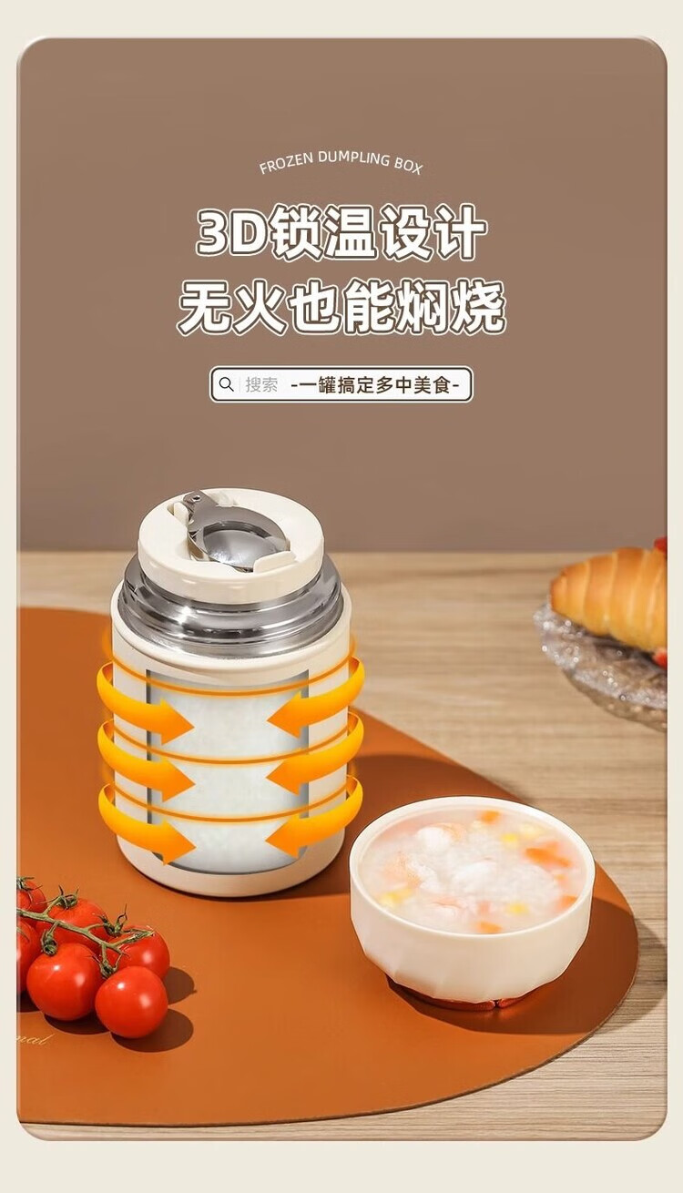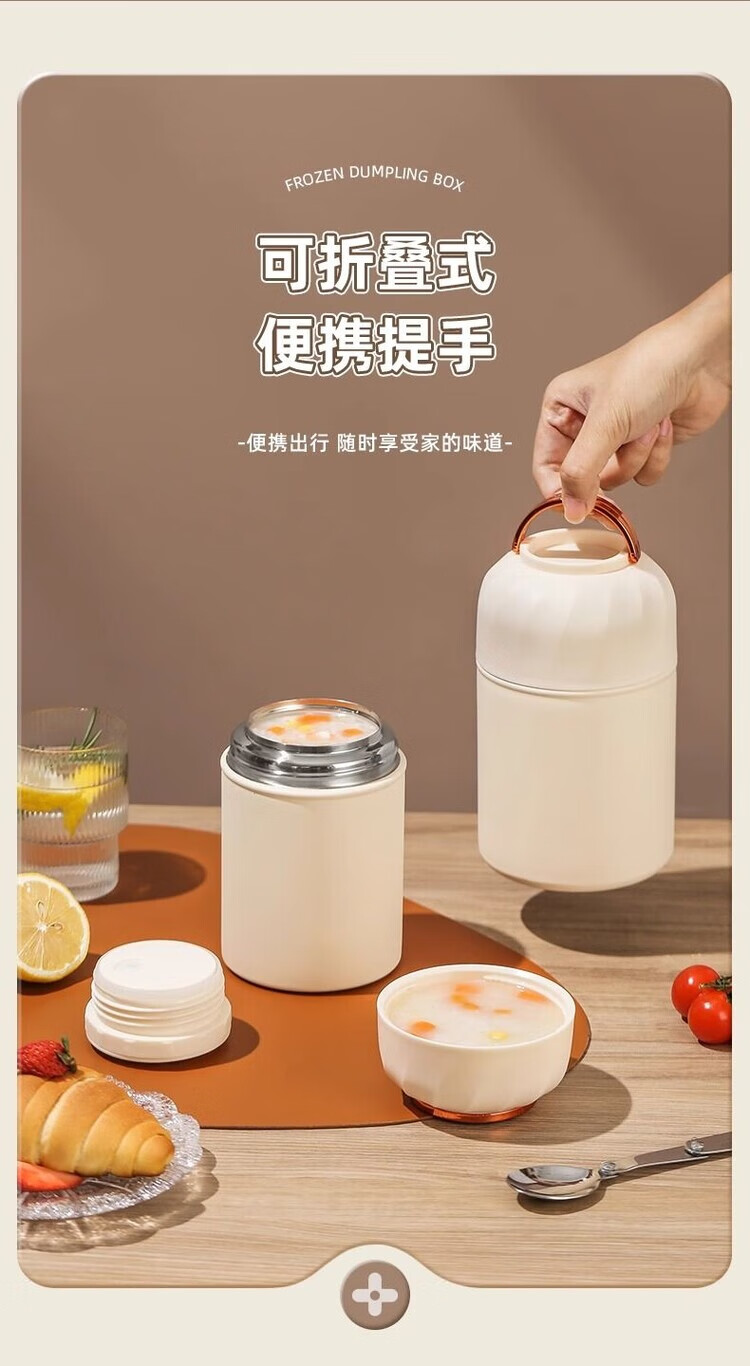 花沐禧316不锈钢焖烧杯女生生理期专用保温焖烧壶带饭盒上班族便当餐盒 不锈钢内胆【奶油白】带饭神器 850ML【304内胆】送餐勺