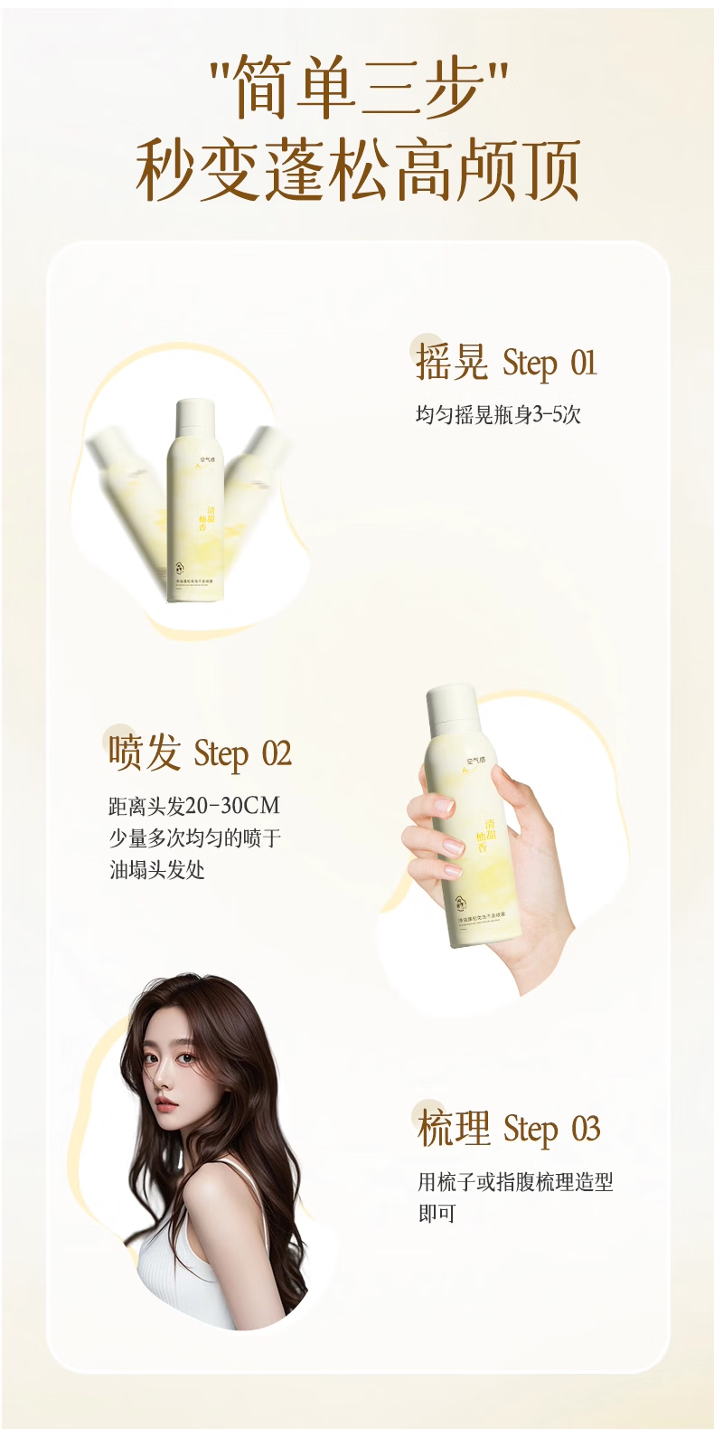 淘米匠免洗干发喷雾头发蓬松持久定型去油头救急神器干发喷雾柚香200ml