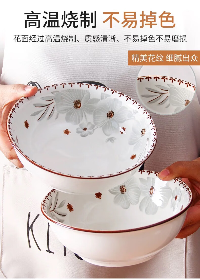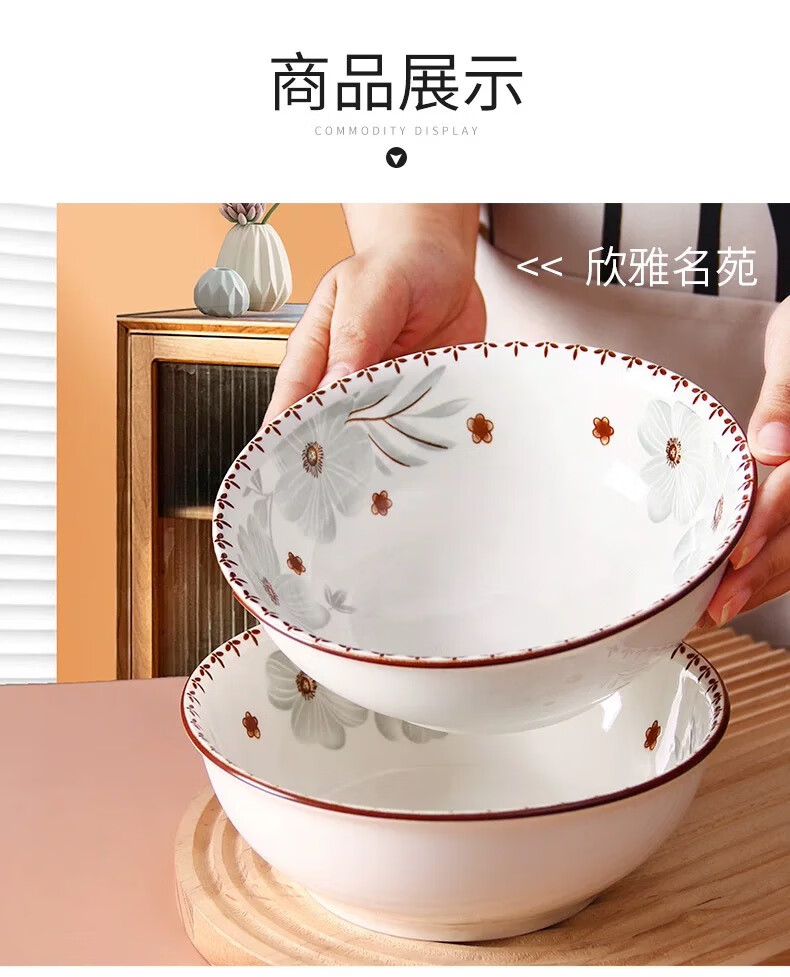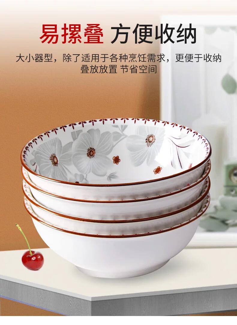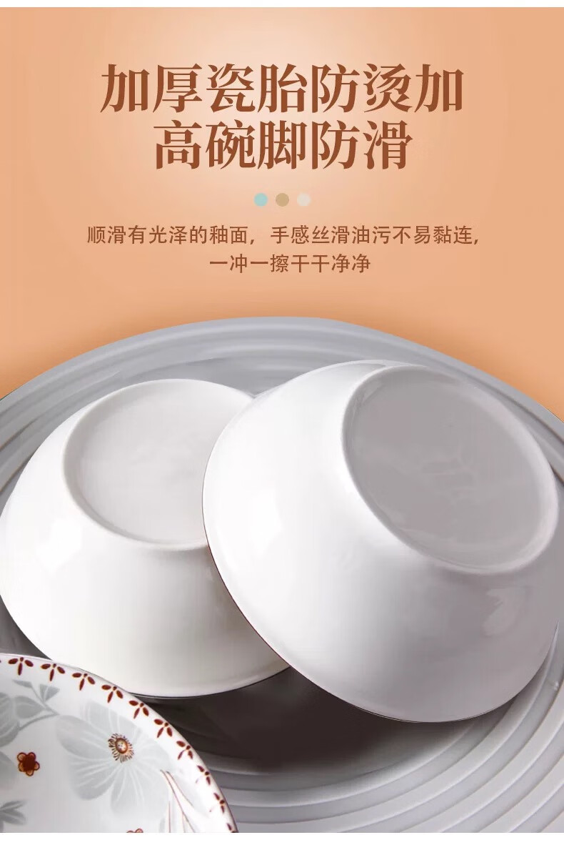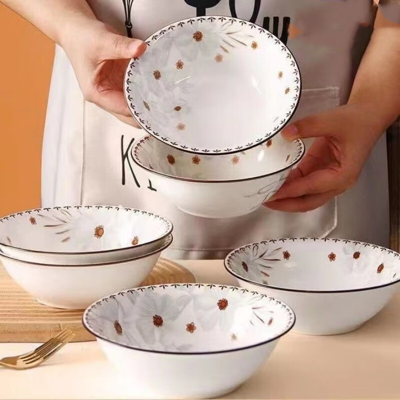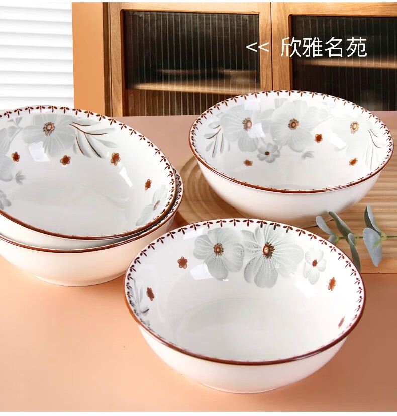 家用陶瓷新雅名苑陶瓷斗笠碗碟套装简约中式防摔餐具创意碗 6英寸 4个