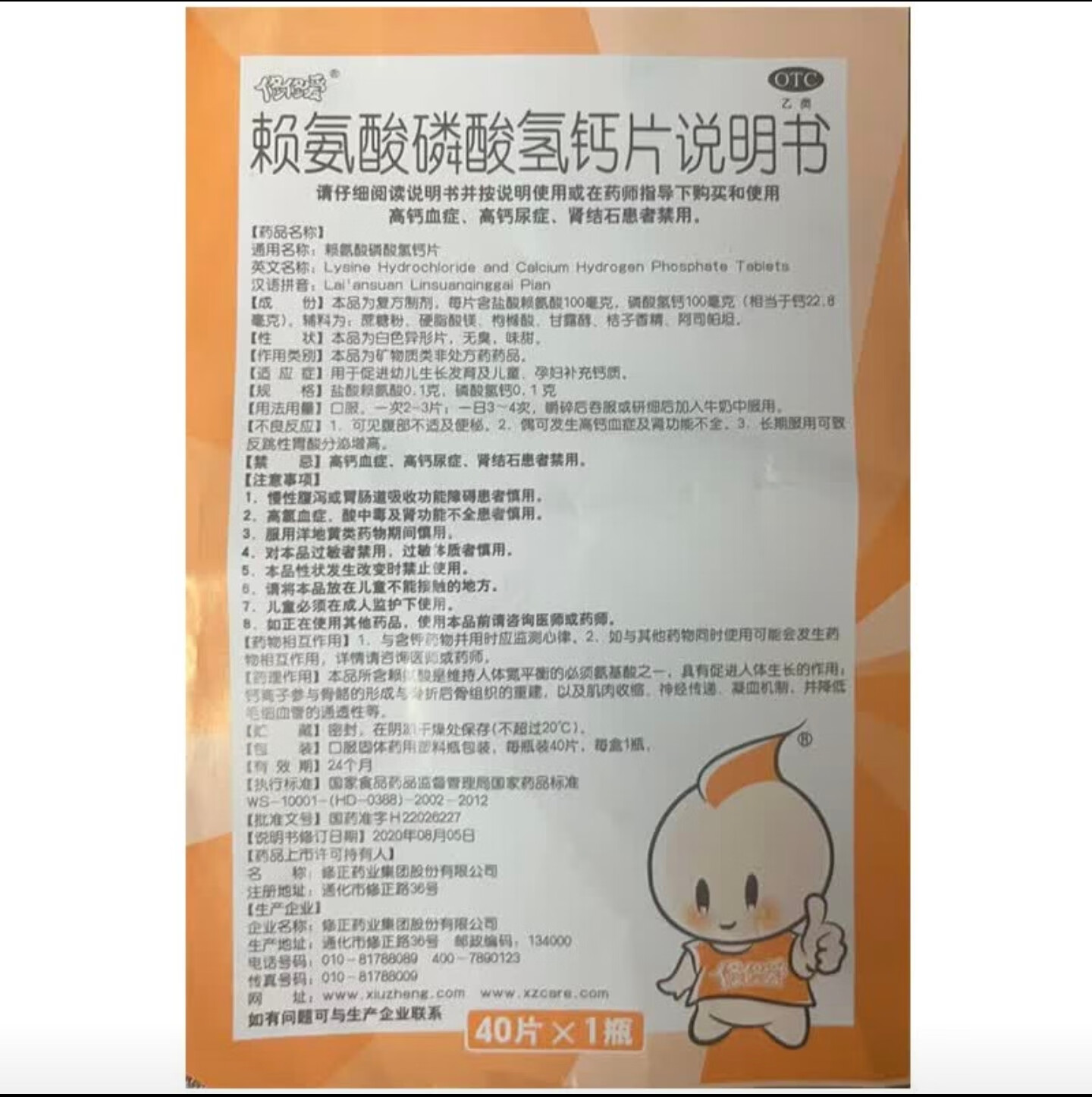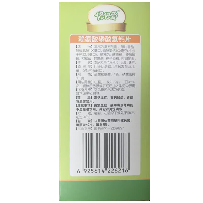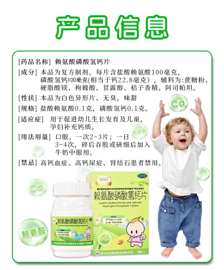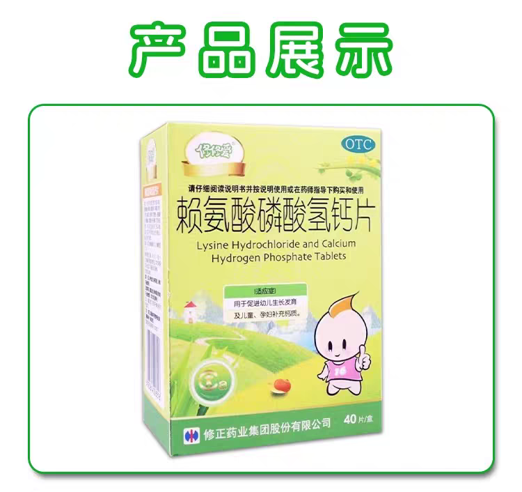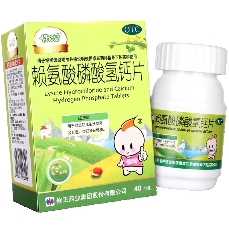 修正 修修爱 赖氨酸磷酸氢钙片 0.1g:0.1g*40片/盒促进幼儿生长发育儿童孕妇补钙