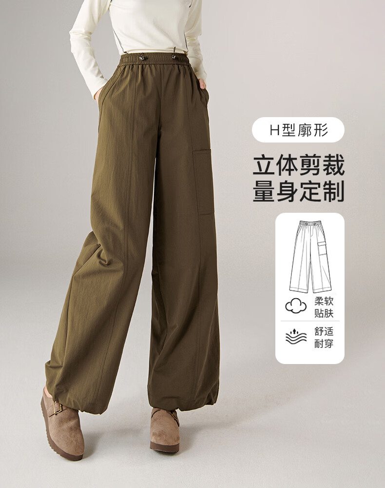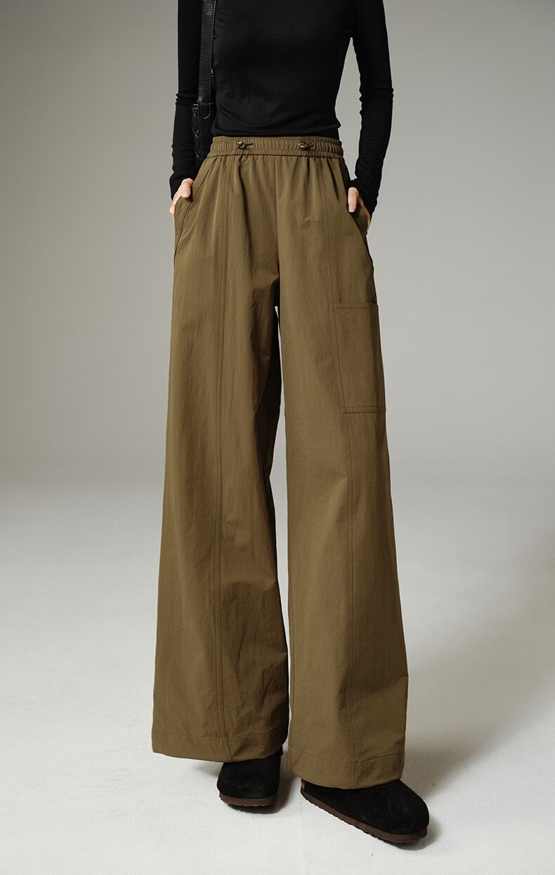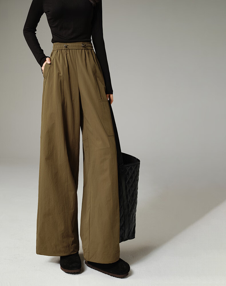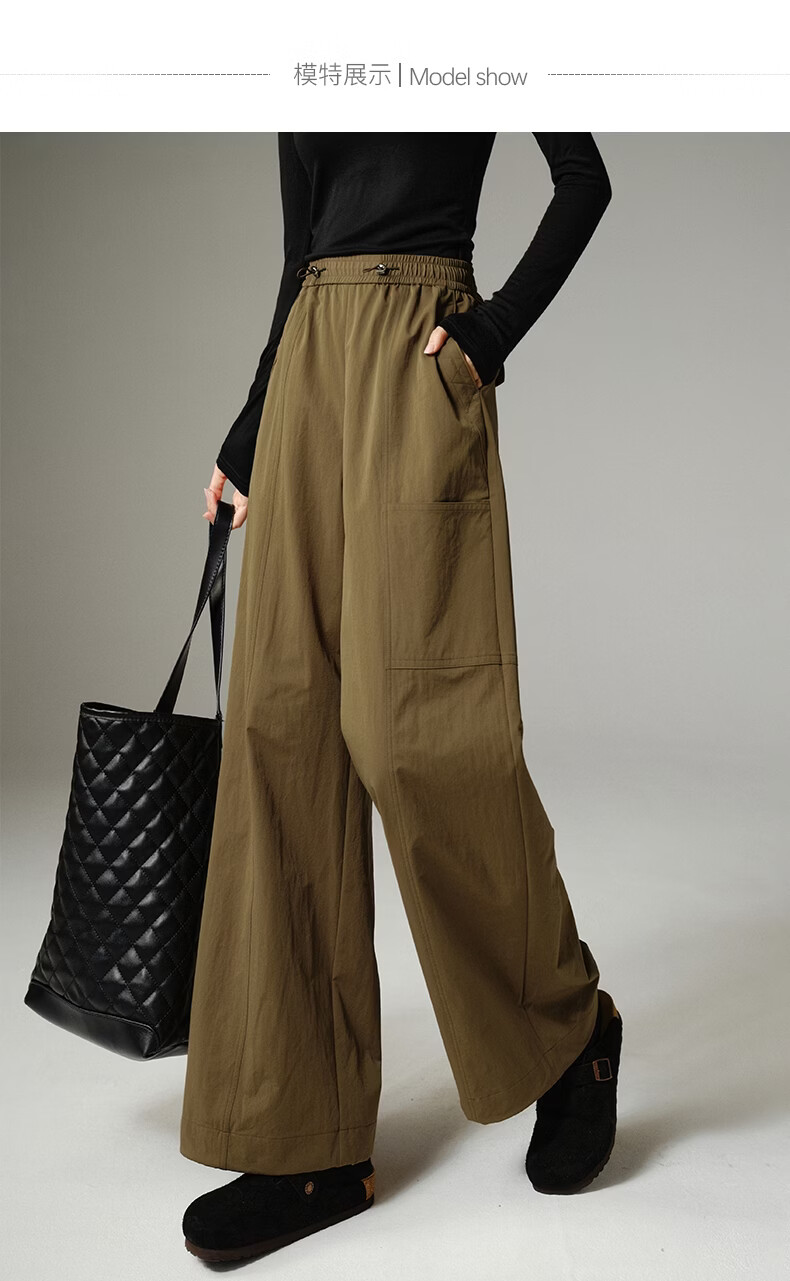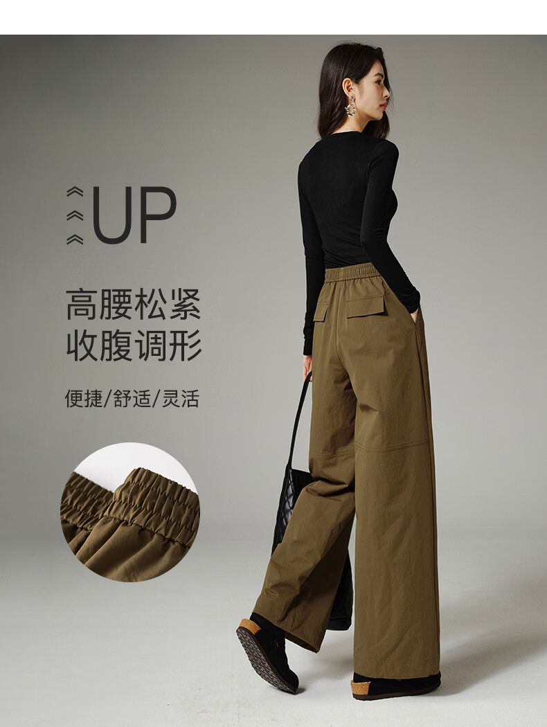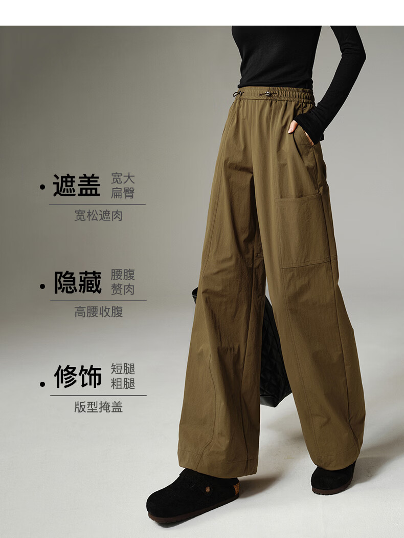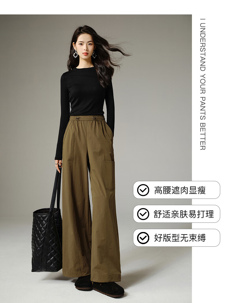 晚白【新品】2026年春款时尚休闲高腰工装裤遮胯显瘦舒适百搭阔腿裤女 深咖色 29